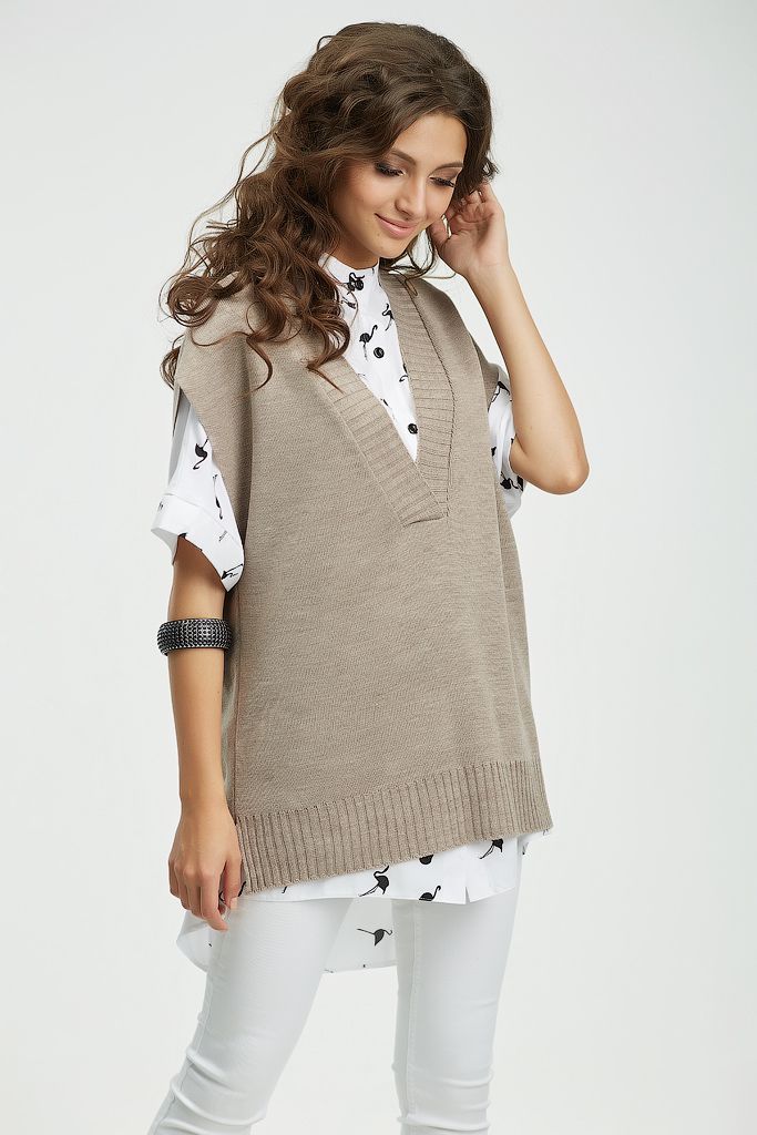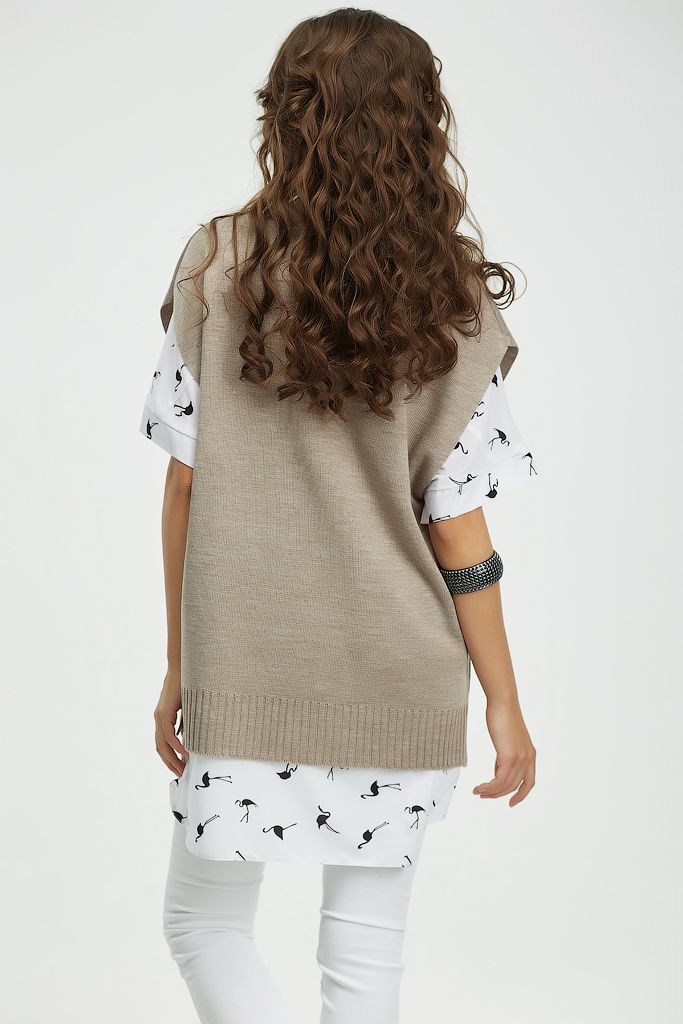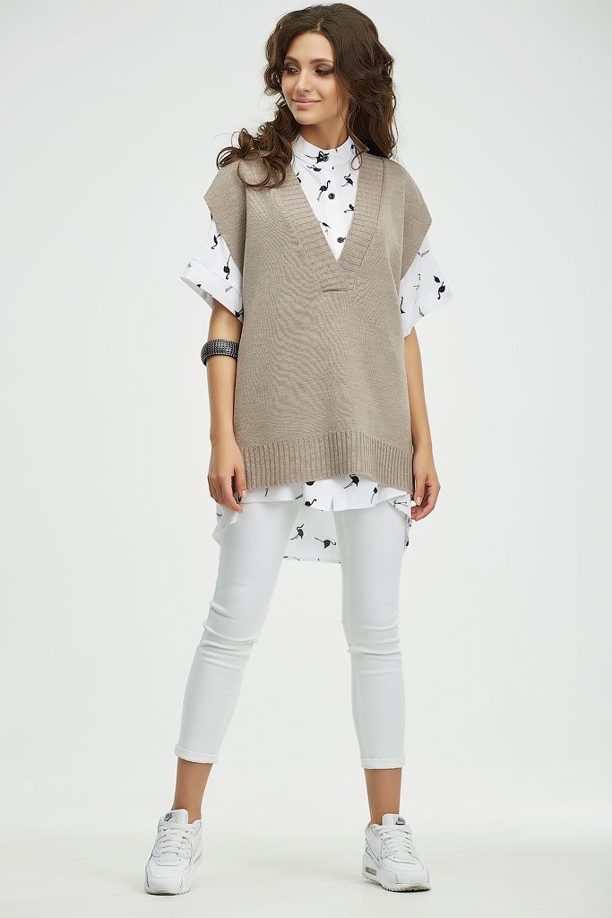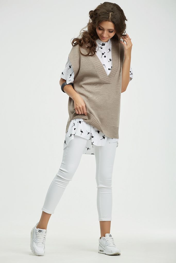 Особенности: По бокам выполнены разрезы, низ изделия и горловина оформлен резинкой в рубчик.
