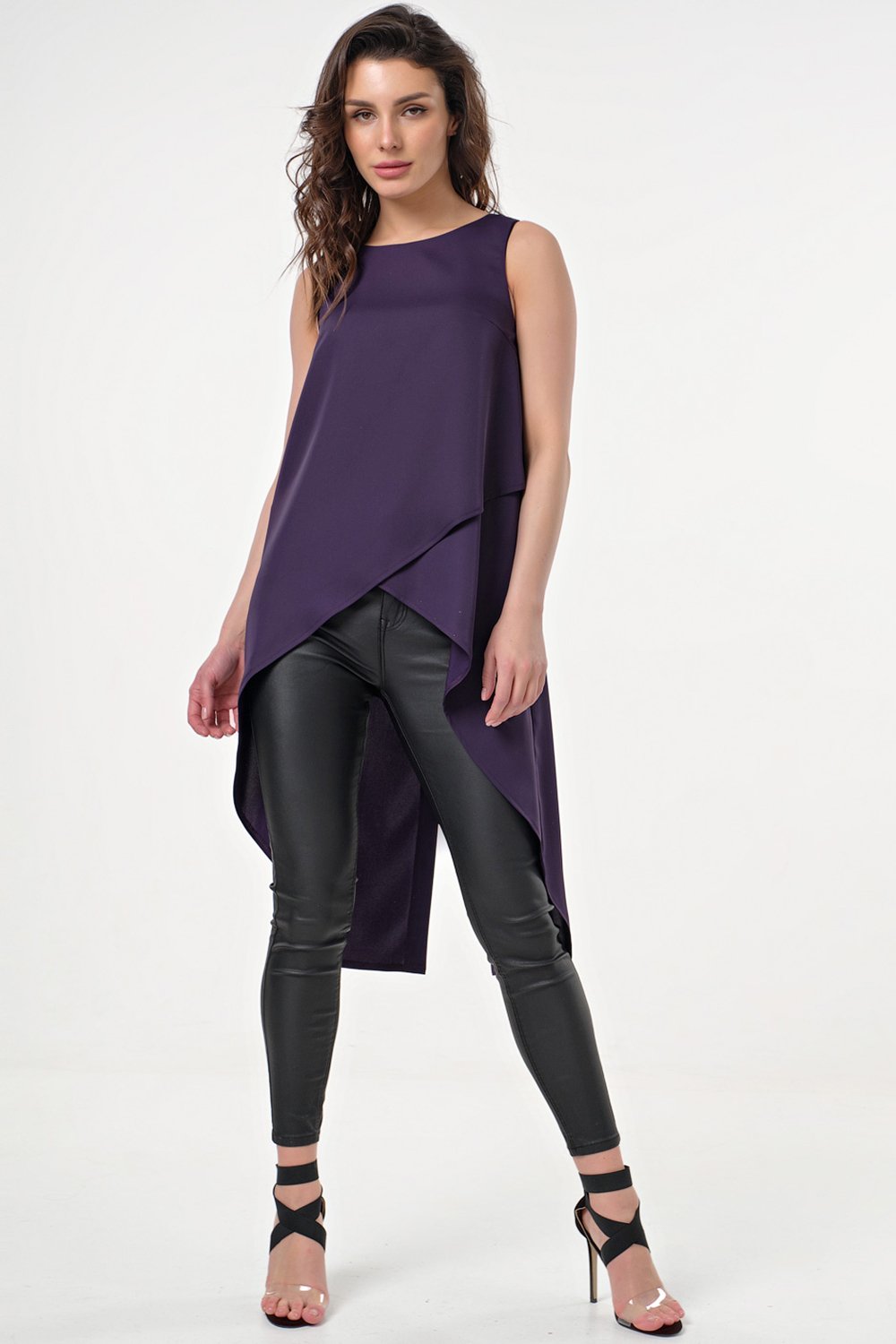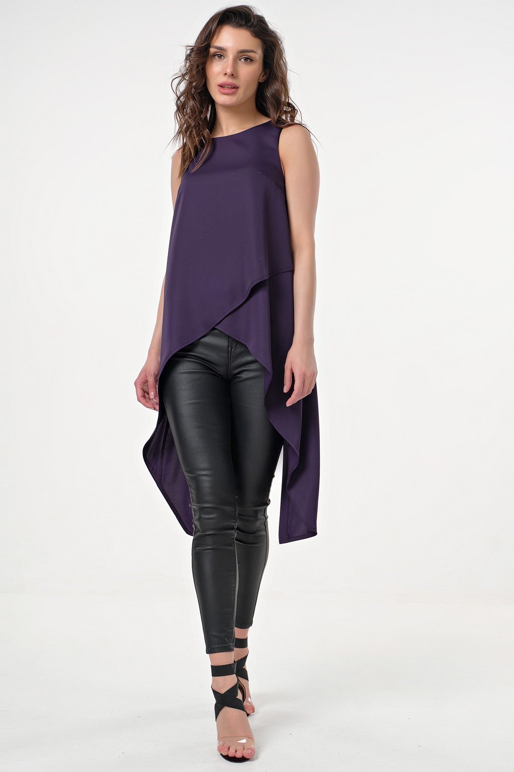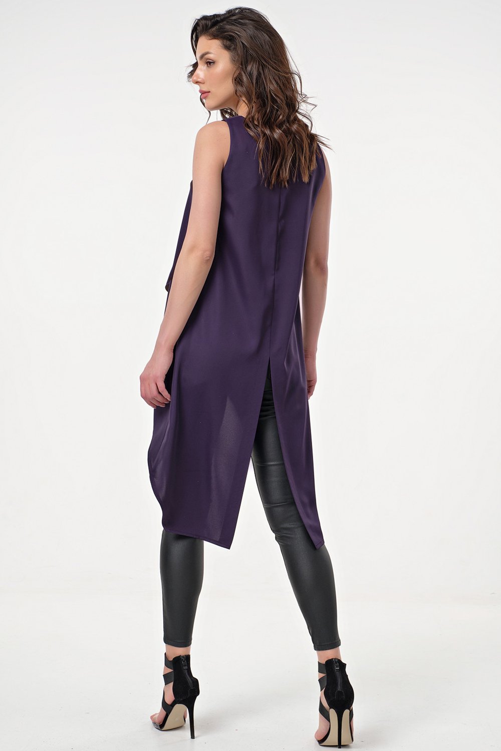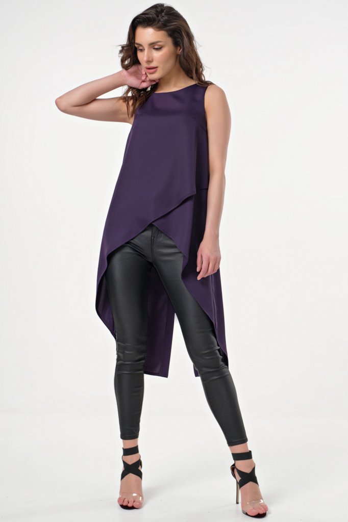 • Особенности: Топ из струящейся ткани асимметричного кроя. По переду выполнен запах. Спинка с удлинением и разрезом.