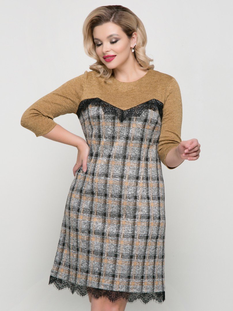 Платье прилегающего силуэта выполнено из комбинированного меланжевого трикотажного полотна.