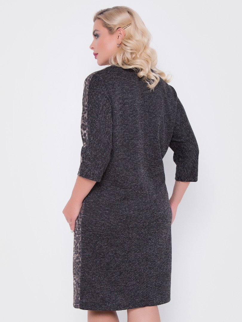 Платье прямого силуэта из меланжевого трикотажного полотна, с цельнокроеным рукавом.