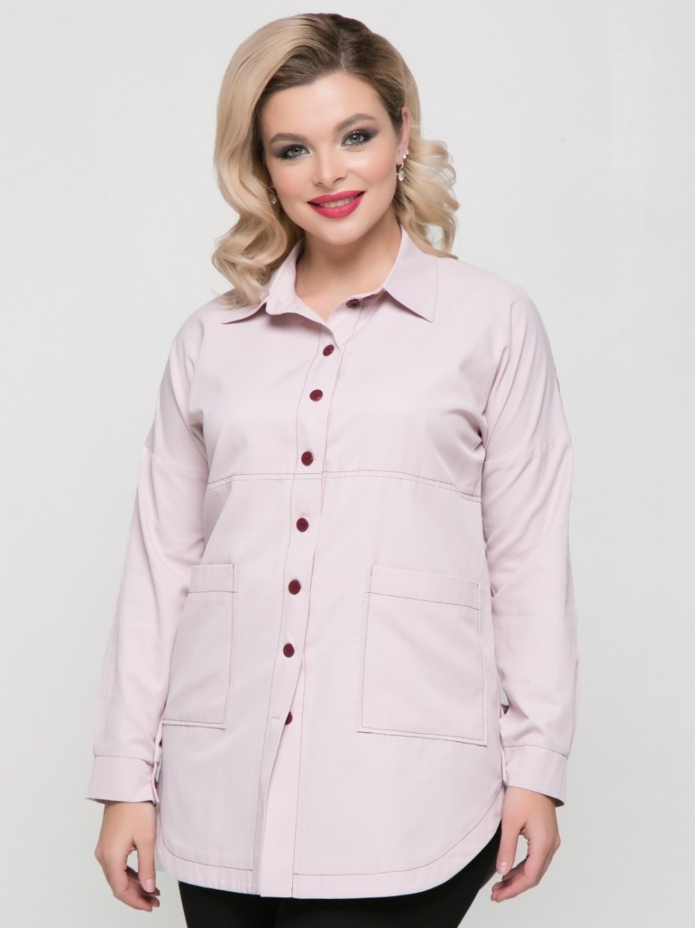 Стильная рубашка прямого силуэта из вискозного полотна с накладными карманами и контрастной отстрочкой.
