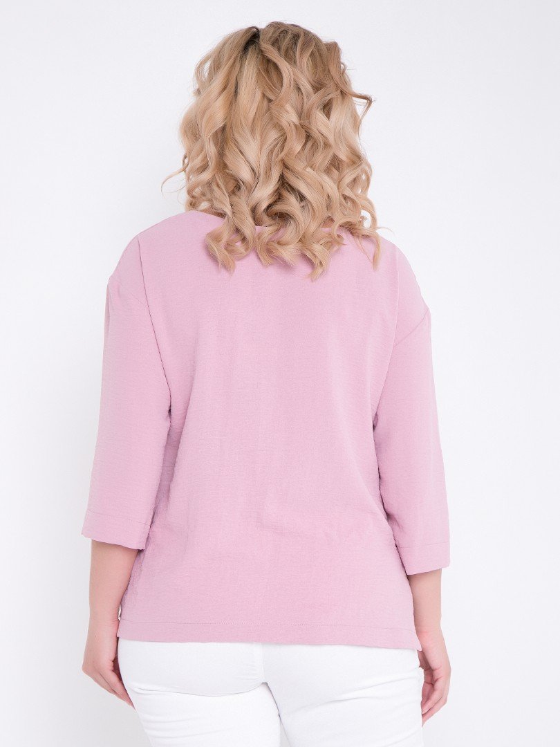 Стильная блузка нежной расцветки свободного силуэта из трикотажа с ассиметричным низом.