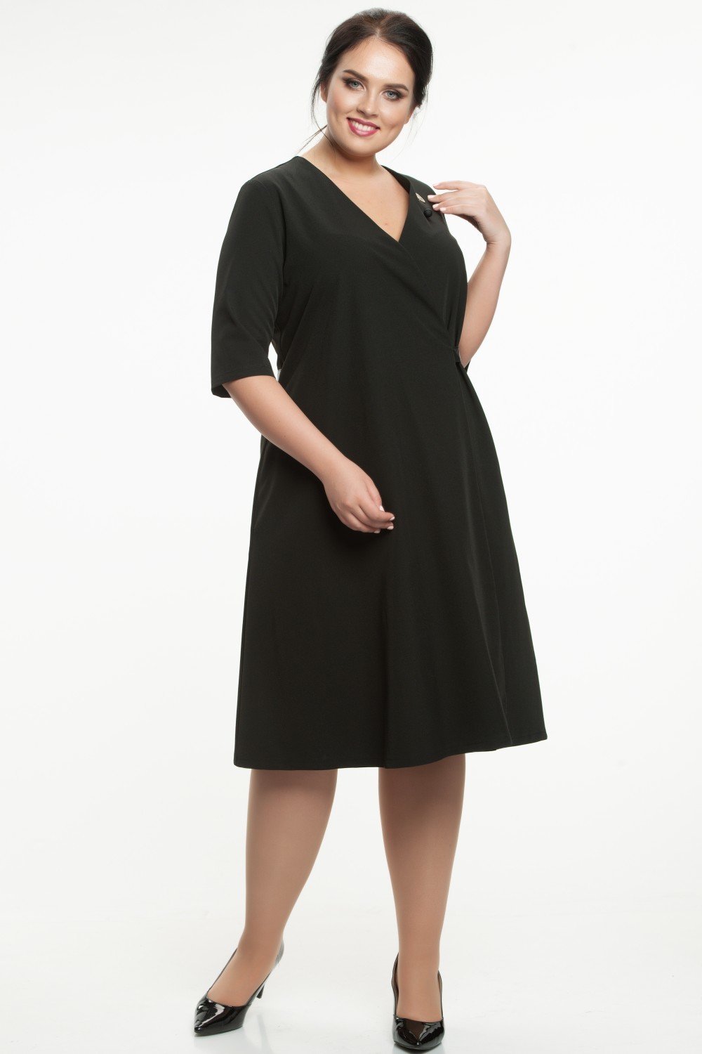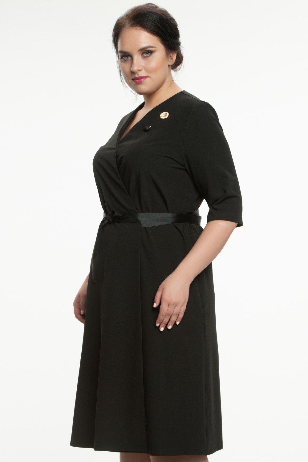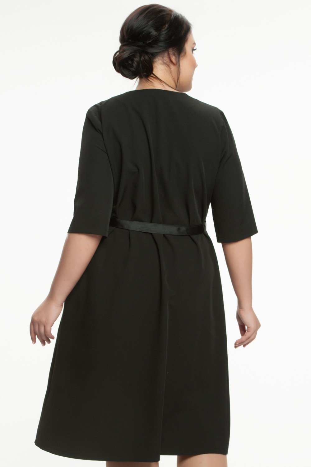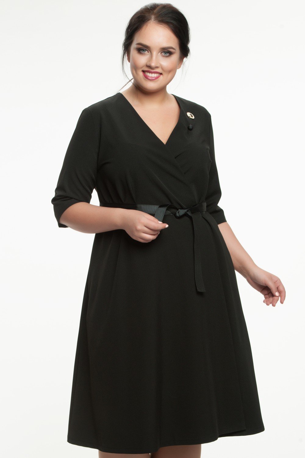 Эффектное платье черного цвета, с запахом из костюмной ткани . Пояс двусторонний костюмная ткань- репсовая лента, шириной 2,5 см. Платье выполнено из плательной ткани с большим содержанием лайкры.Характеристики: