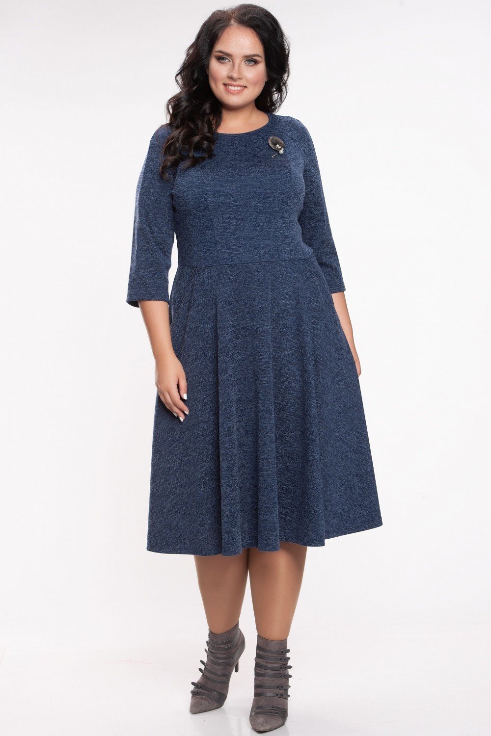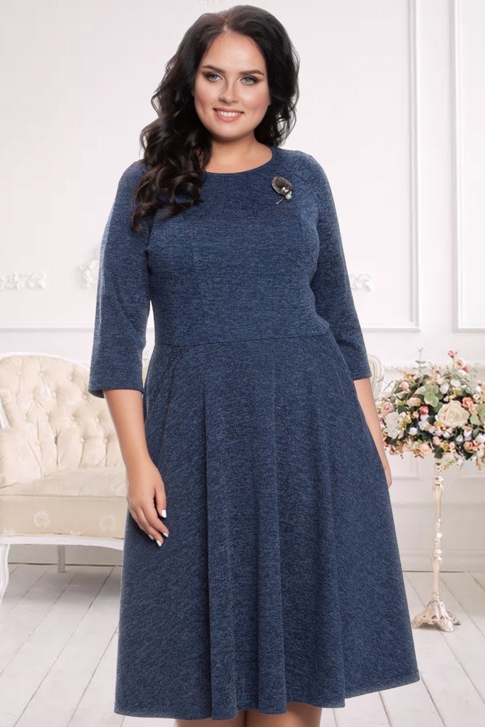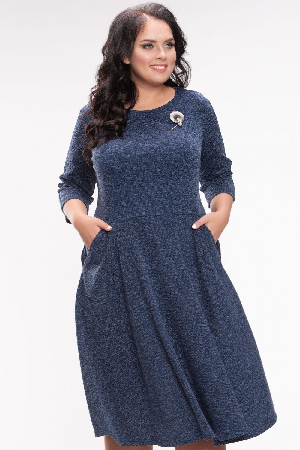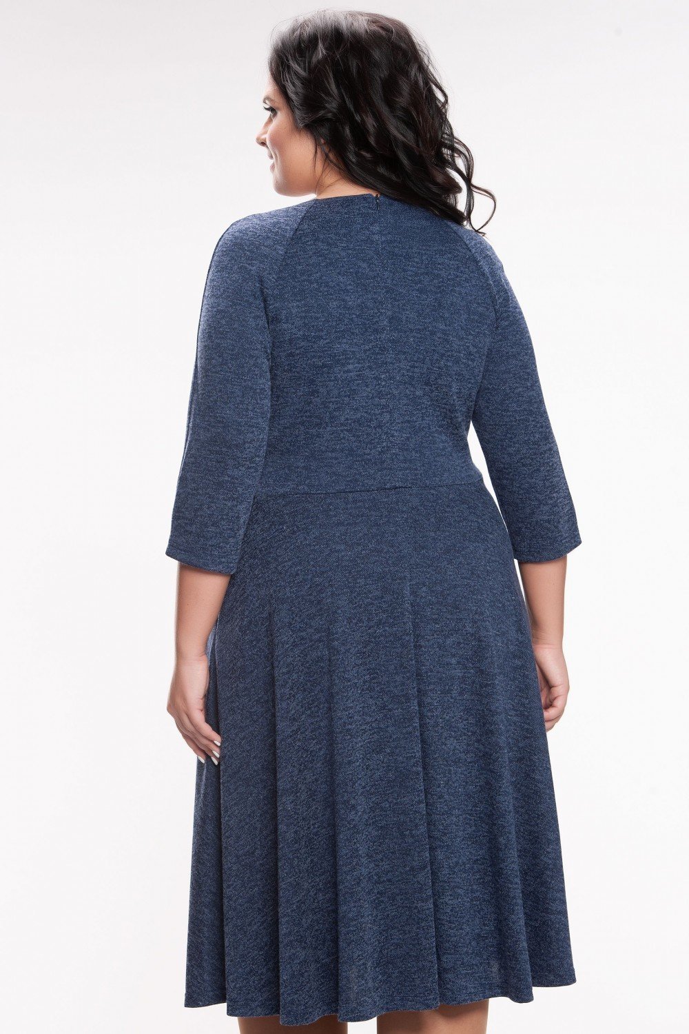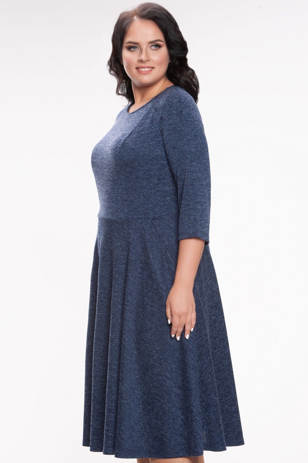 Платье полуприлегающего силуэта, отрезное по линии талии из трикотажного полотна, меланж, насыщенного синего цвета. Горловина круглая, рукав реглан 3/4, спинка с застежкой на короткую потайную молнию. Нижняя часть переда и спинки полусолнце, с боковыми карманами.Характеристики: