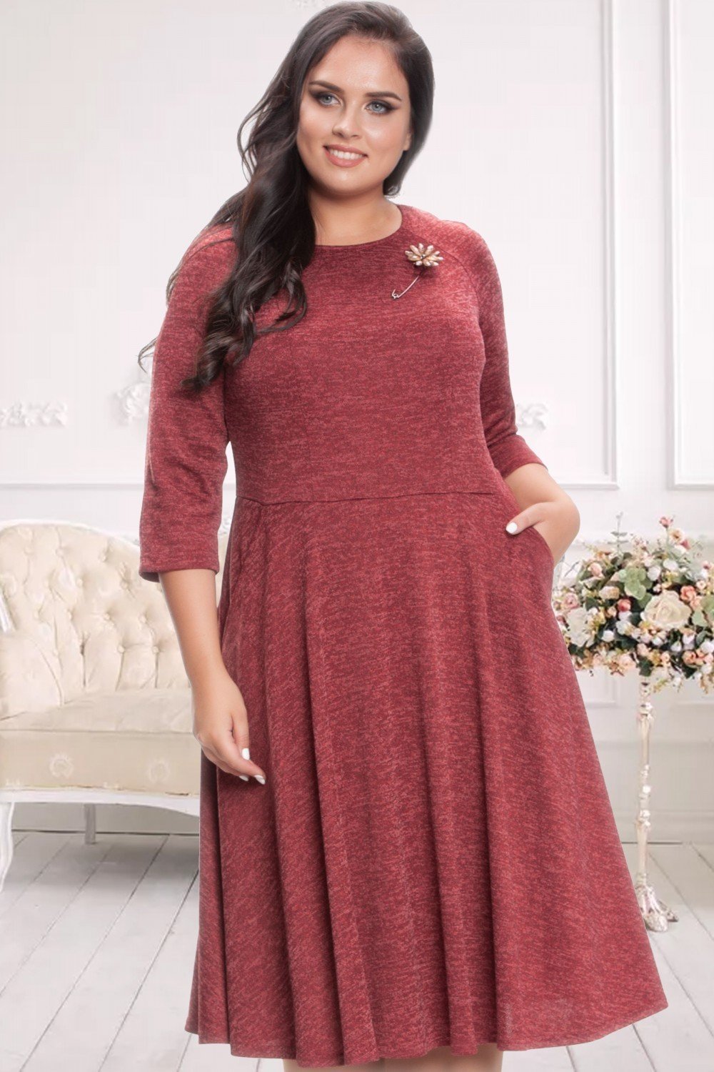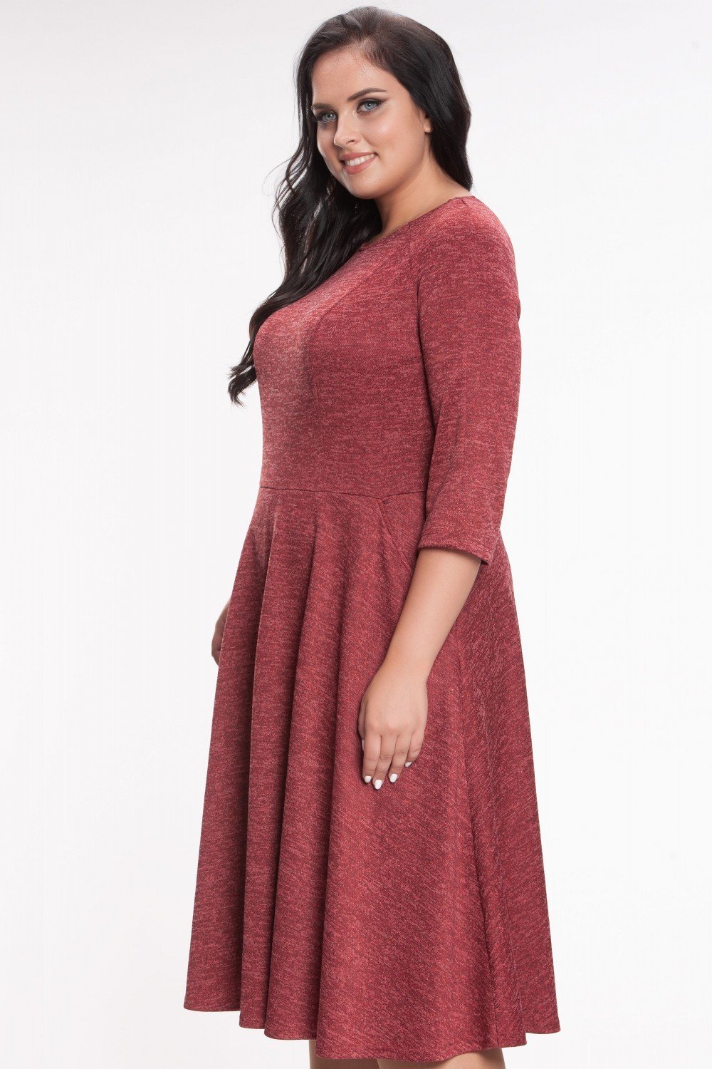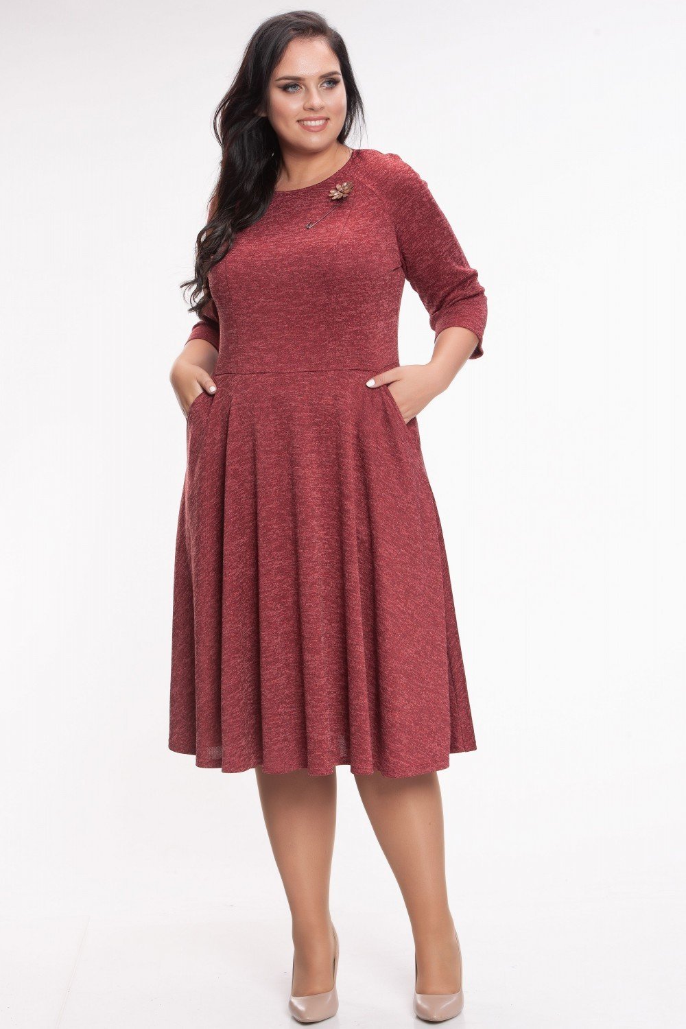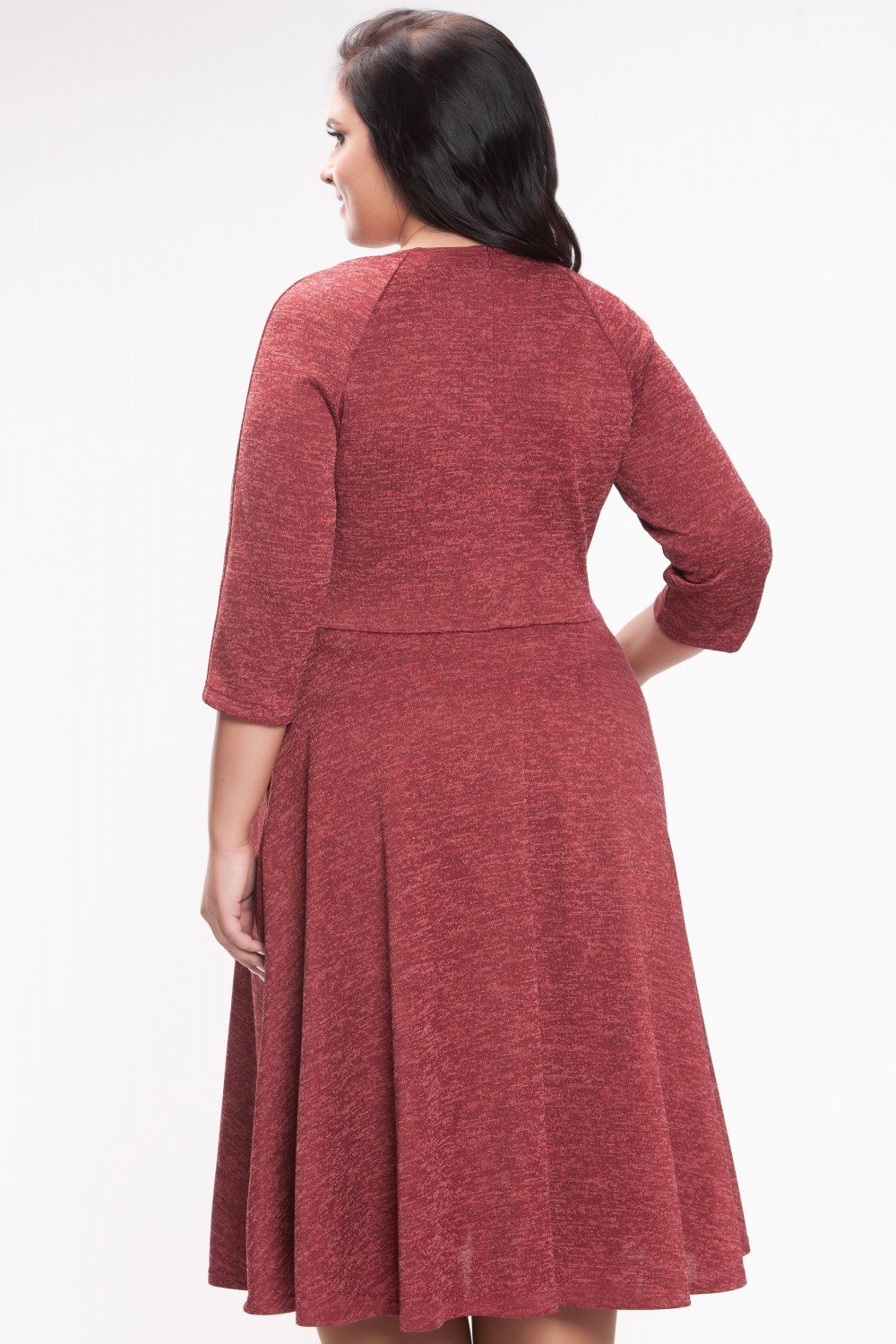 Платье полуприлегающего силуэта, отрезное по линии талии из трикотажного полотна, меланж, цвет бордо. Горловина круглая, рукав реглан 3/4, спинка с застежкой на короткую потайную молнию. Нижняя часть переда и спинки полусолнце, с боковыми карманами.Характеристики: