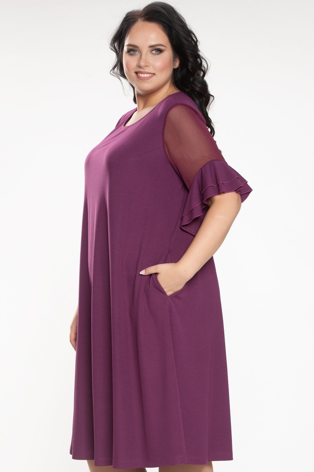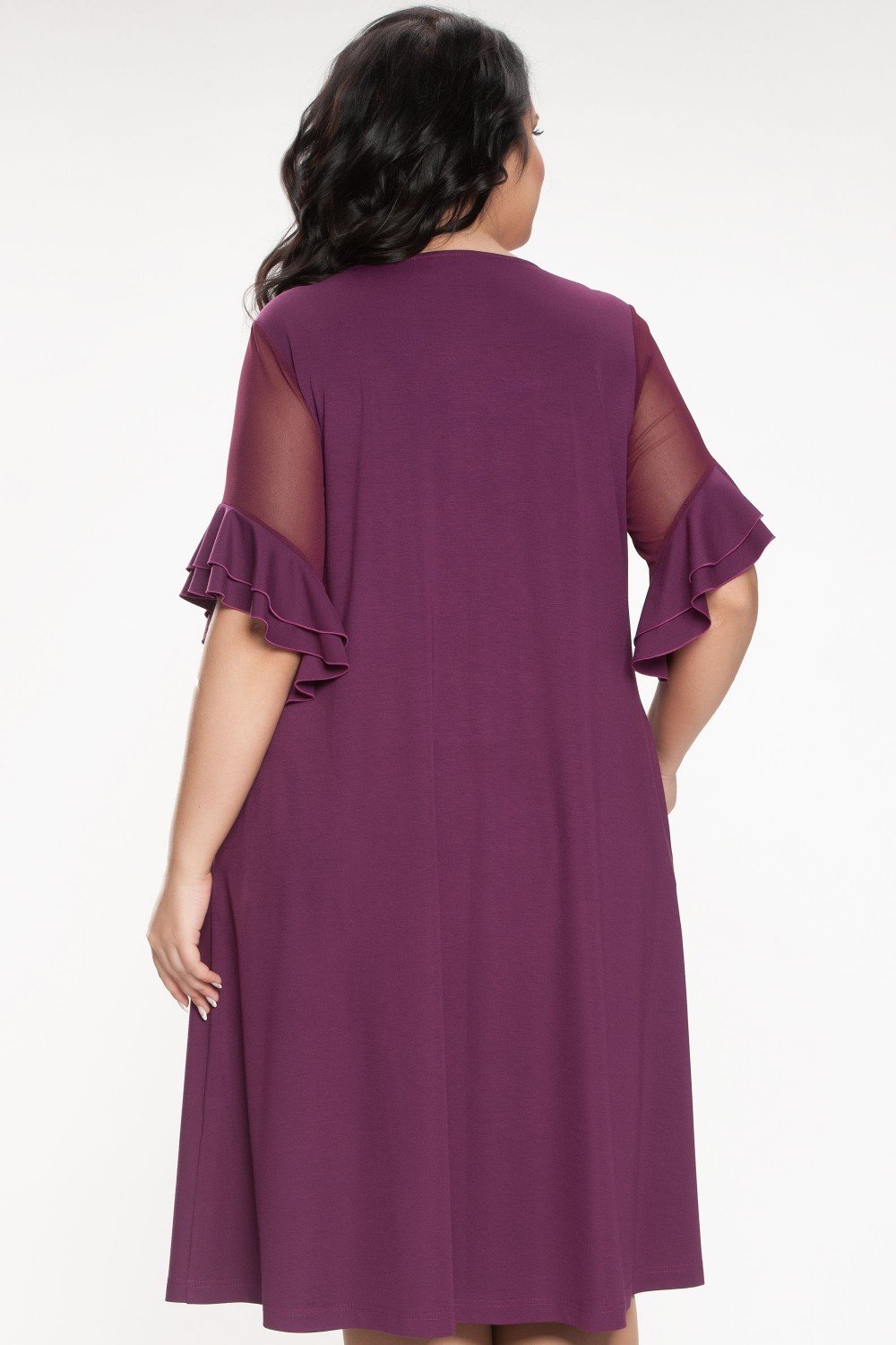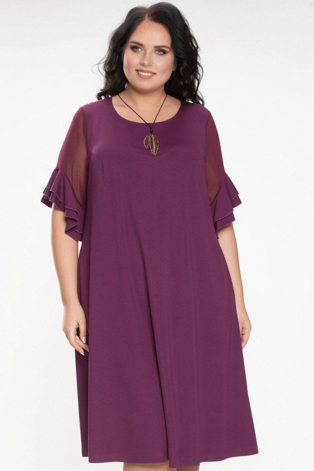 Платье трапециевидного силуэта. Горловина круглая. Рукав втачной, до локтя, по низу с двумя воланами. Платье из вискозного полотна.Характеристики: