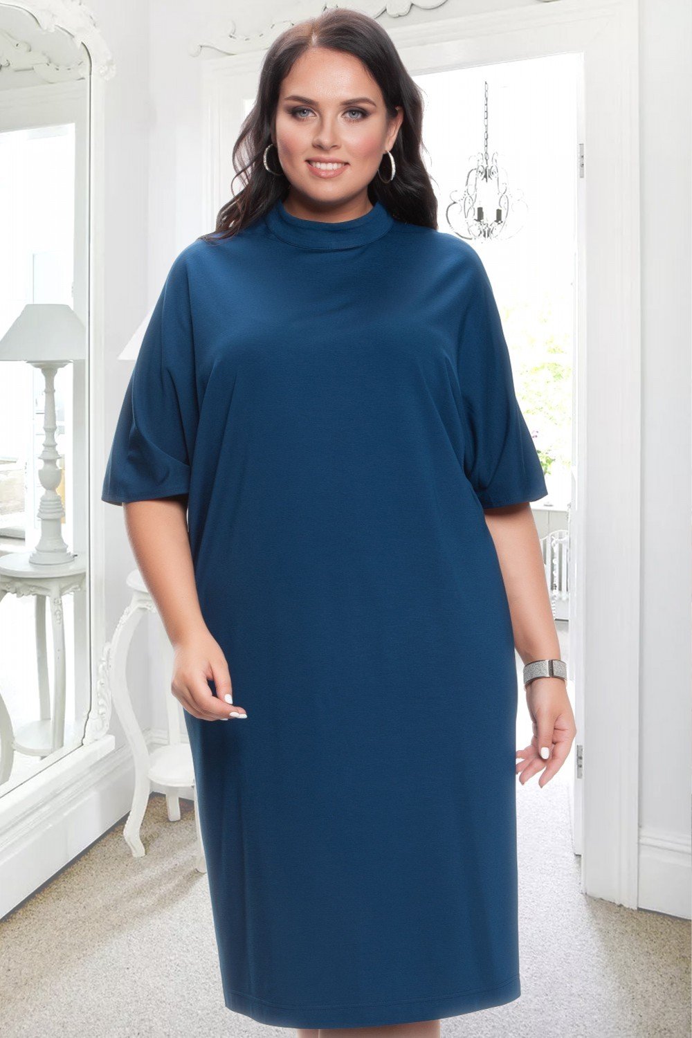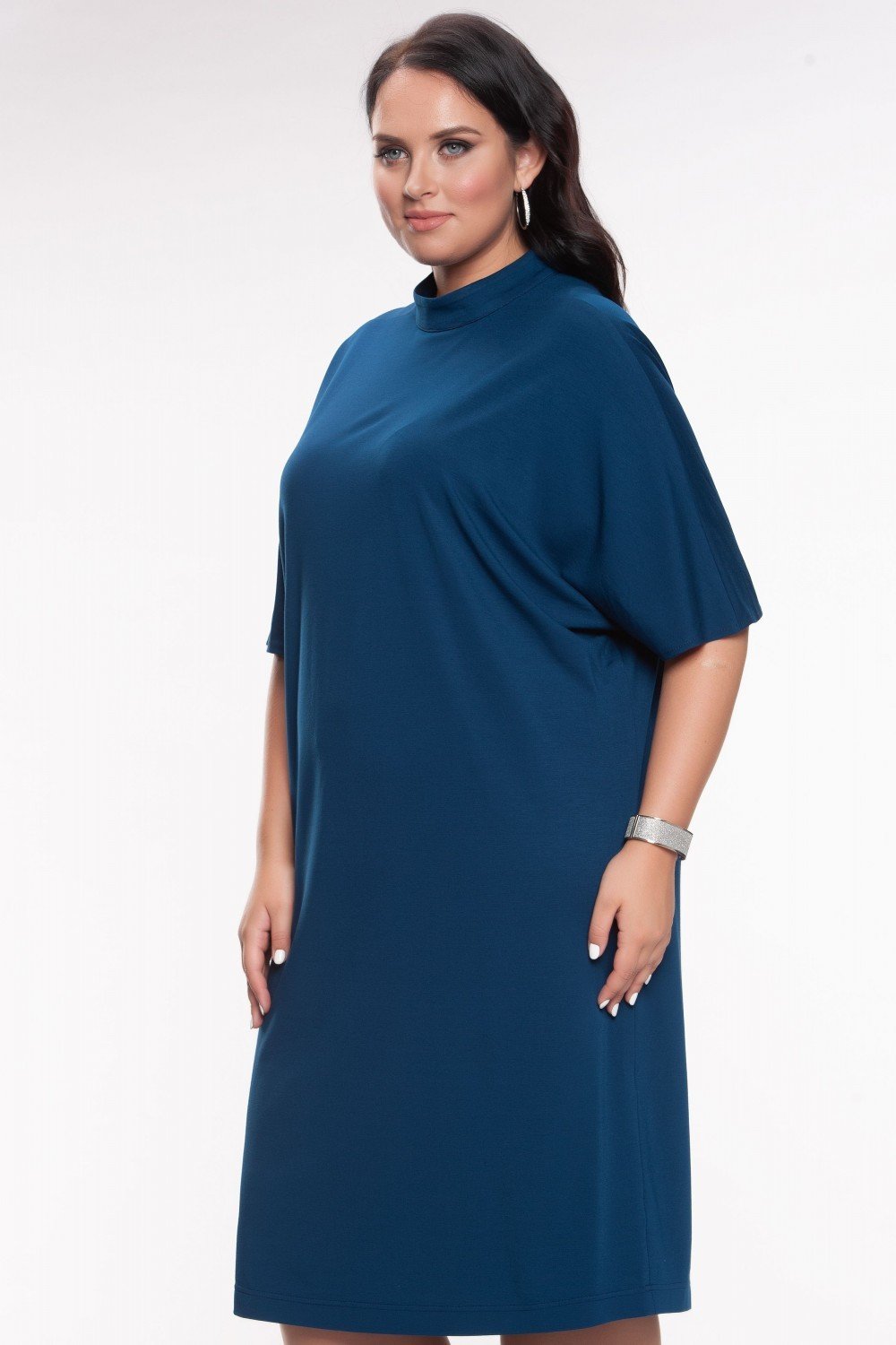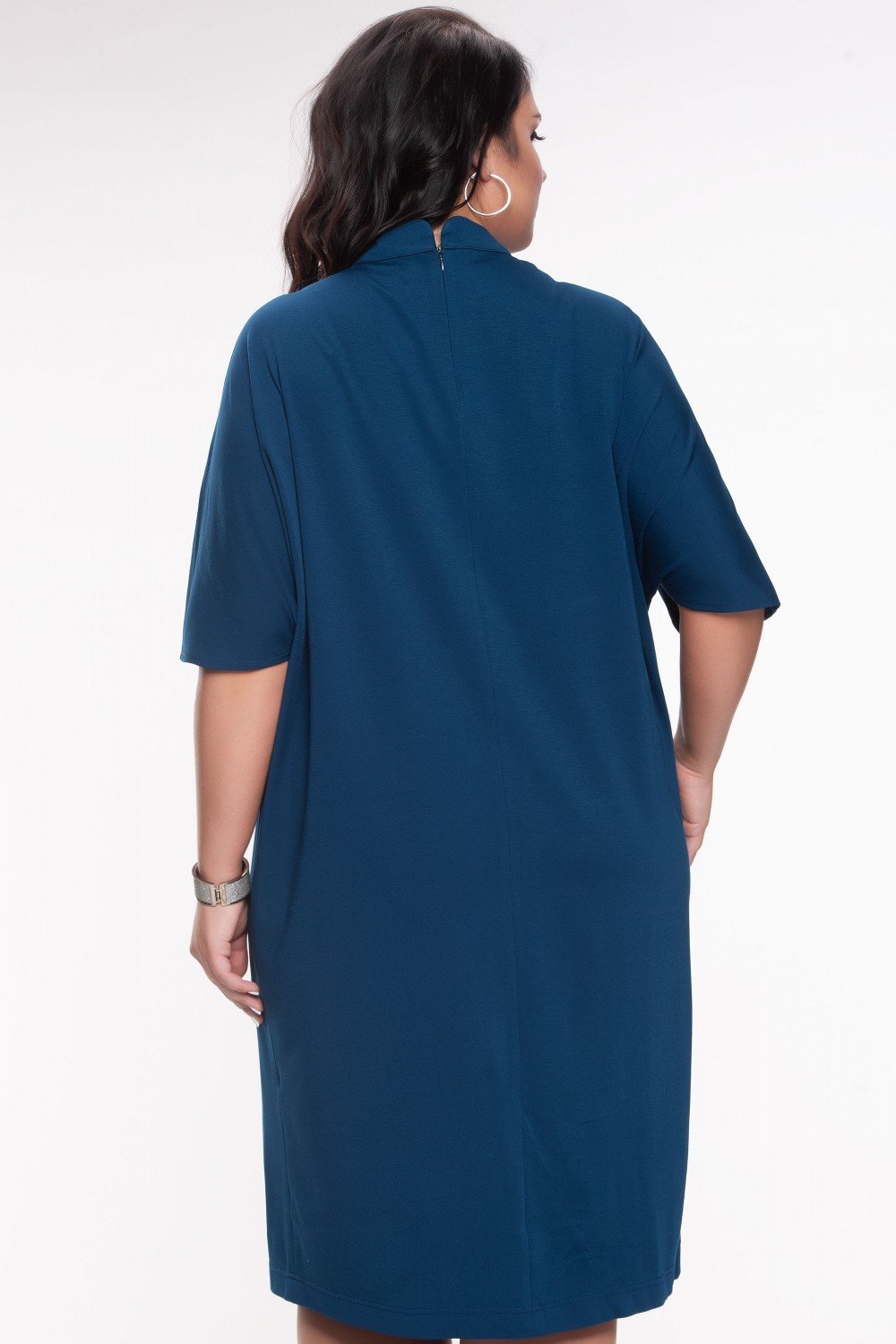 Платье прямого силуэта с цельнокроенным рукавом "крылышко" до локтя. Спинка с застежкой на короткую тесьму молнию в среднем шве. Воротник стойка с закругленными концами.Характеристики:
