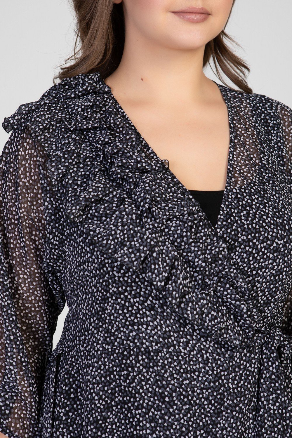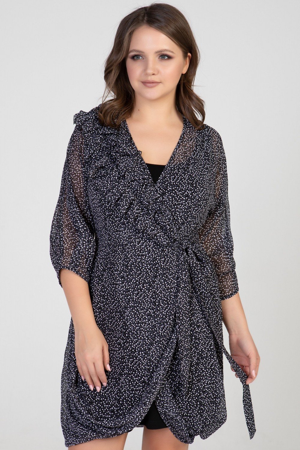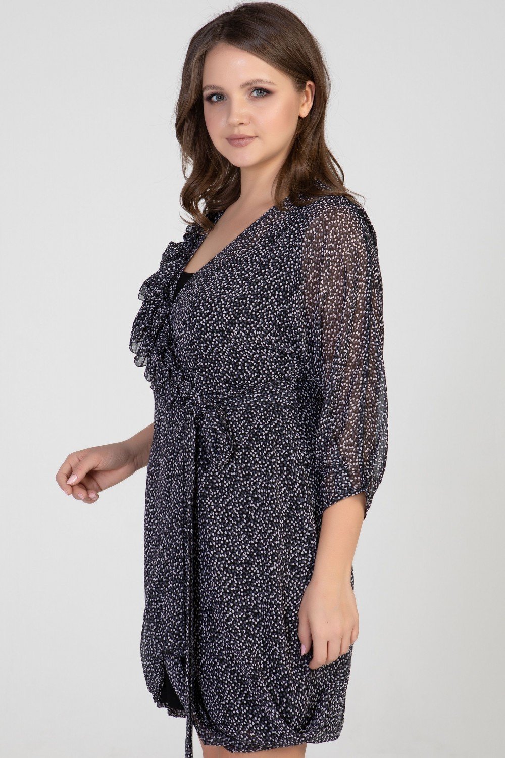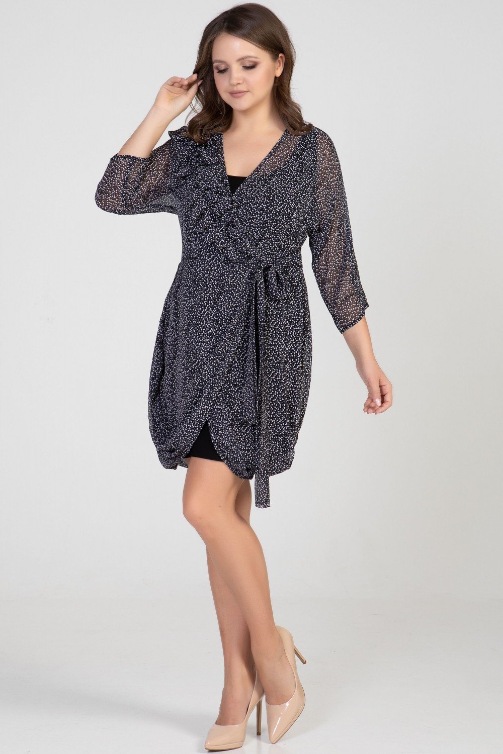 Комплект женский состоит из двух платьев: верхнее выполнено из шифона, нижнее из вискозы и используется в качестве подкладки. Платье верхнее прямого силуэта, отрезное по линии талии, с запахом, с завязывающимися полупоясами. Рукав цельнокроеный, 3/4. По горловине переда с правой стороны выполнен декор в виде заложенных складок из основной ткани. Размеры у комплекта сдвоенные. Без замочков, карманов. Стирка 30, не отбеливать, гладить до 150 гр., Запрет: химчистка, электро сушка.Характеристики: