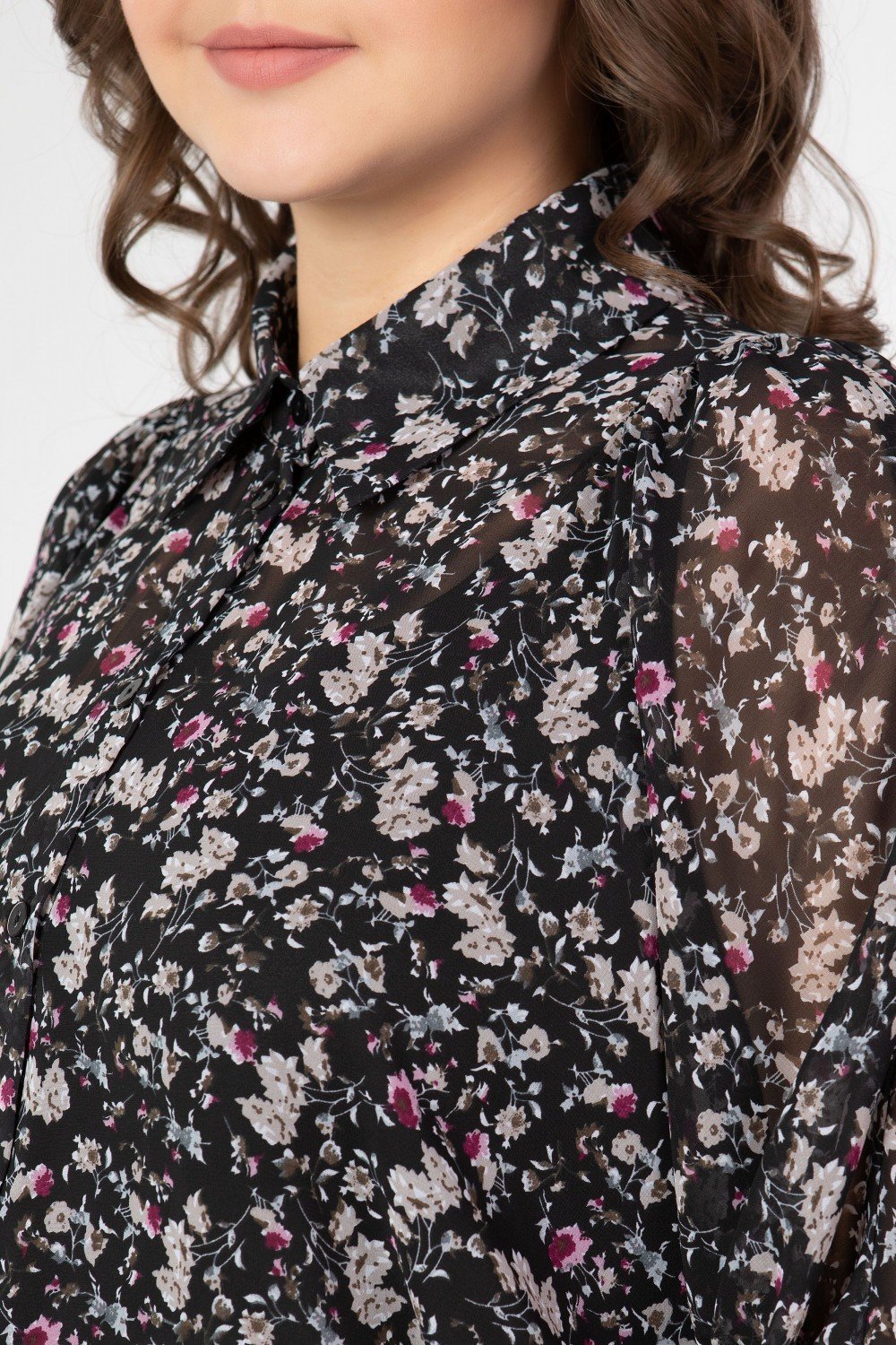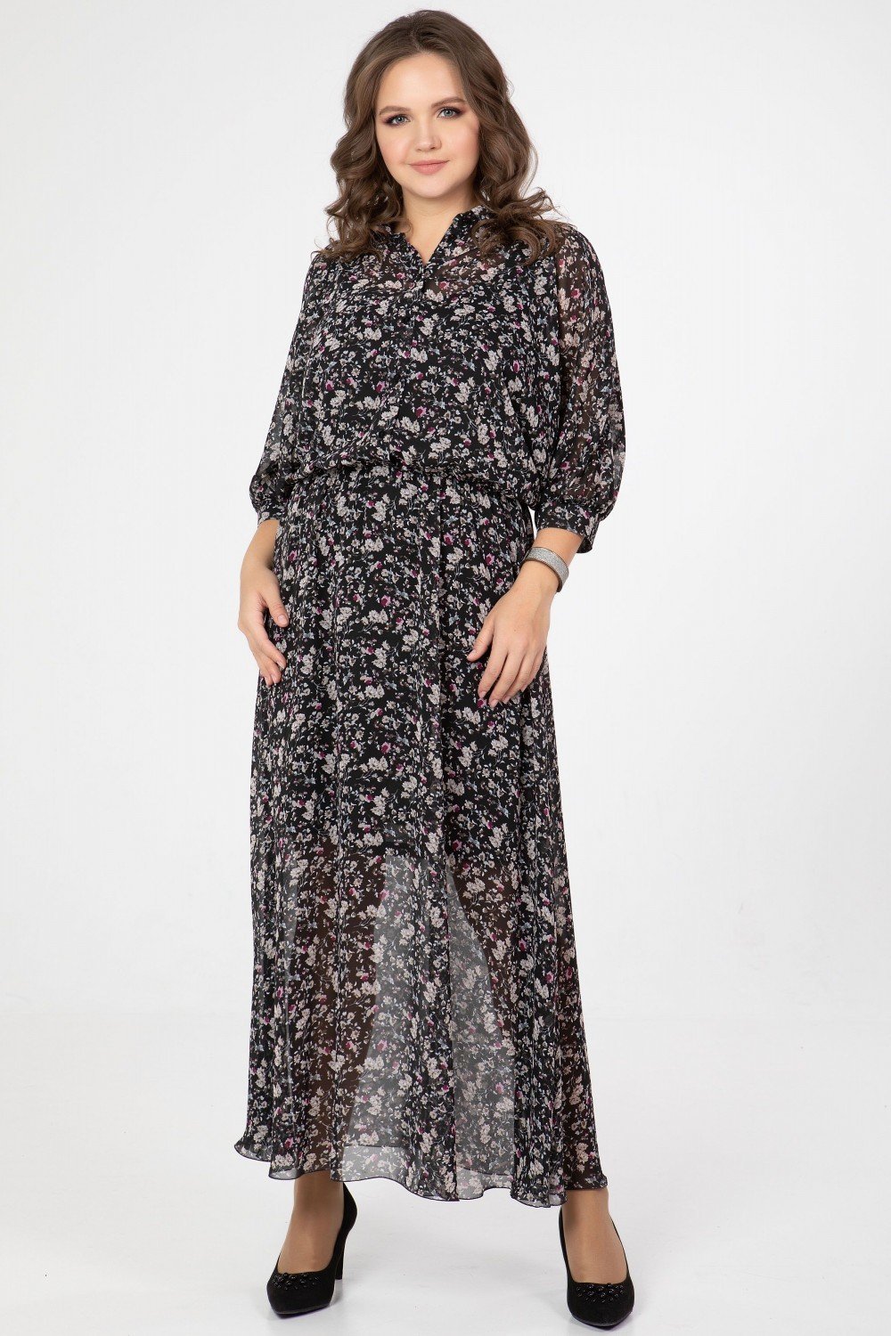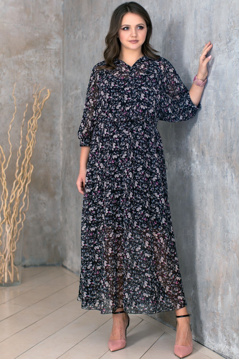 Платье полуприлегающего силуэта, отрезное по линии талии, с цельнокроеным рукавом из мягкого шифона. Верхняя часть переда с центральной застежкой на петли и пуговицы. Нижняя часть переда и спинки - полусолнце. По низу рукава сборка и притачная манжета. Воротник с острыми концами на стойке, застегивающейся на петлю и пуговицу. По шву талии - эластичная тесьма. К платью прилагается футляр на тонких бретелях ( состав сырья 65% Полиэстер, 30% Вискоза, 5% Лайкра ).Характеристики: