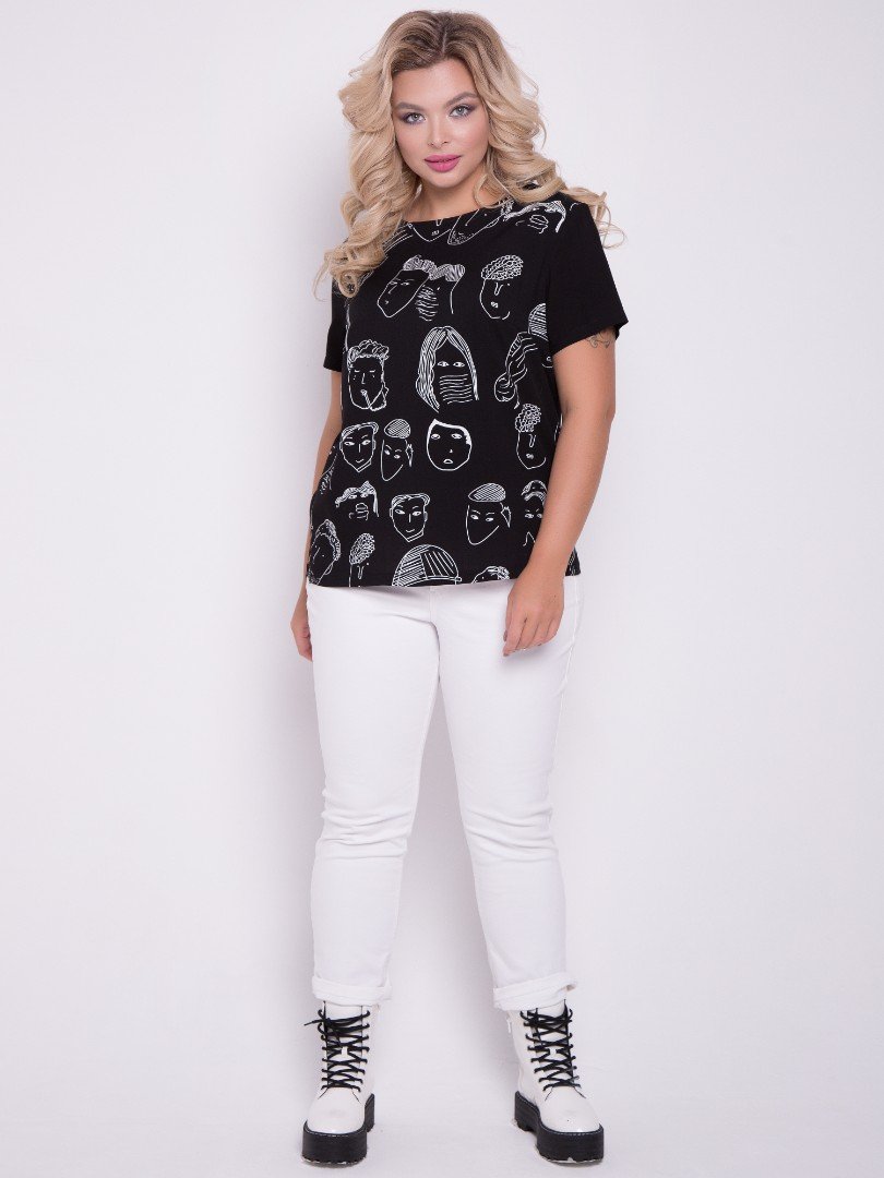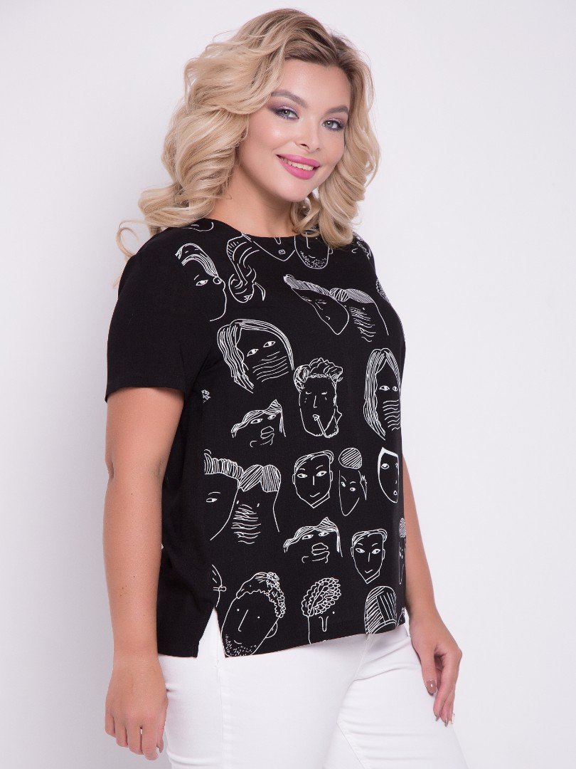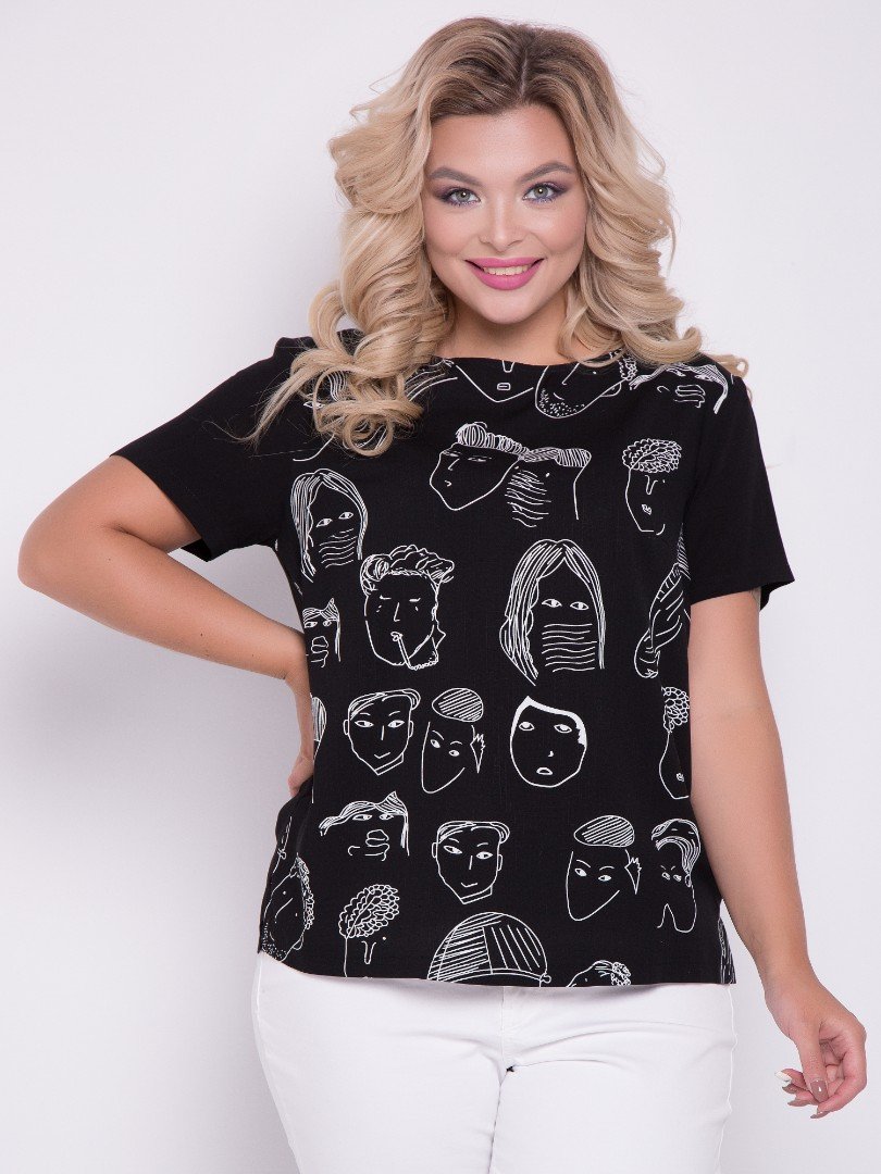 Блузка полуприлегающего силуэта из комбинированной вискозы с короткими рукавами.