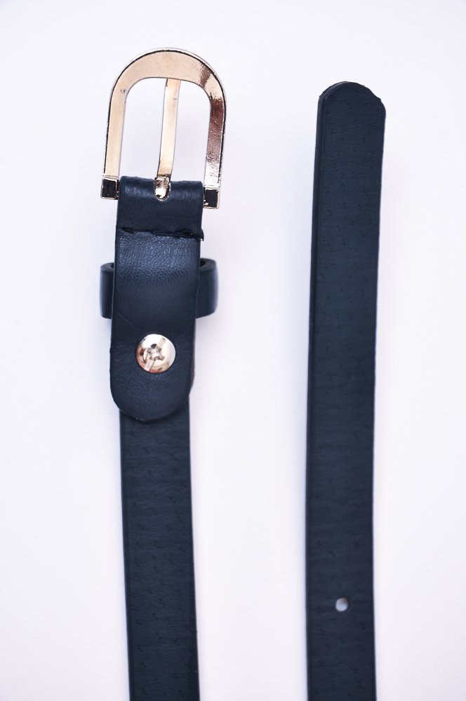 Ремень синего цвета с золотистой пряжкой из экокожиХарактеристики: