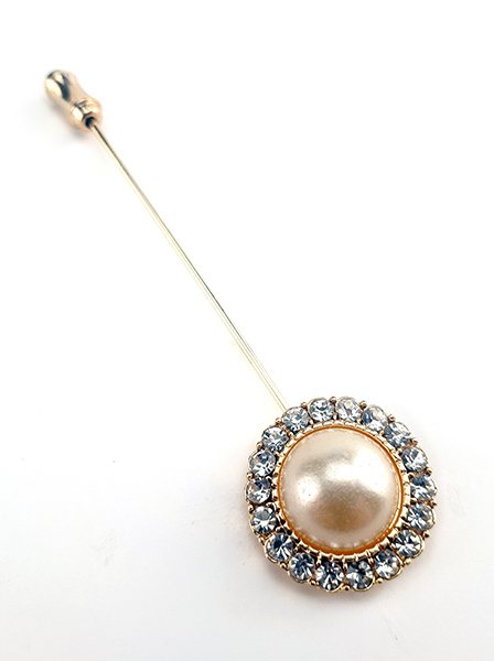 Яркая Брошь из золотистого  металла  и искусственного белого жемчуга.