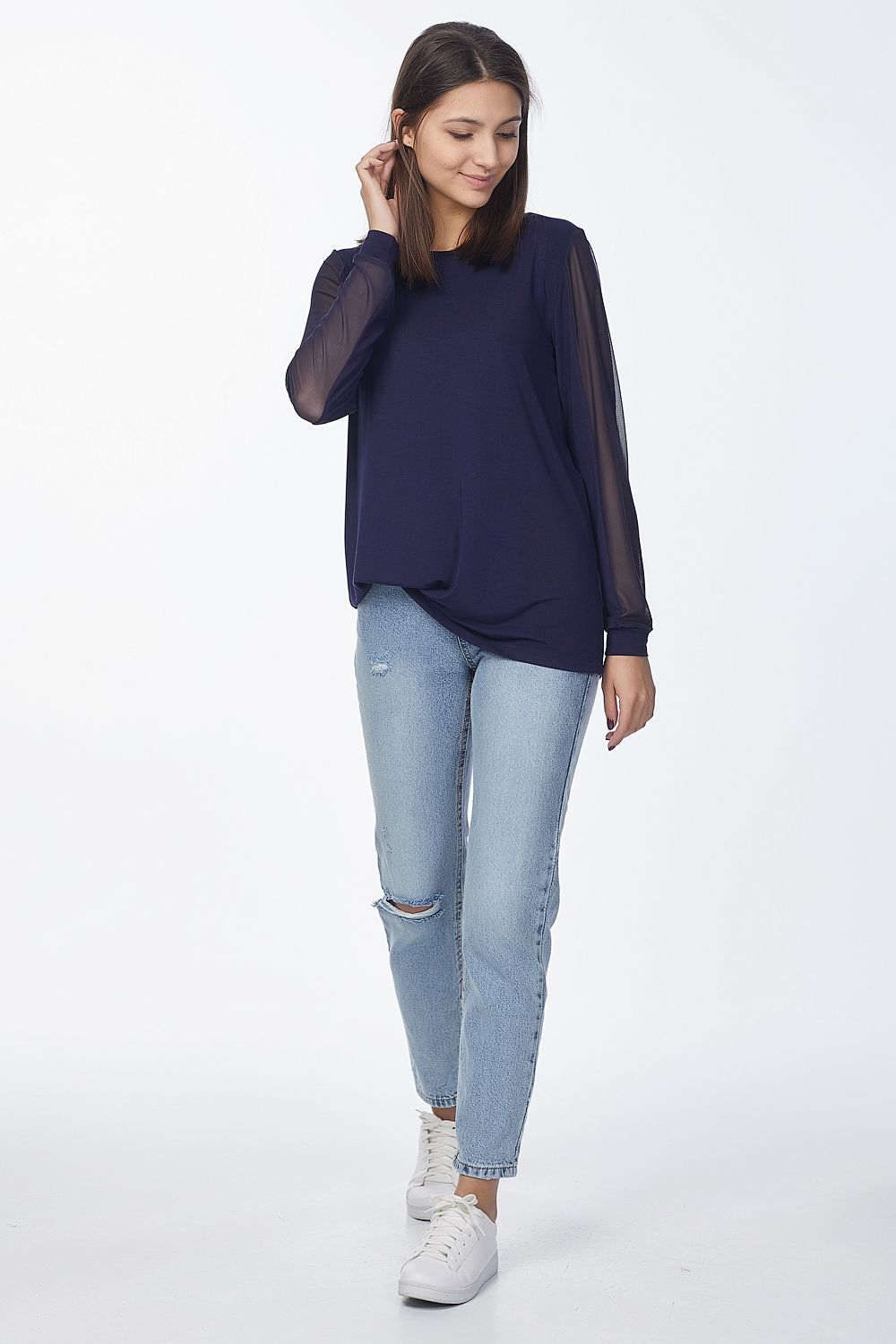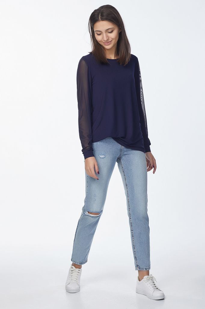 • Особенности: Туника прямого силуэта из тонкого трикотажа. Детали: удлиненная спинка рукав длинный на манжете вставка из сетки по всей длине рукава горловина окантована. Без застежки.