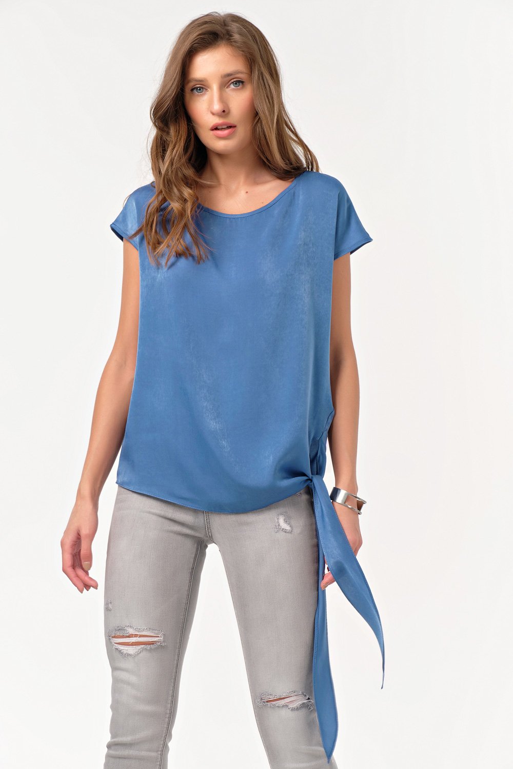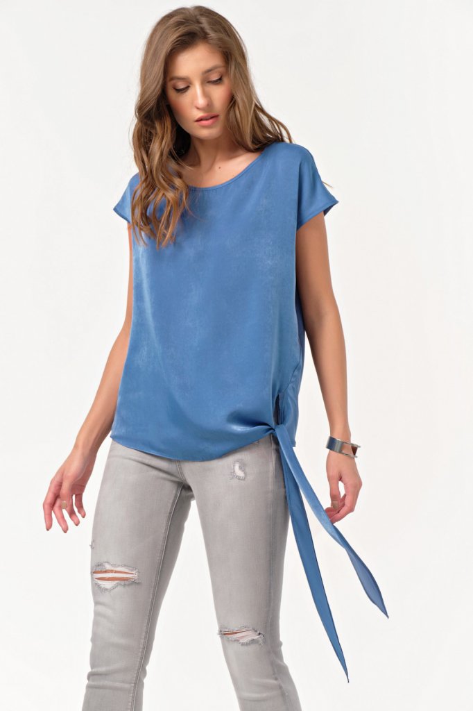 • Особенности: Блуза свободного не прилегающего силуэта. Детали: горловина округлой формы цельновыкроенный рукав декоративная завязка по низу изделия.