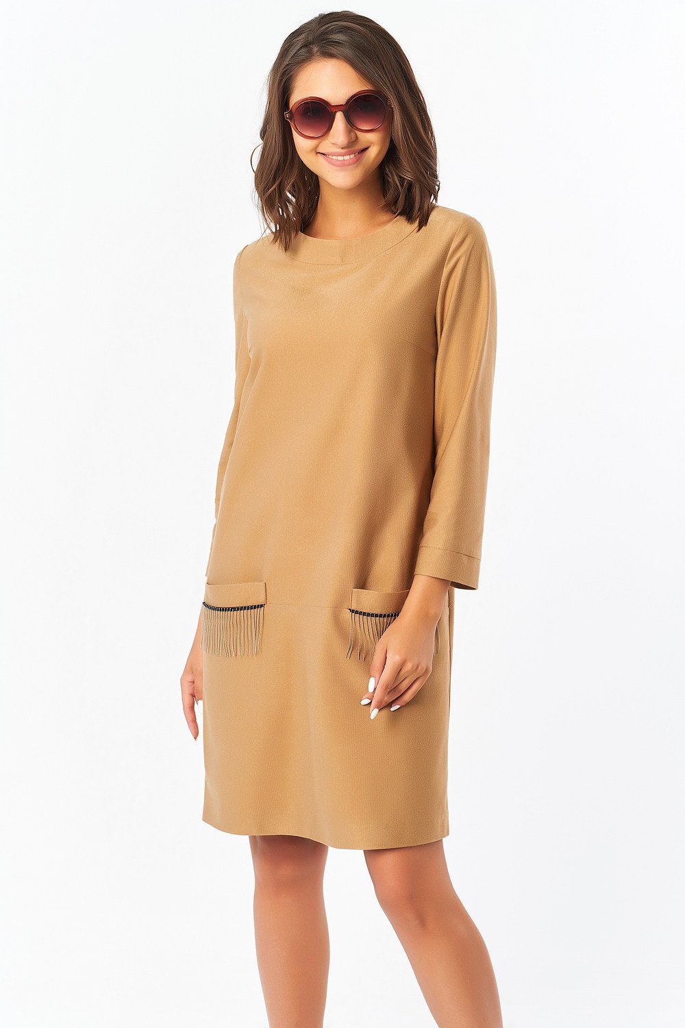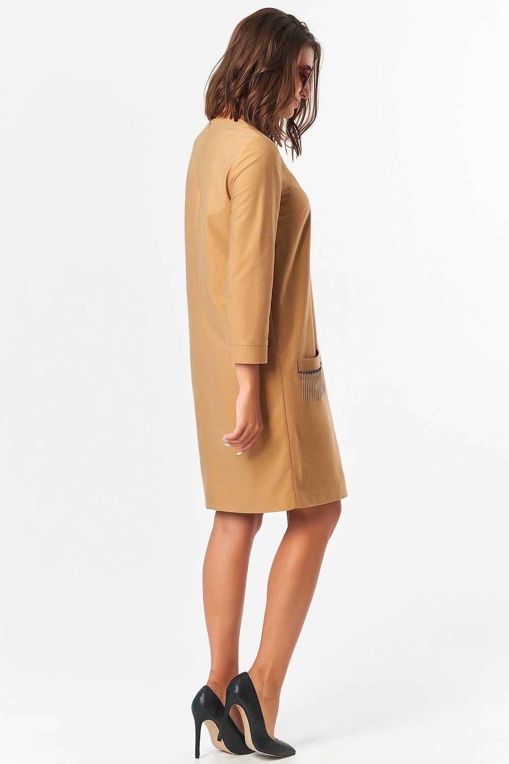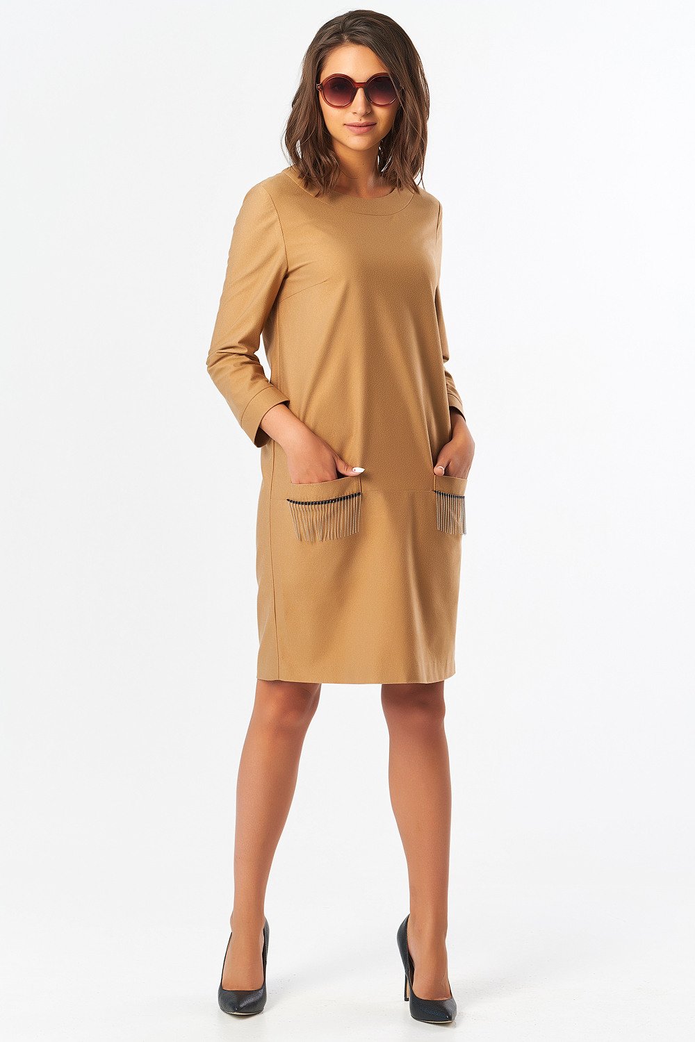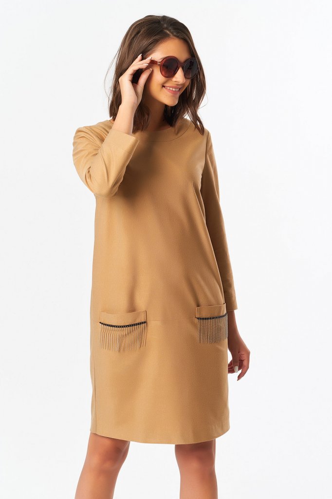 • Особенности: Платье прямого силуэта из костюмной ткани (вельвет в тонкий рубчик). Детали: горловина округлой формы втачной рукав прорезные карманы с отделкой металлической бахромой.