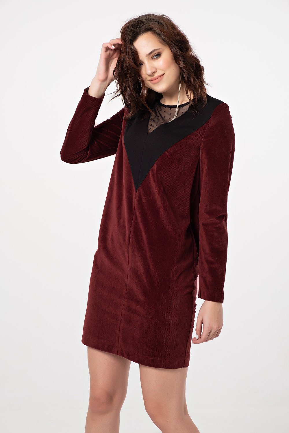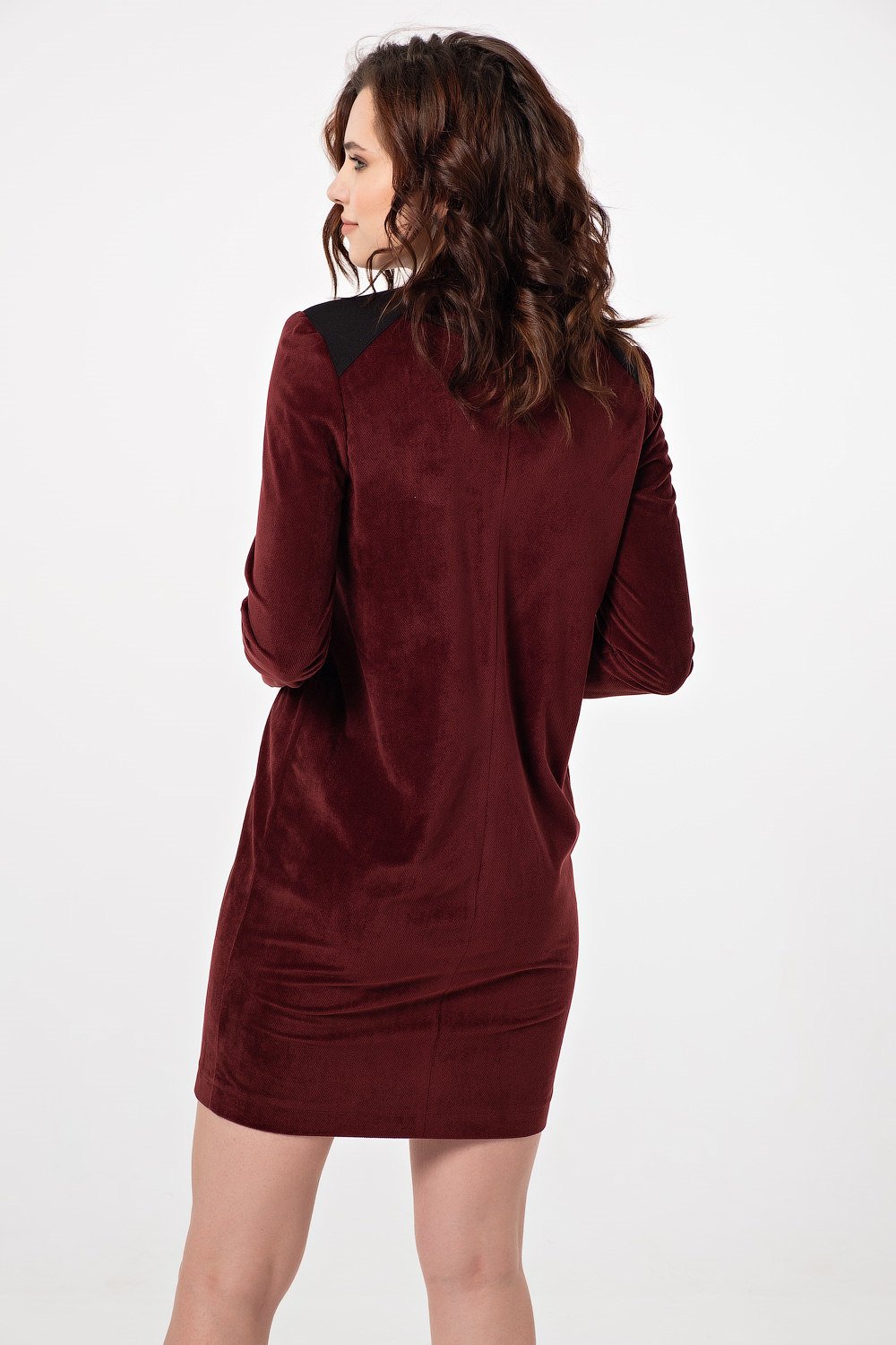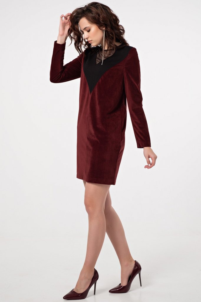 • Особенности: Платье прямого силуэта с втачным рукавом. Детали: горловина округлой формы с декоративными притачными элементами переходящими на спинку длинный рукав.