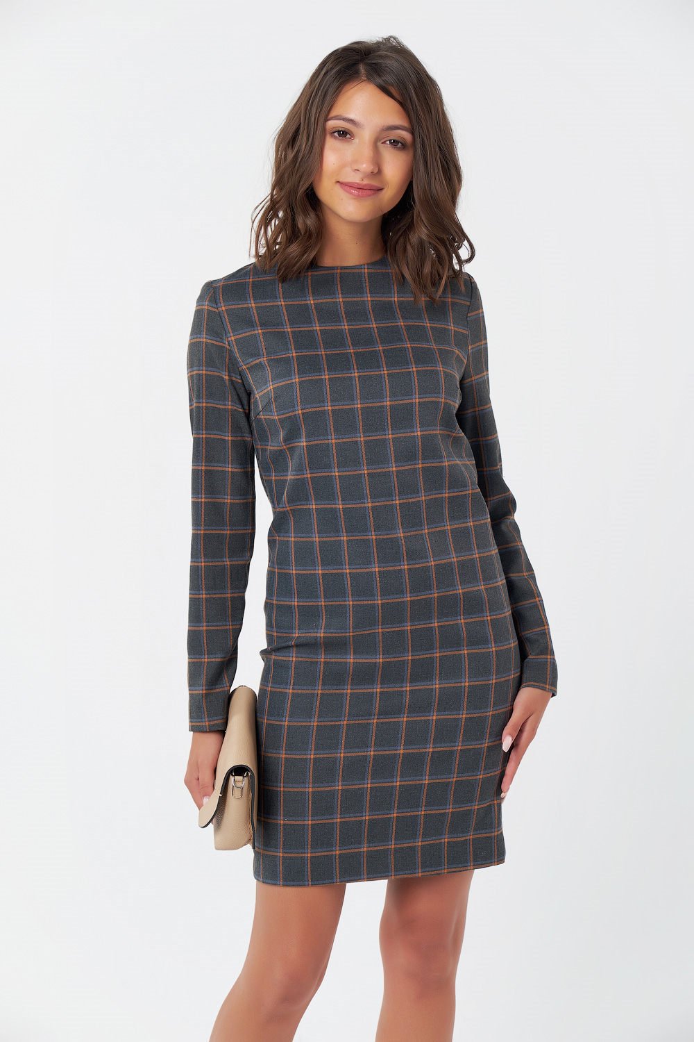• Особенности: Платье прямого силуэта из костюмной ткани. Детали: горловина обработана обтачкой втачной рукав застежка на молнию в среднем шве спинки.