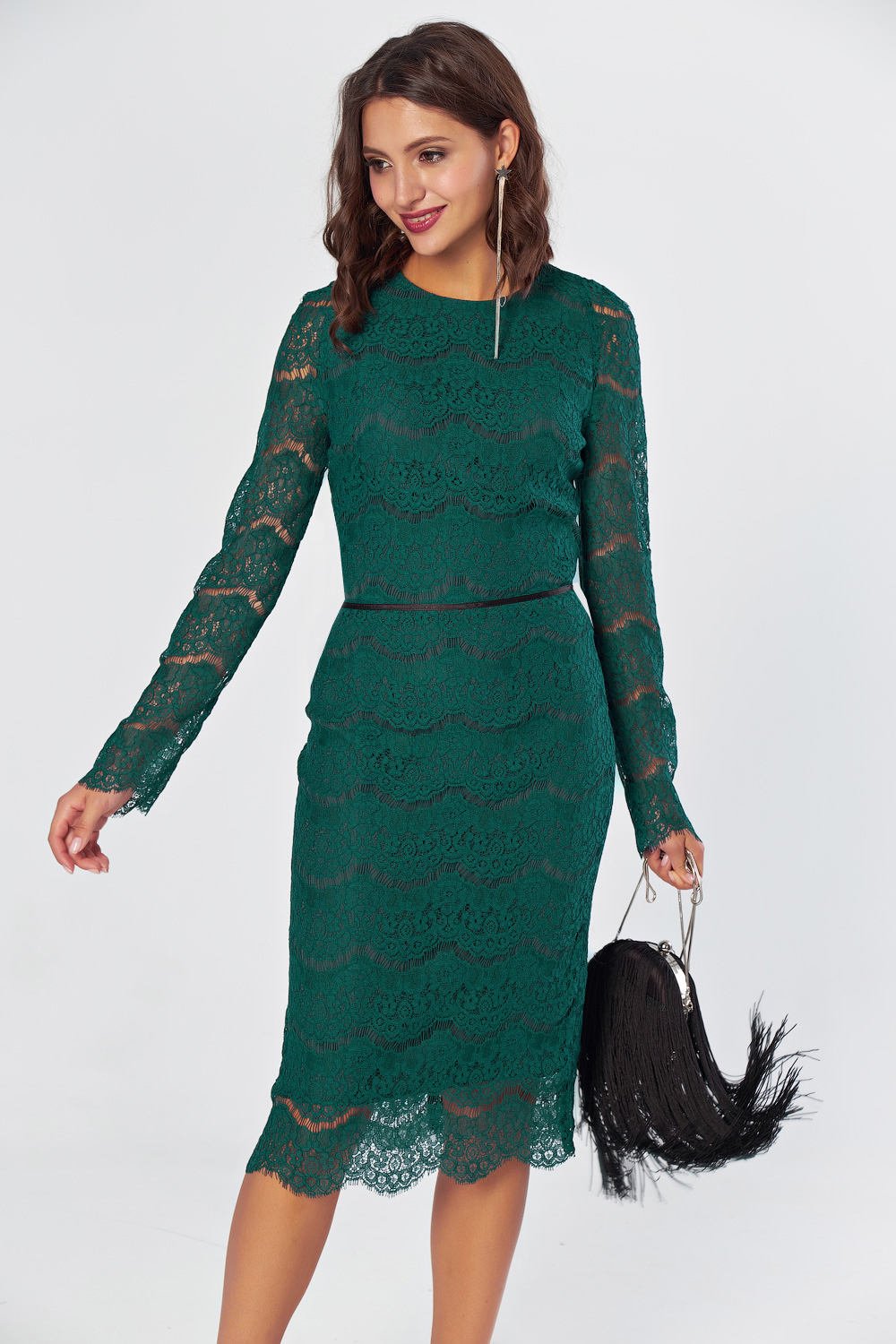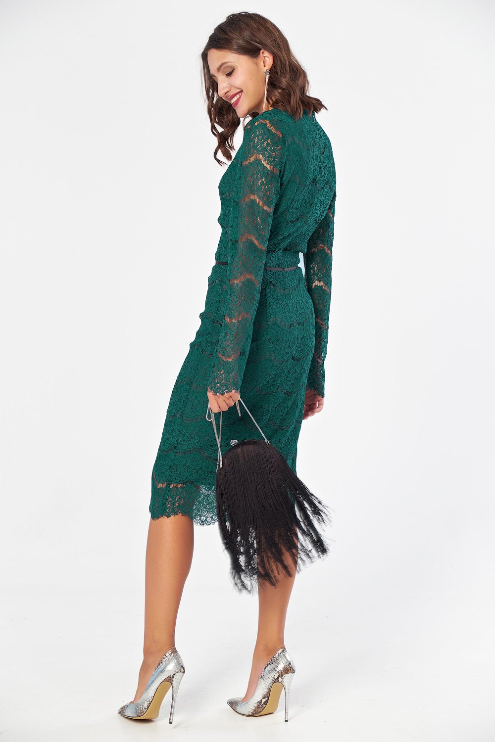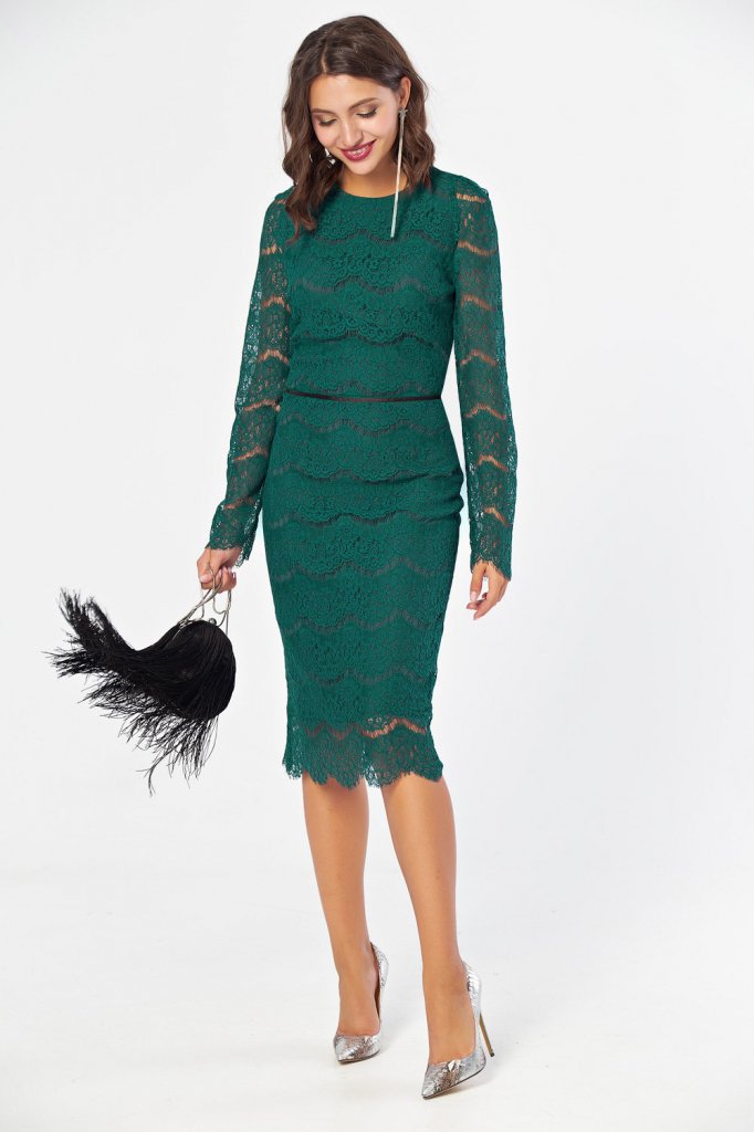 • Особенности: Платье прилегающего силуэта из кружева. Горловина округлой формы рукав длинный втачной нагрудные вытачки по талии настрочена декоративная тесьма. По спинке - потайная застежка-молния. Изделия на подкладке.