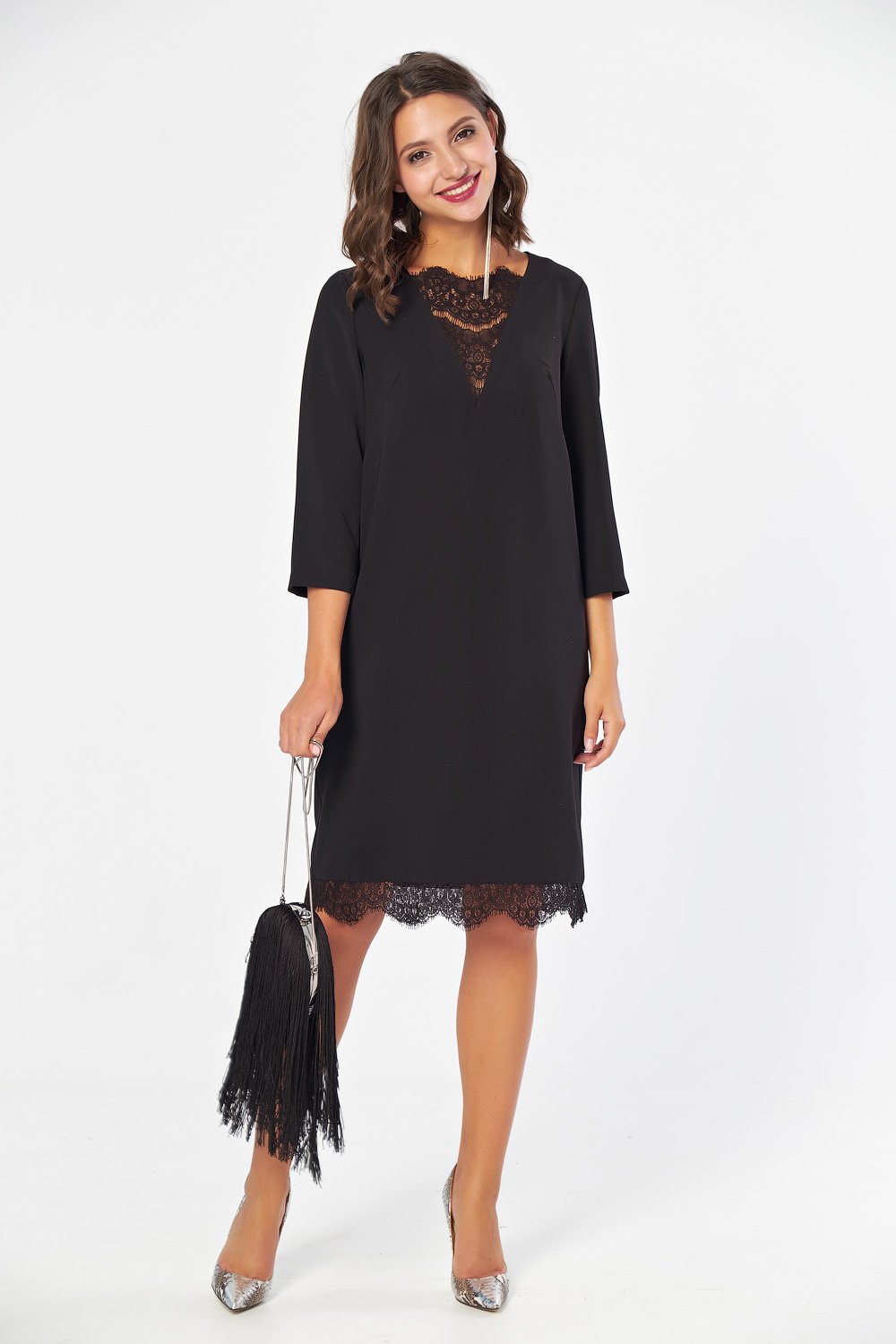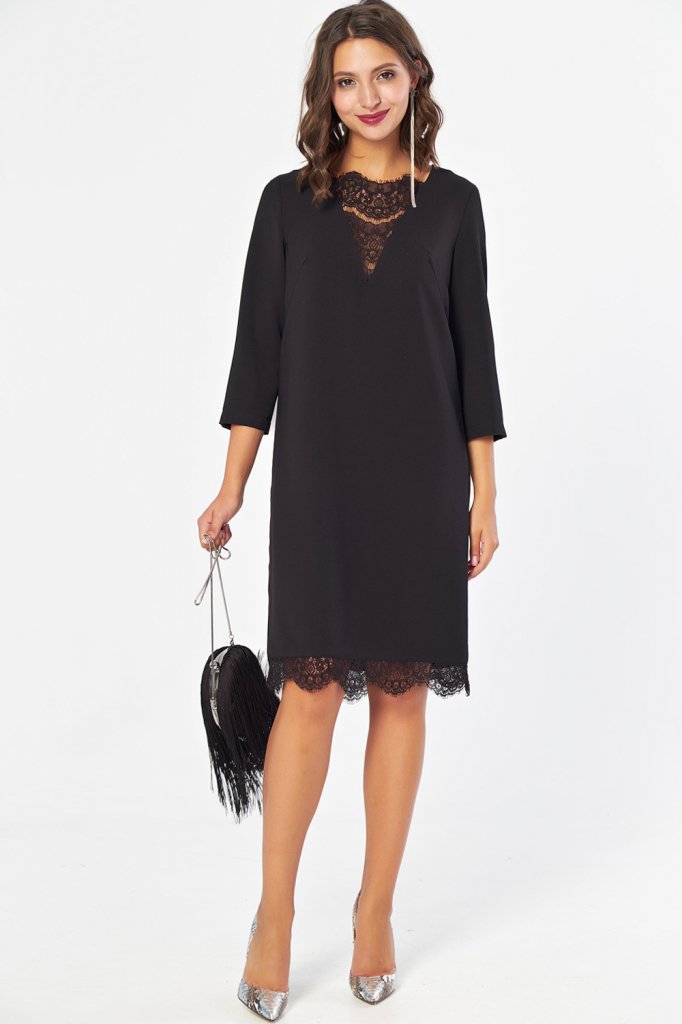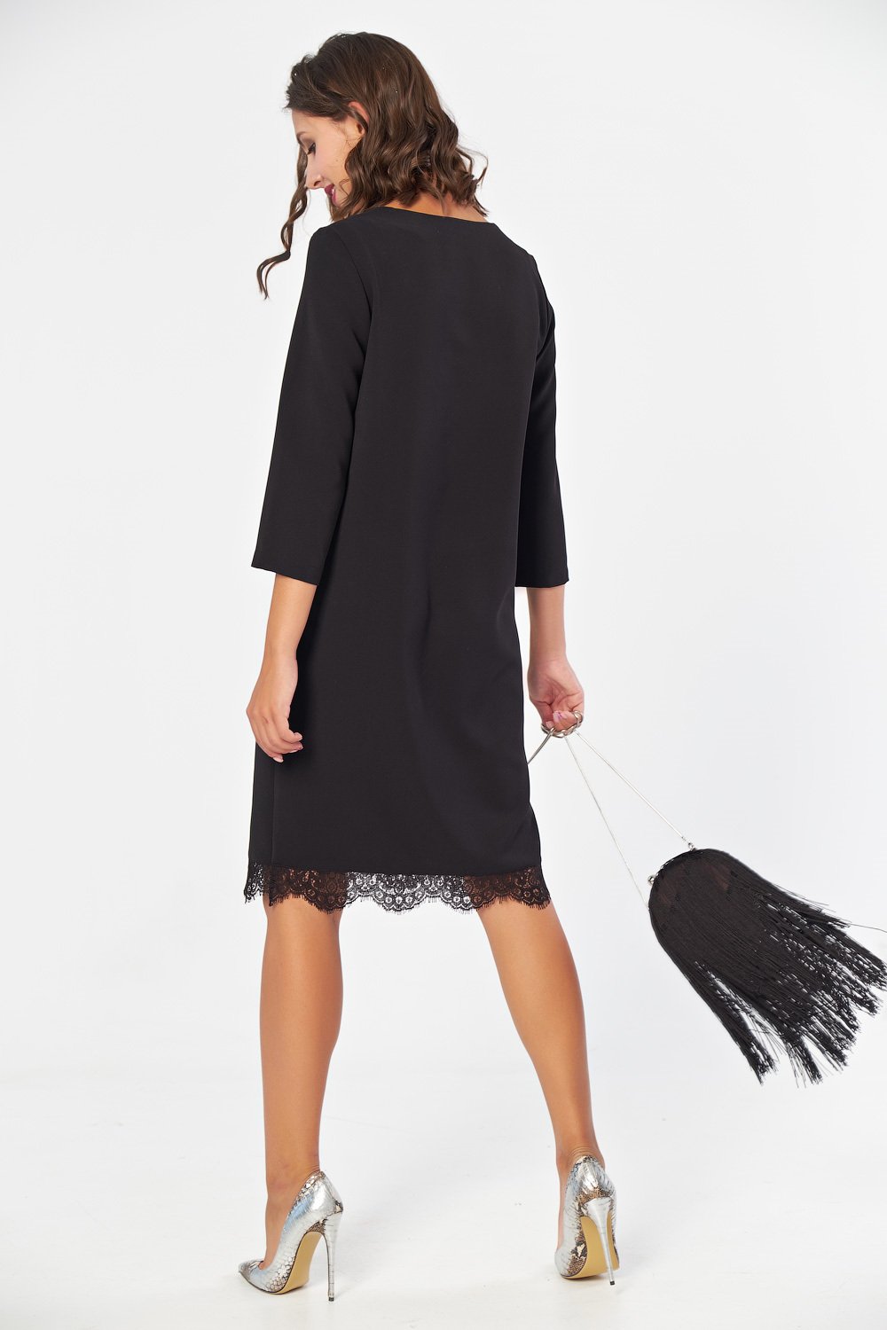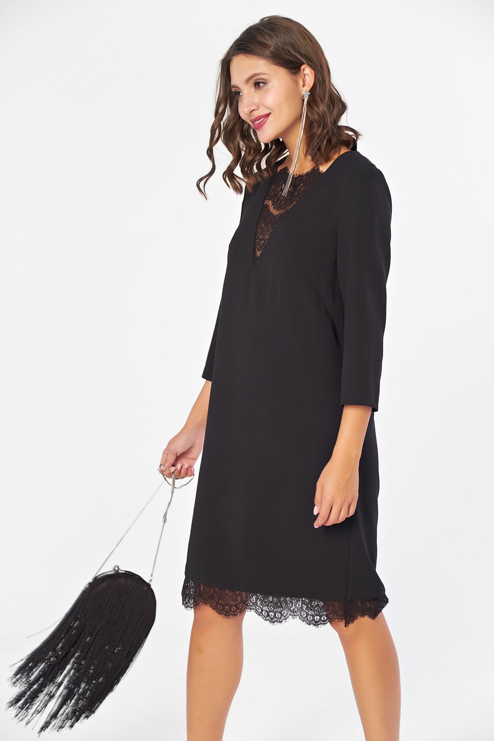 • Особенности: Платье прямого силуэта из плательной ткани с кружевной отделкой. Детали: по горловине - вставка из кружева V-образной формы вытачки рукав втачной 3/4 по низу изделия - кружевная отделка.