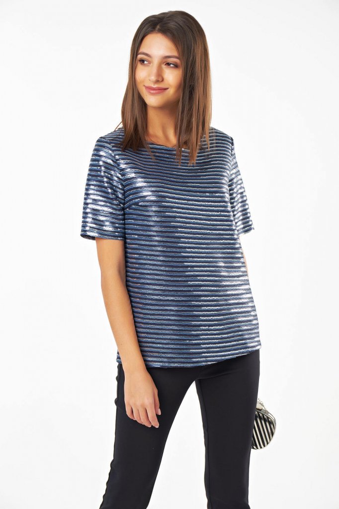 • Особенности: Топ из пайеток в золотисто-бордовую полоску на трикотажной подкладке. Детали: горловина округлой формы рукав короткий втачной вытачки.
