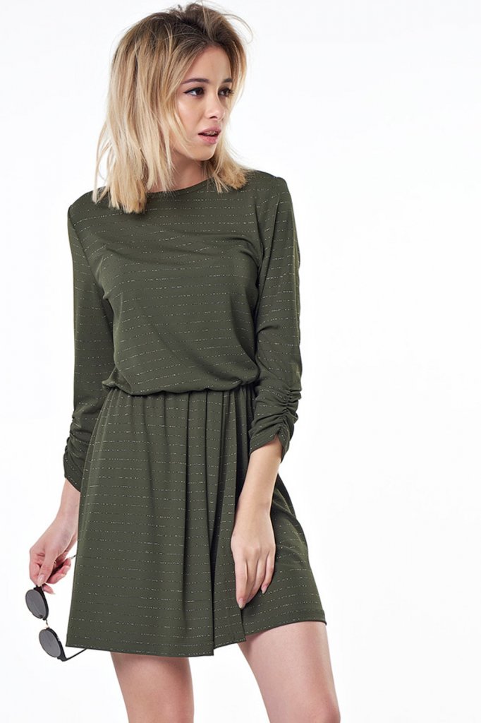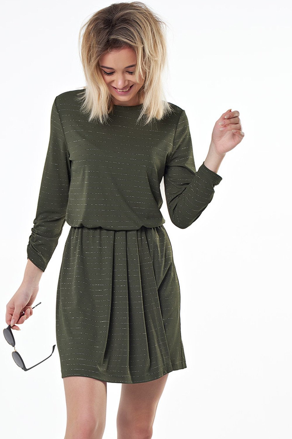 • Особенности: Платье прилегающего силуэта из трикотажа. Детали: горловина окантована рукав 7/8 с застрочкой на шпульную резину по низу рукава в нижней части платья выполнен запах с драпировкой по талии по линии талии притачана резина. Без застежки.
