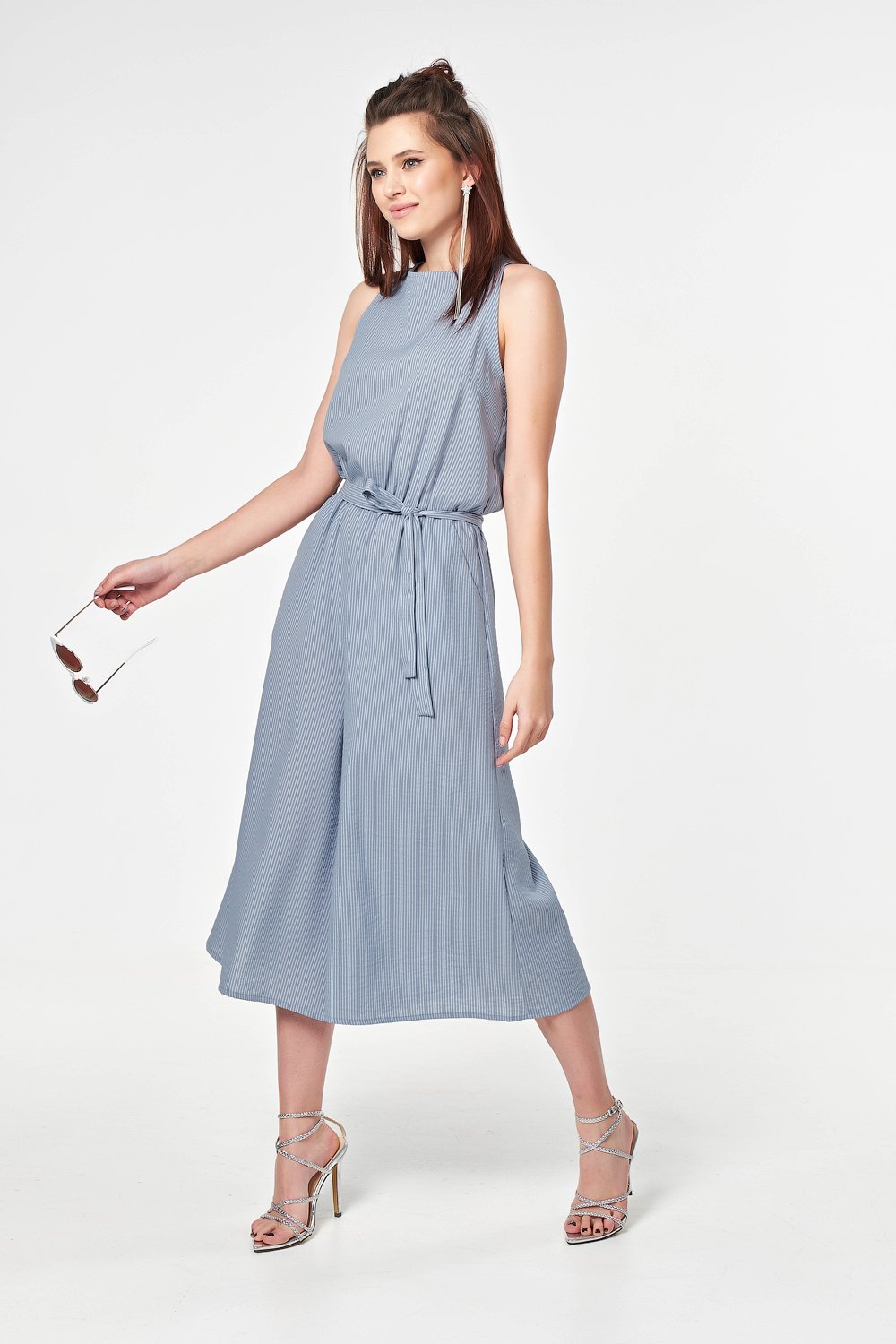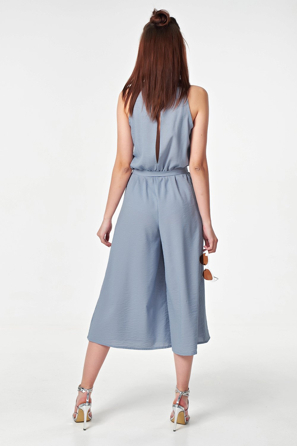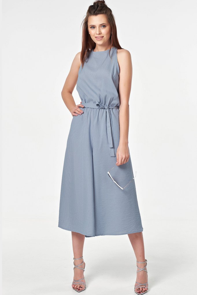 • Особенности: Комбинезон полуприлегающего силуэта по низу - брюки-кюлоты с расклешением. Детали: округлый вырез горловины американская пройма. В изделии предусмотрен напуск в верхней части. По талии - резинка и пояс в комплекте.