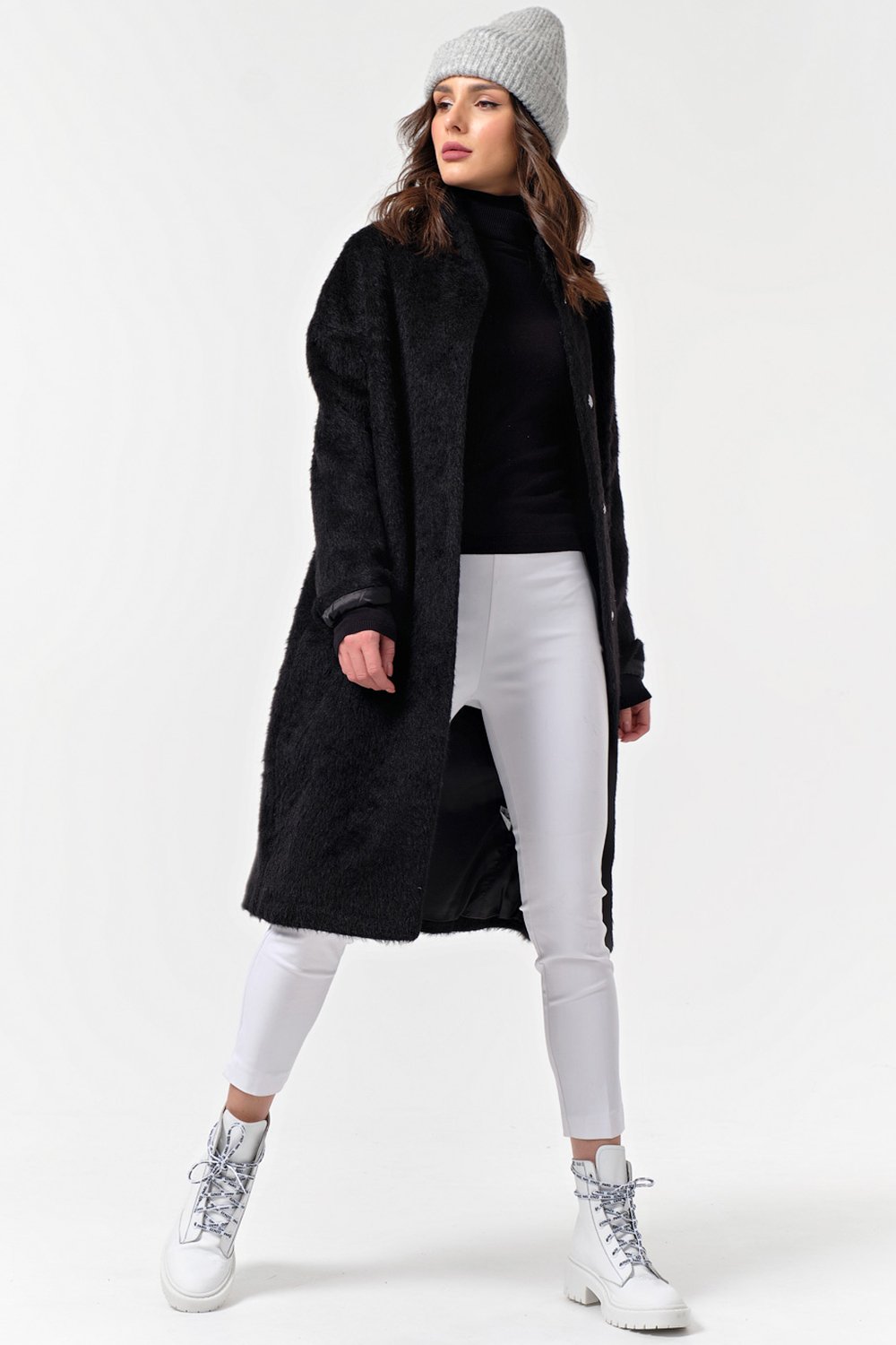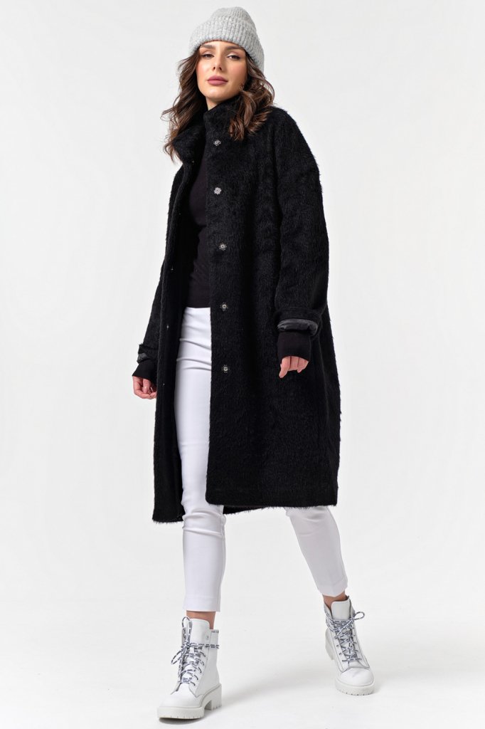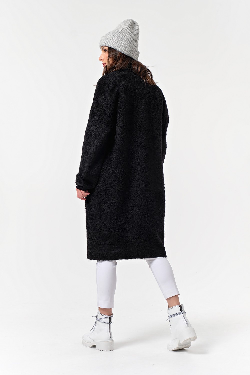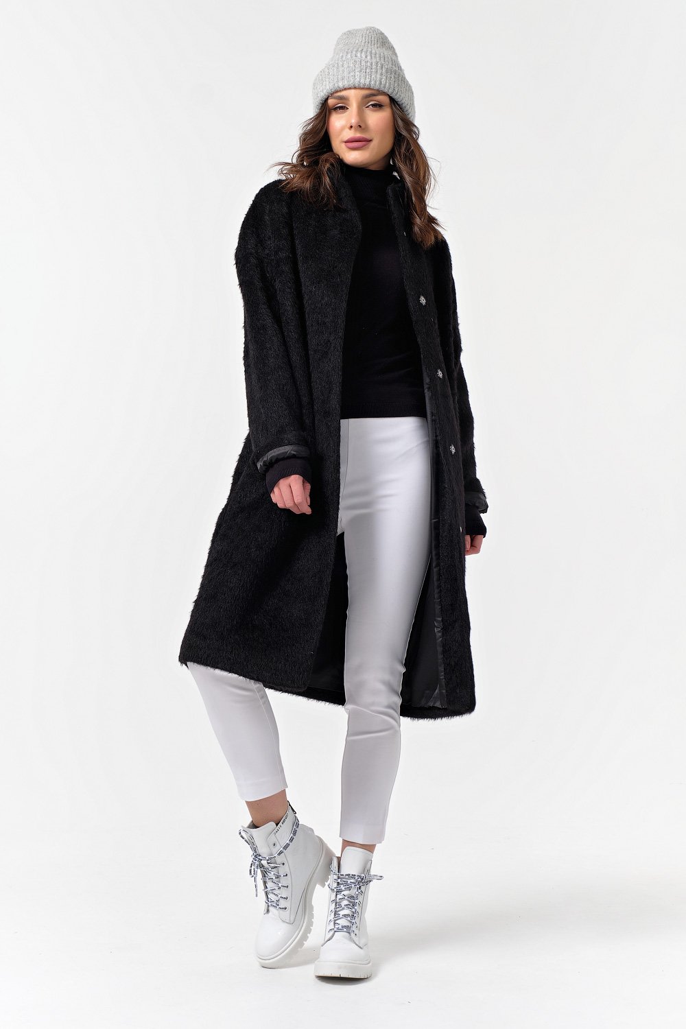• Особенности: Пальто свободного силуэта oversize слегка заужено книзу. Ткань пальтовая с длинным ворсом. Детали: воротник стойка втачной рукав со спущенной проймой застежка на кнопки. Изделие на подкладке.