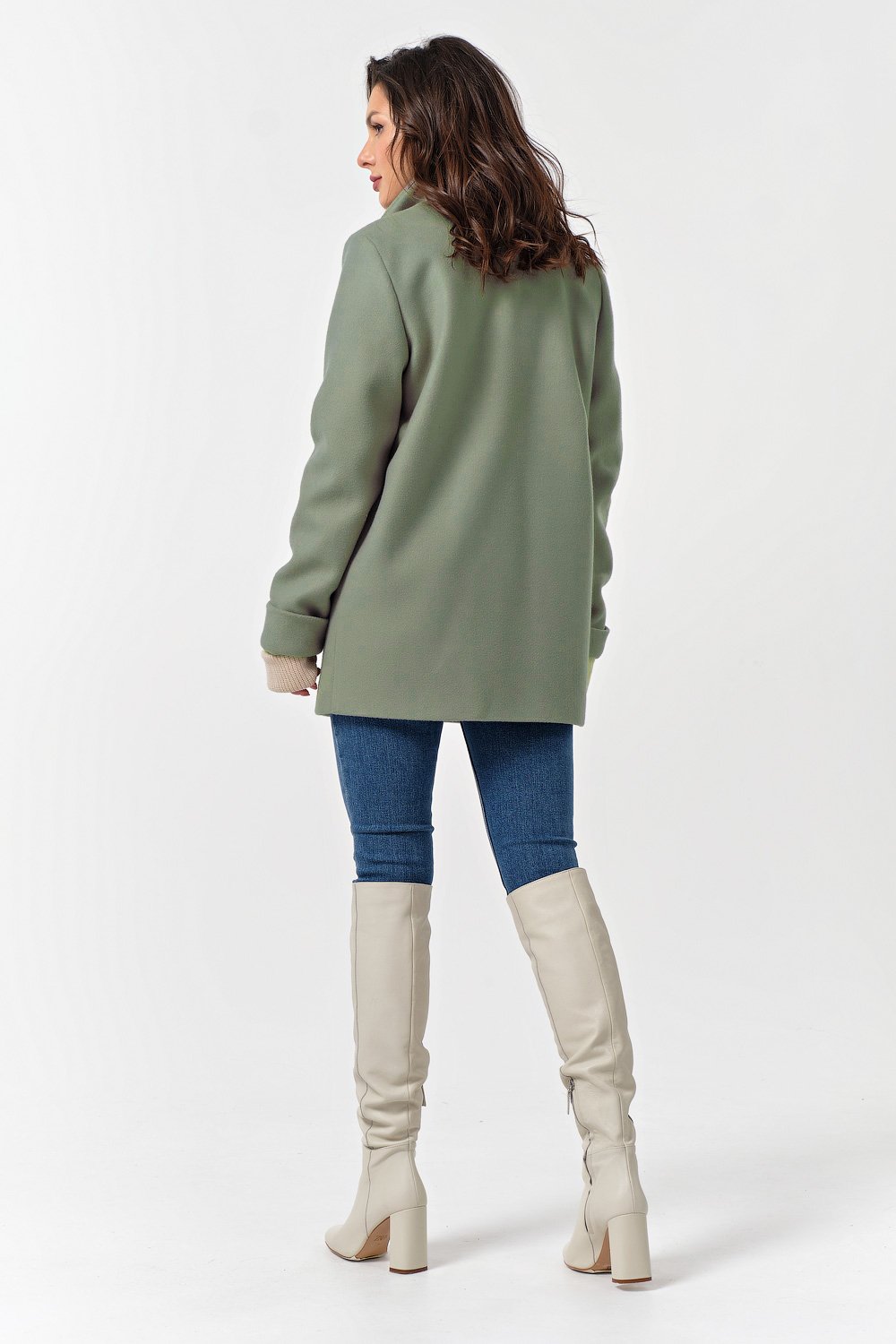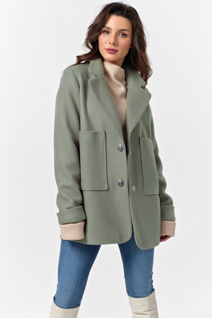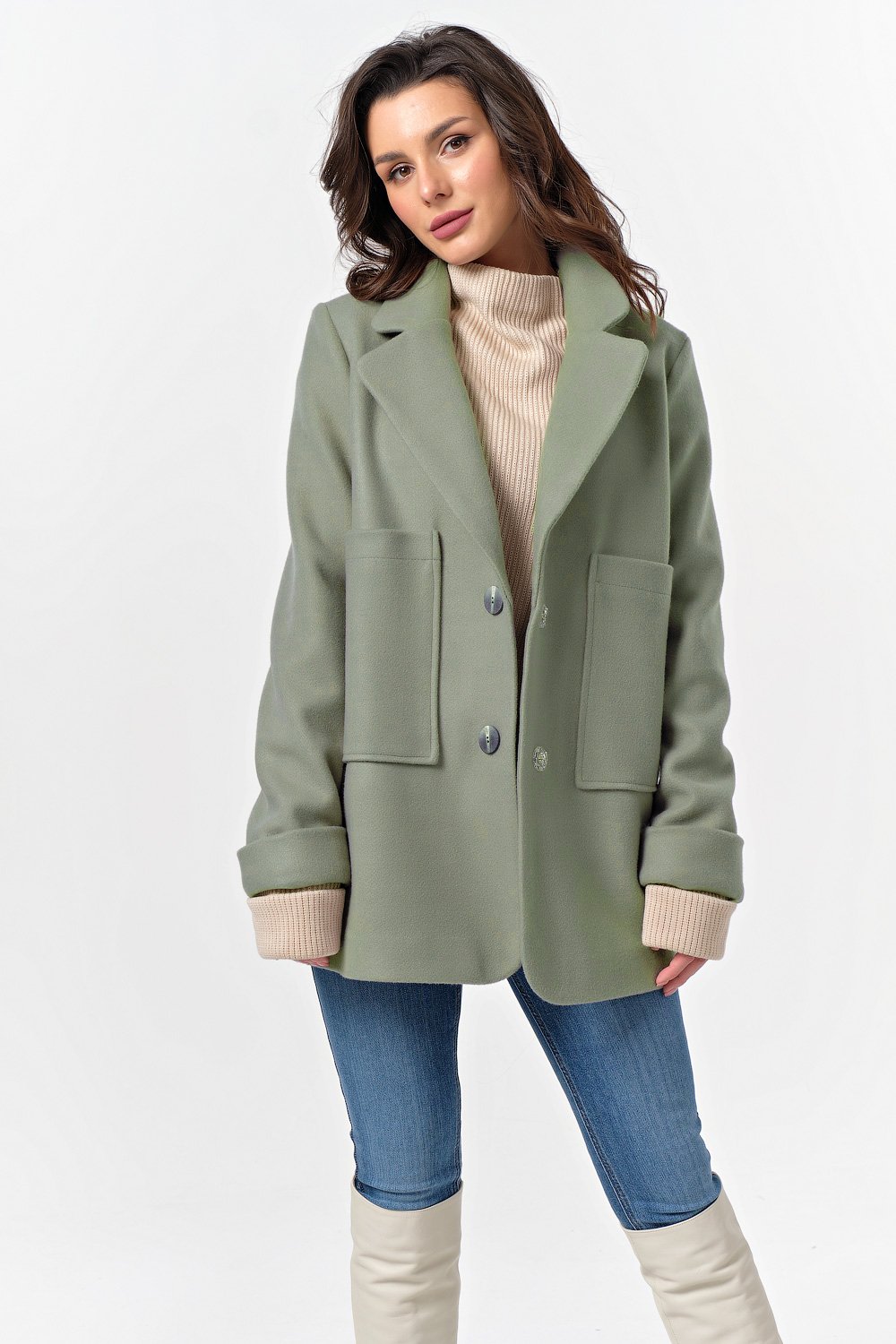 • Особенности: Укороченное пальто прямого силуэта. Детали: отложной воротник накладные карманы рукав с широким отворотом застежка на кнопки с декоративными пуговицами. Изделие на подкладке.