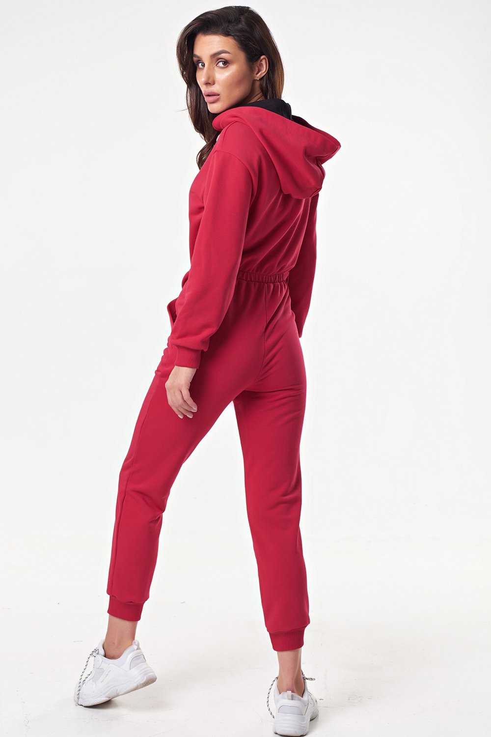• Особенности: Комбинезон из трикотажа-футера. Детали: капюшон (обработан контрастной подкладкой застежка на молнию втачной рукав на манжете вышивка фирменного значка резинка по талии прорезные карманы манжеты по низу брюк.