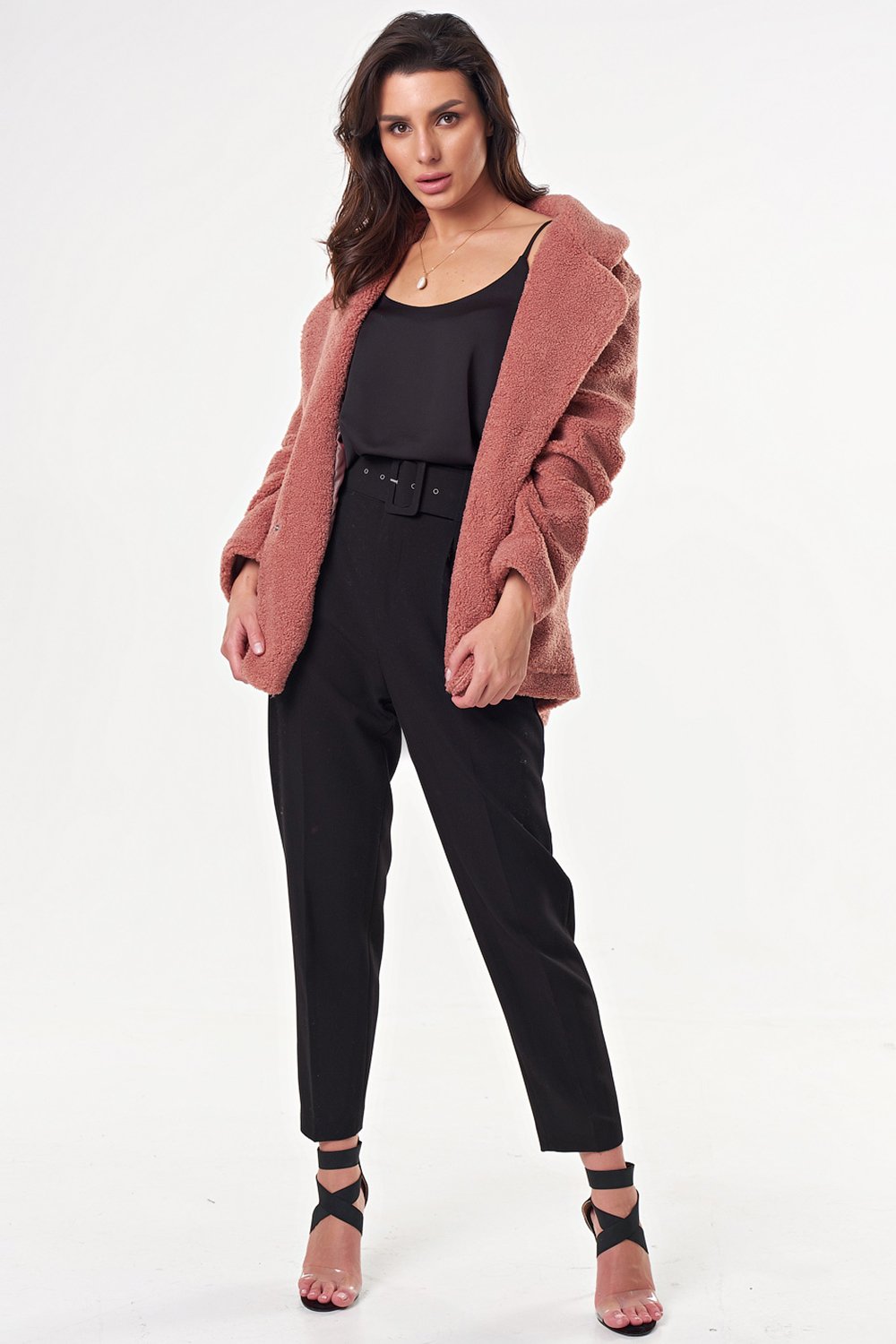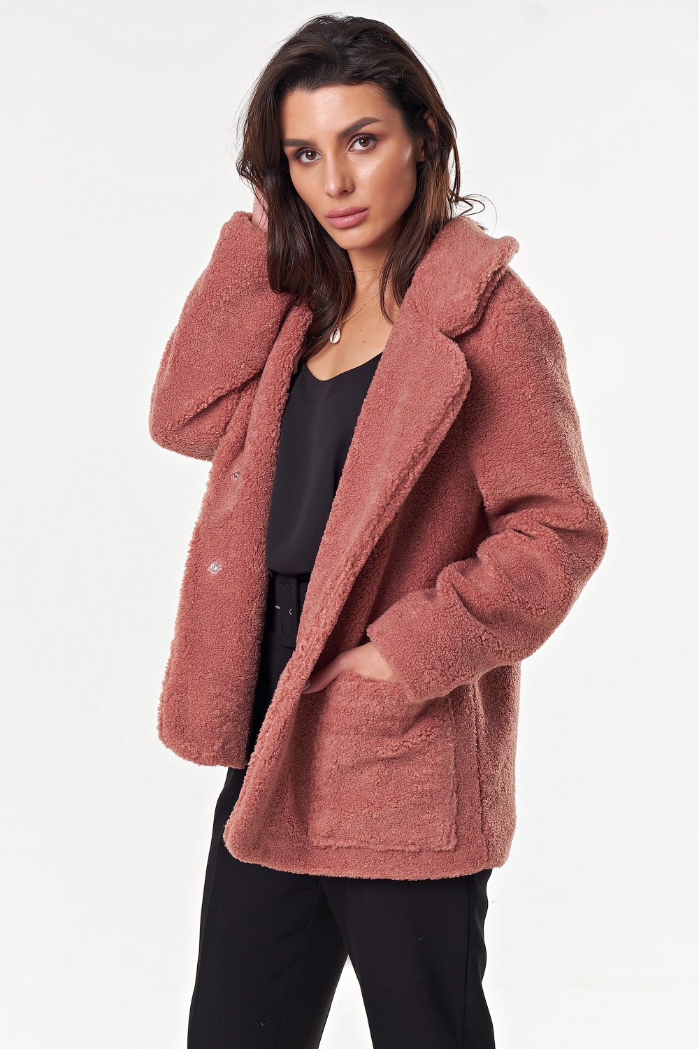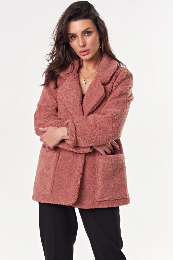 • Особенности: Пальто из искусственного меха свободного силуэта. Детали: отложной воротник со скругленными углами накладные карманы. Изделие на подкладке.
