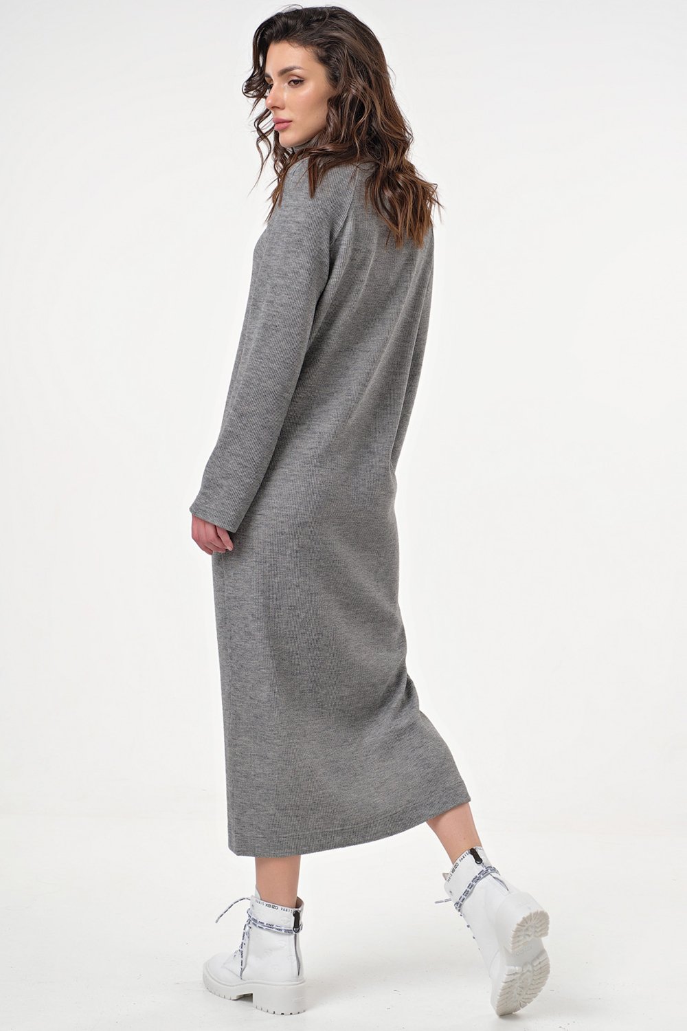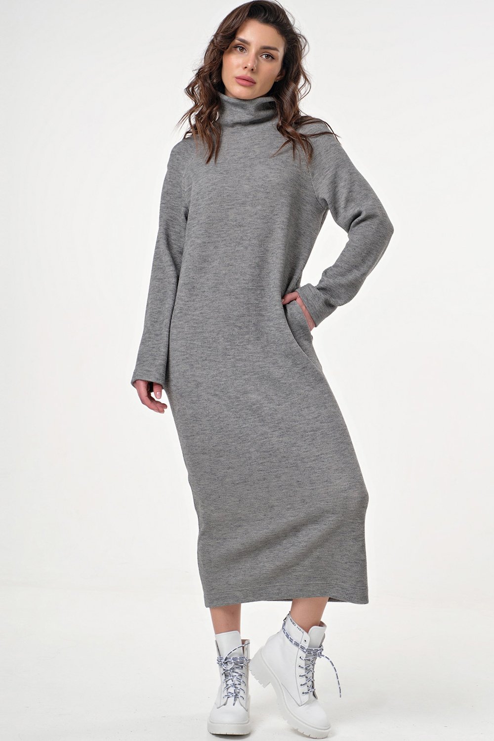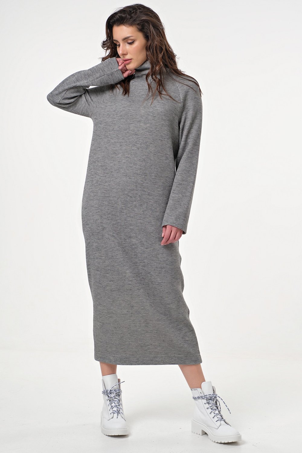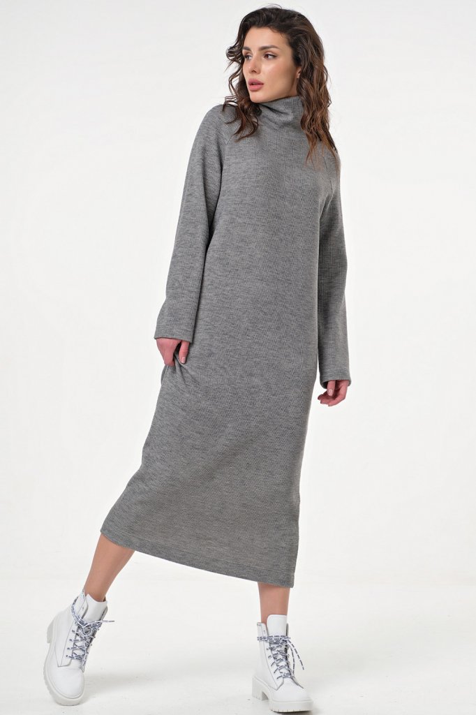 • Особенности: Платье прямого силуэта из фактурного трикотажа в рубчик. Детали: воротник - мягкая стойка длинный рукав - реглан карманы в боковых швах.