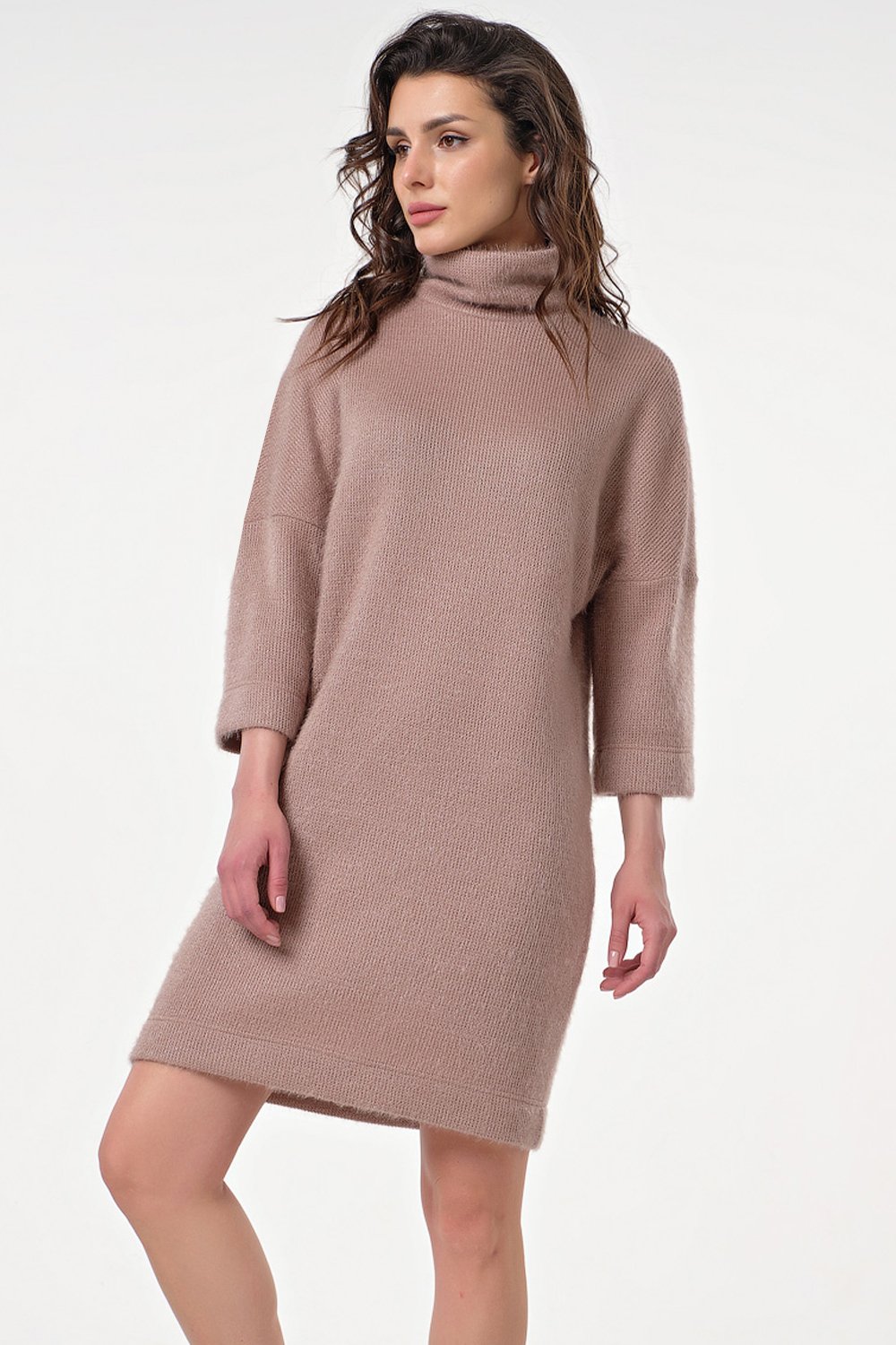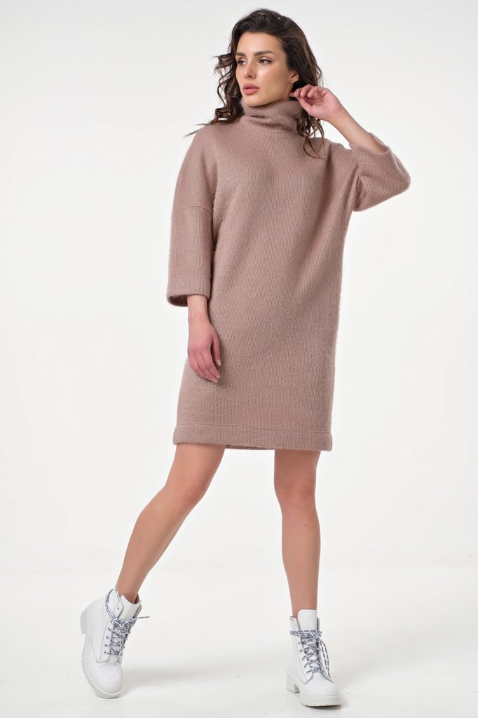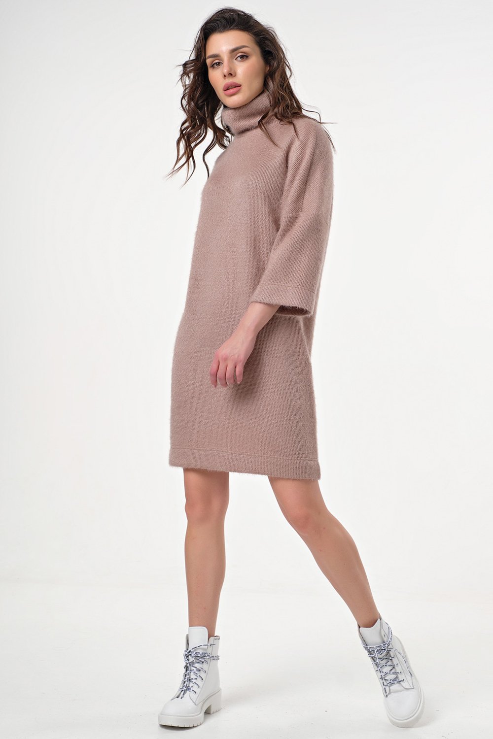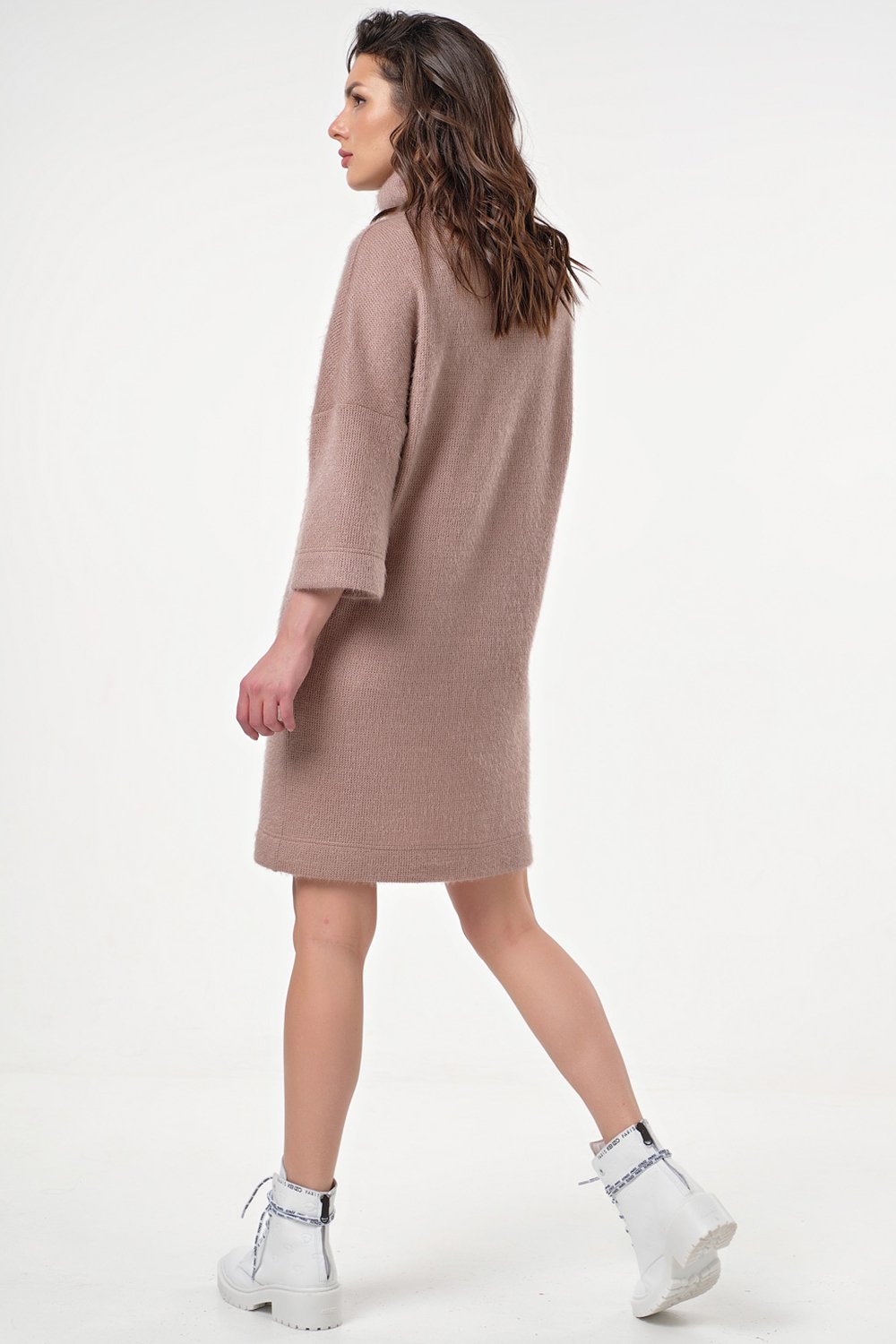 • Особенности: Платье прямого силуэта из ворсового трикотажа. Детали: спущенная линия плеча втачной широкий рукав широкий воротник-стойка. Без застежки.