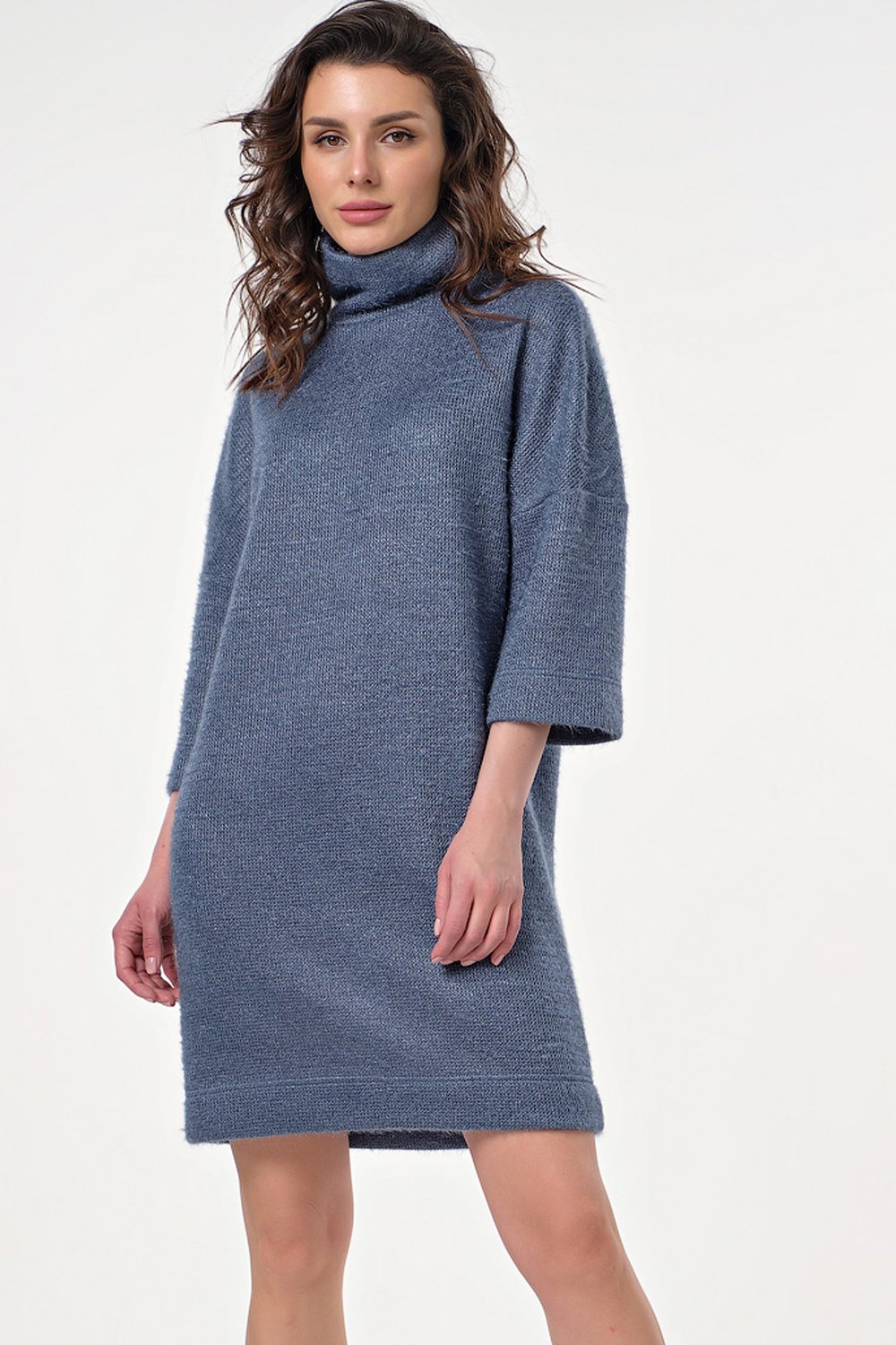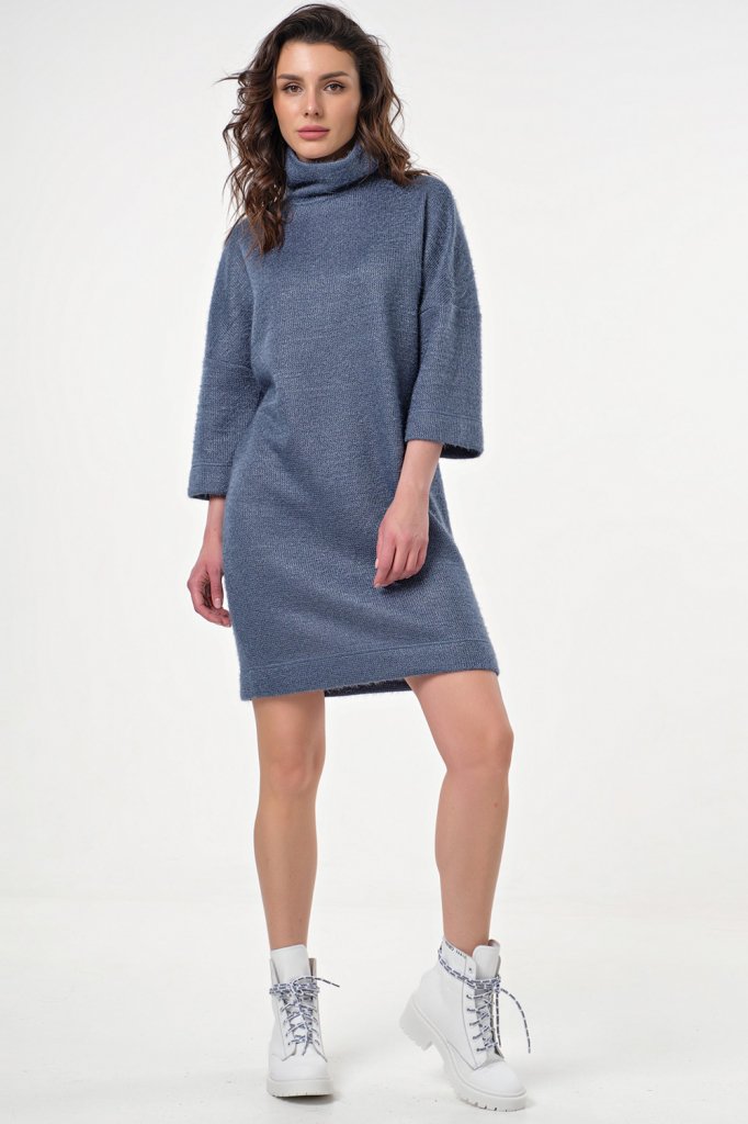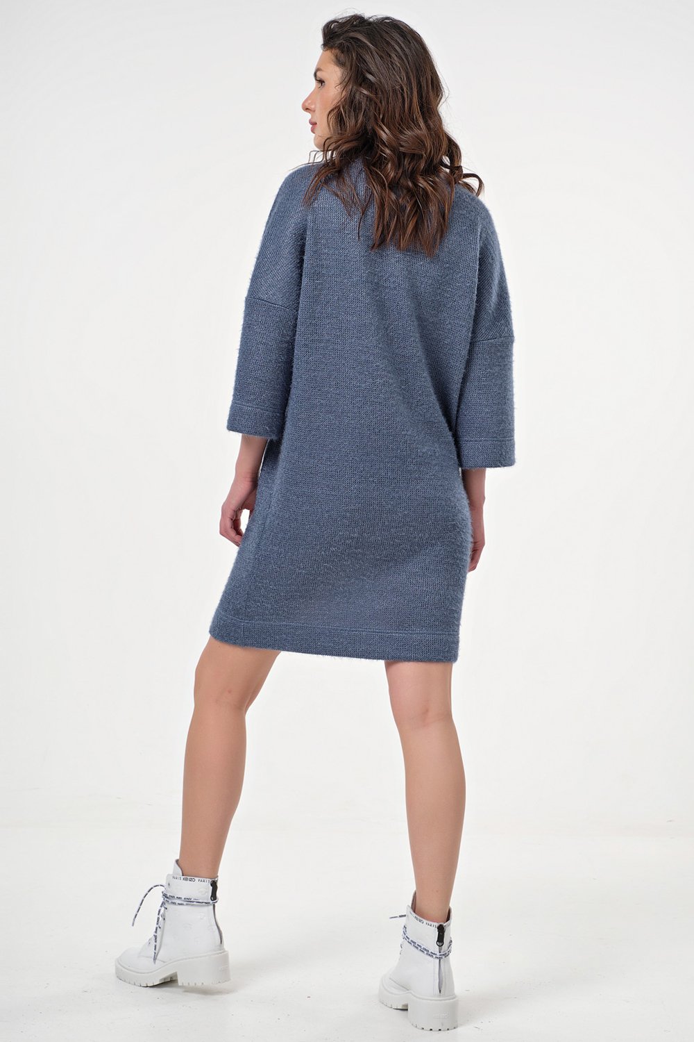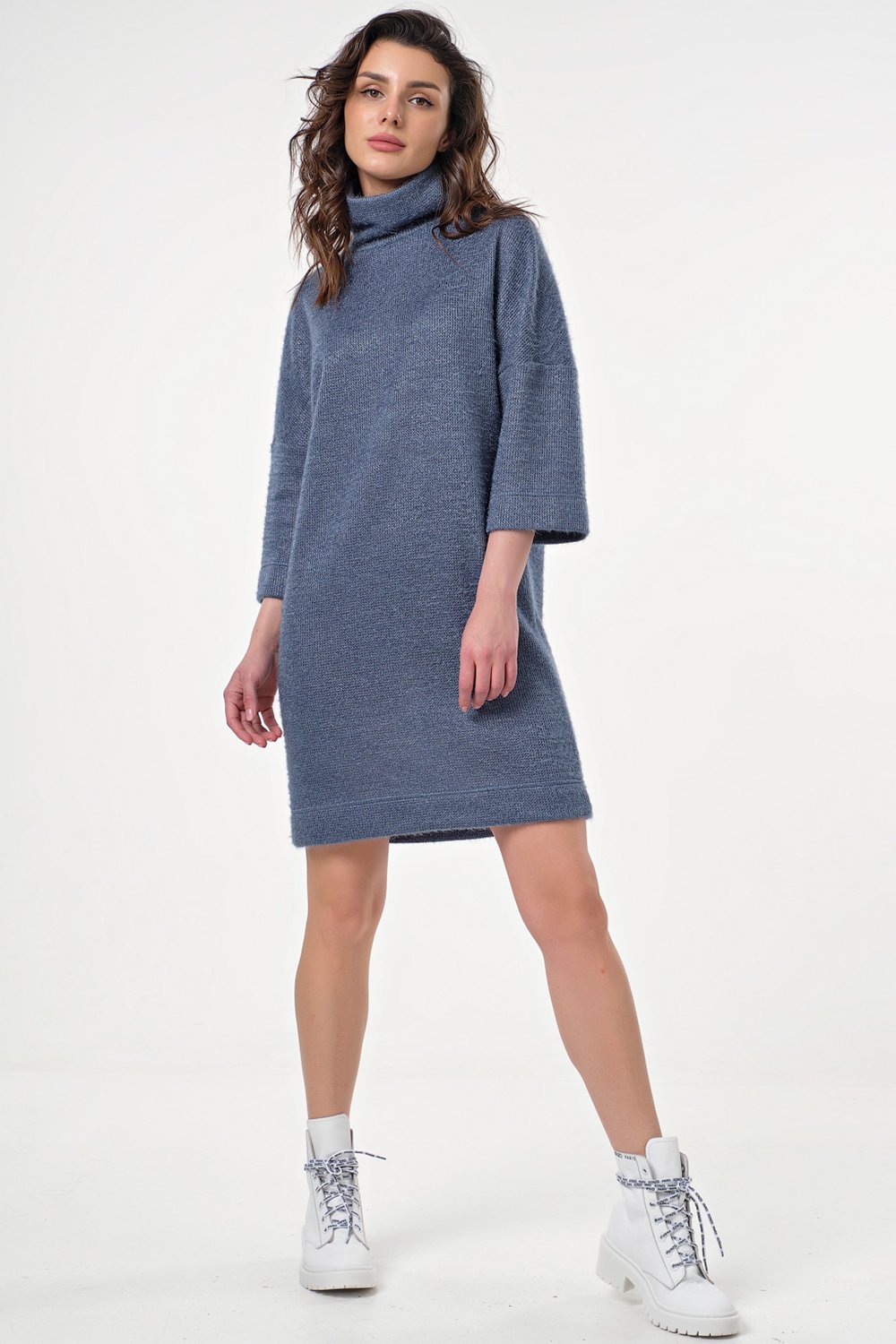 • Особенности: Платье прямого силуэта из ворсового трикотажа. Детали: спущенная линия плеча втачной широкий рукав широкий воротник-стойка. Без застежки.