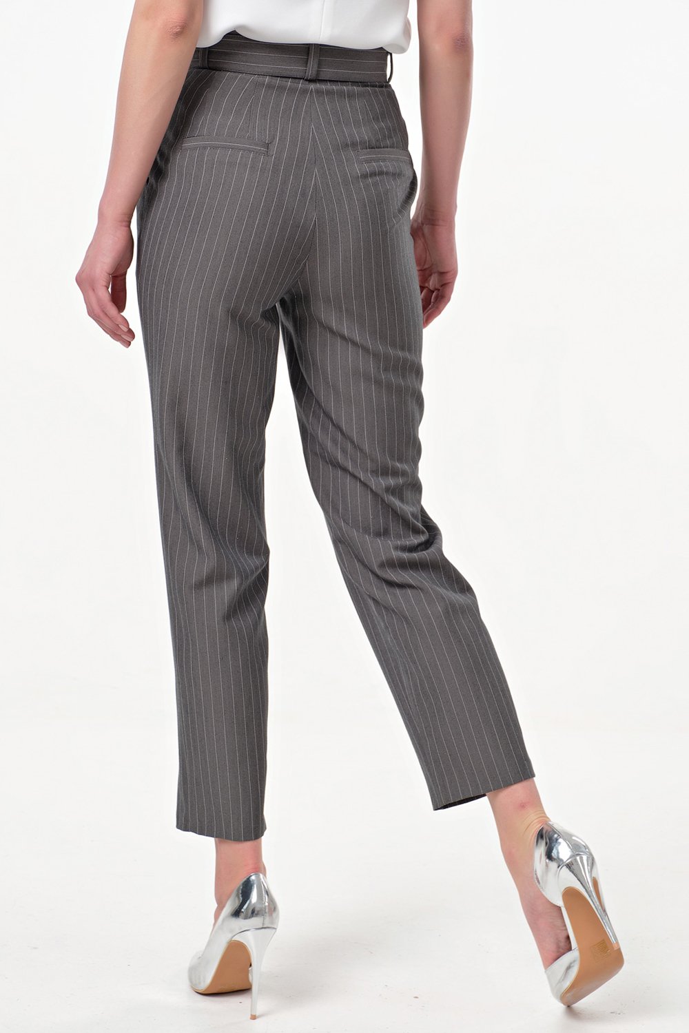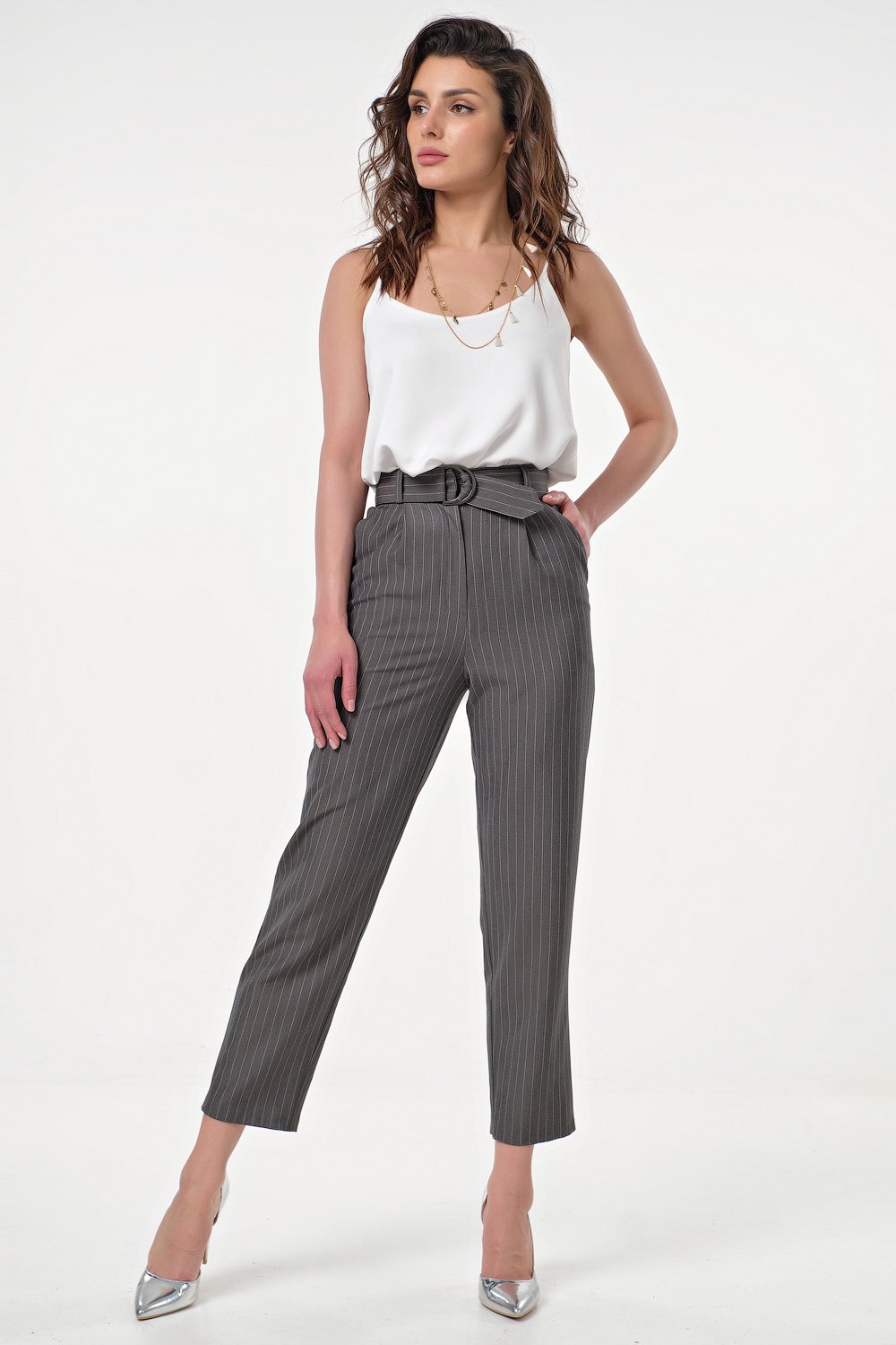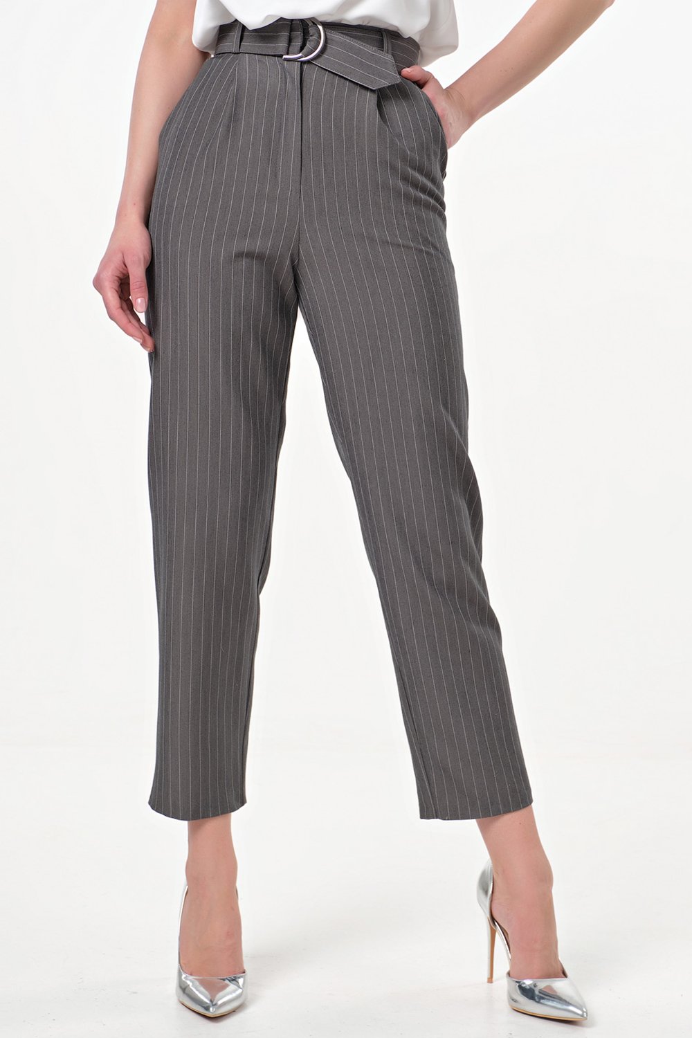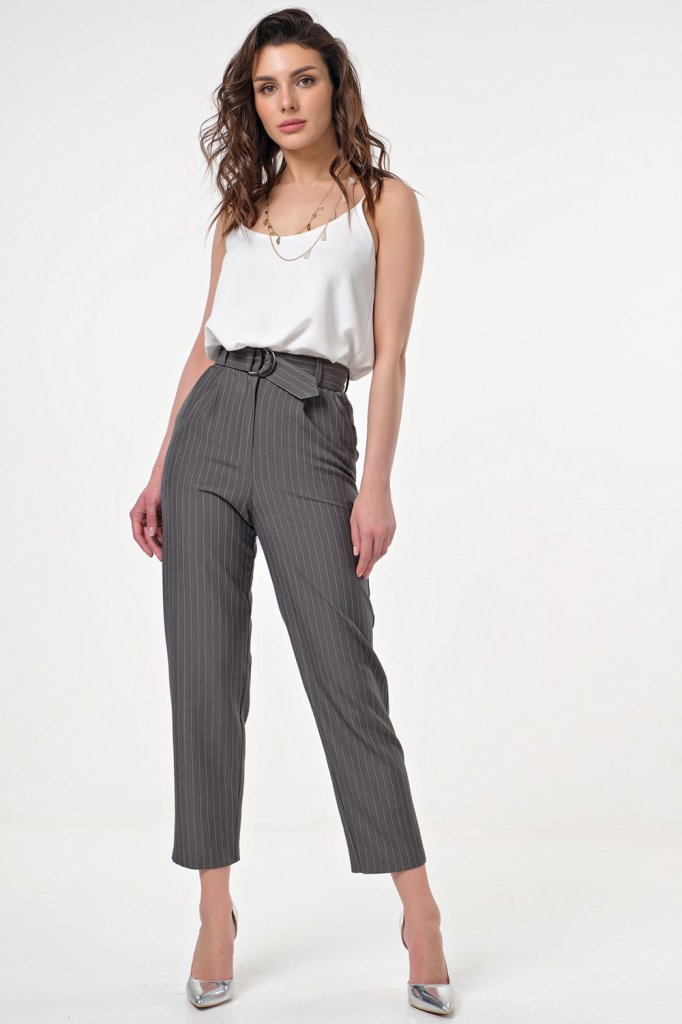 • Особенности: Брюки прямого силуэта на притачном поясе. Детали: брючные карманы шлевки на поясе по переду заложены складки пояс-ремень из основной ткани с пряжкой в комплекте. Застежка на молнию и пуговицу.