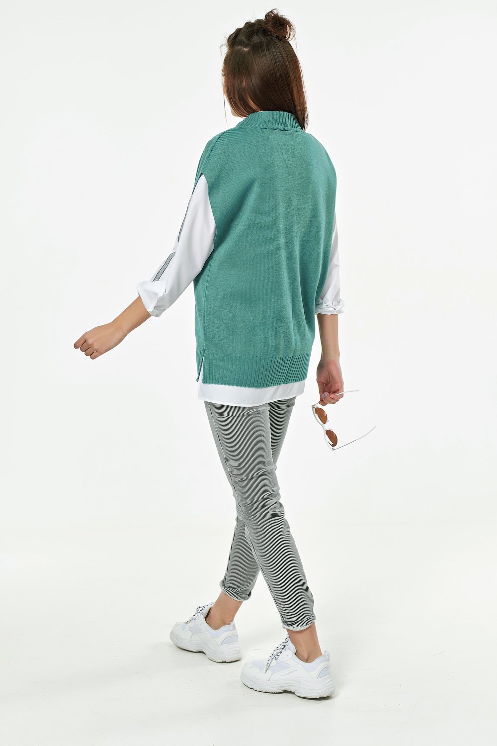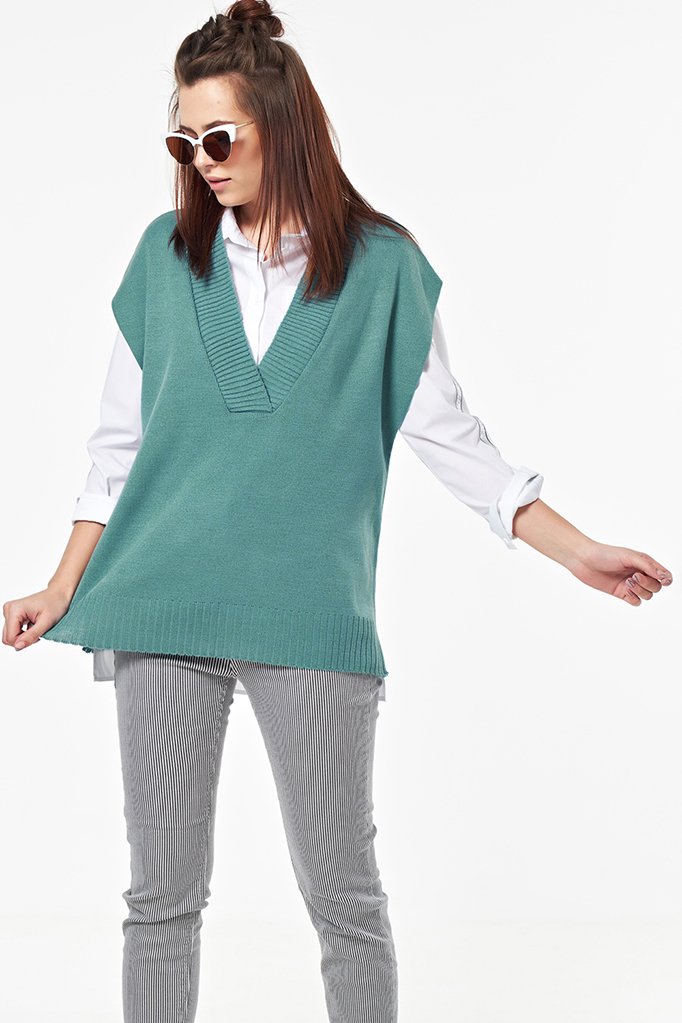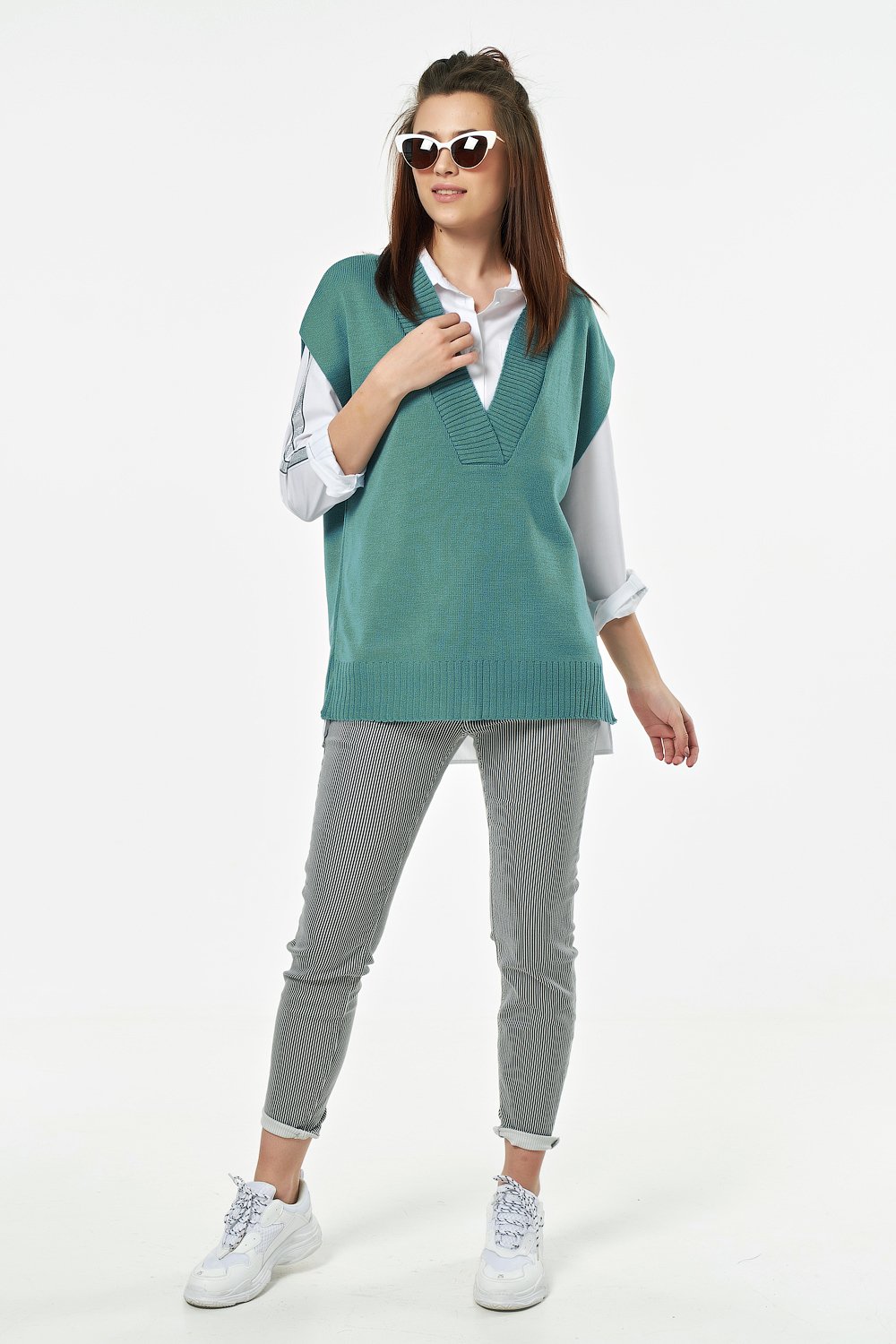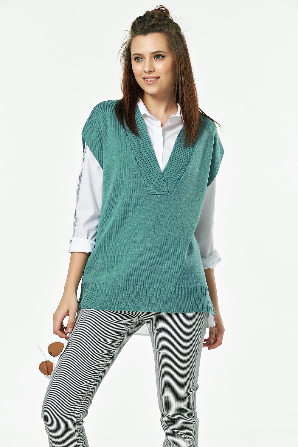 • Длина изделия: по спинке около 68 см. Особенности: По бокам выполнены разрезы низ изделия и горловина оформлен резинкой в рубчик.