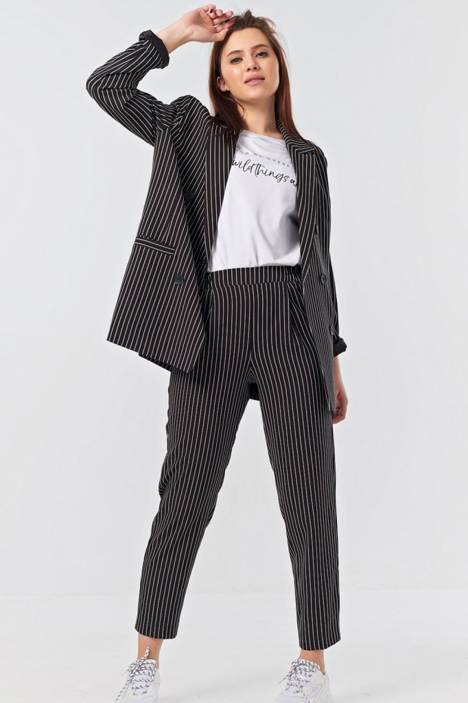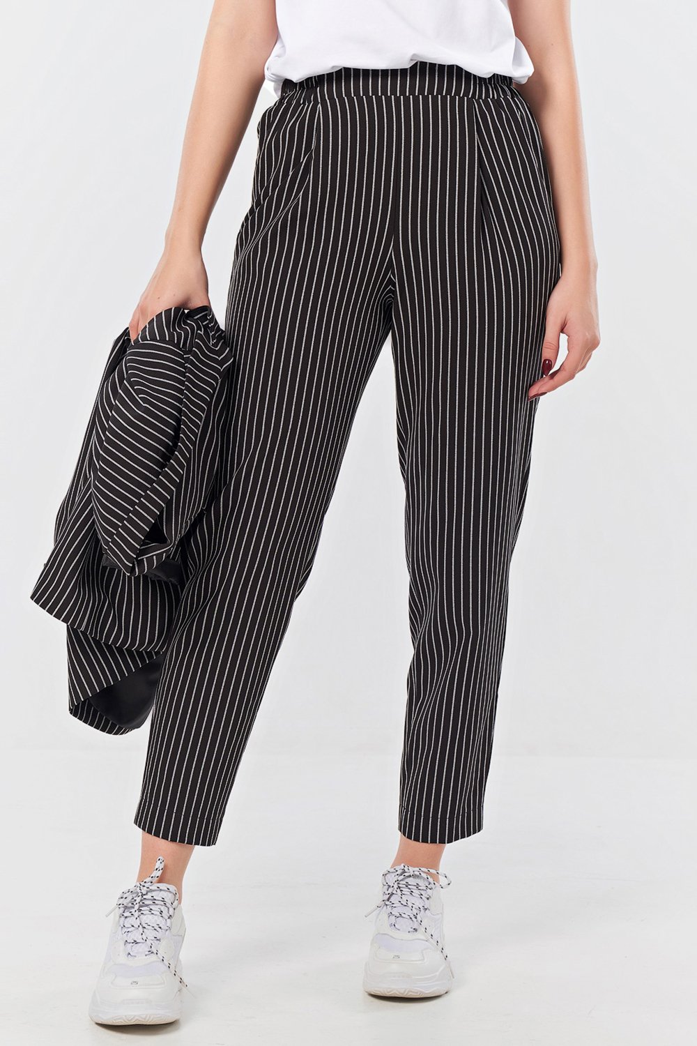 • Особенности: Брюки полуприлегающего силуэта из костюмной ткани в клетку. Детали: притачной пояс с резинкой в боковых вставках защипы зауженный книзу силуэт.