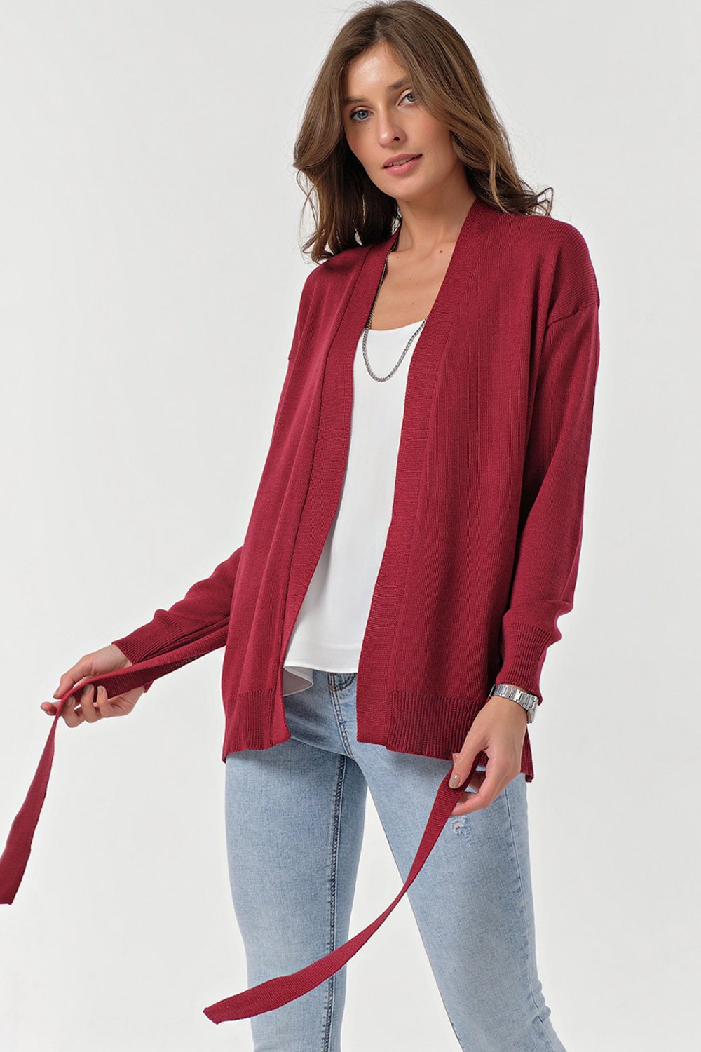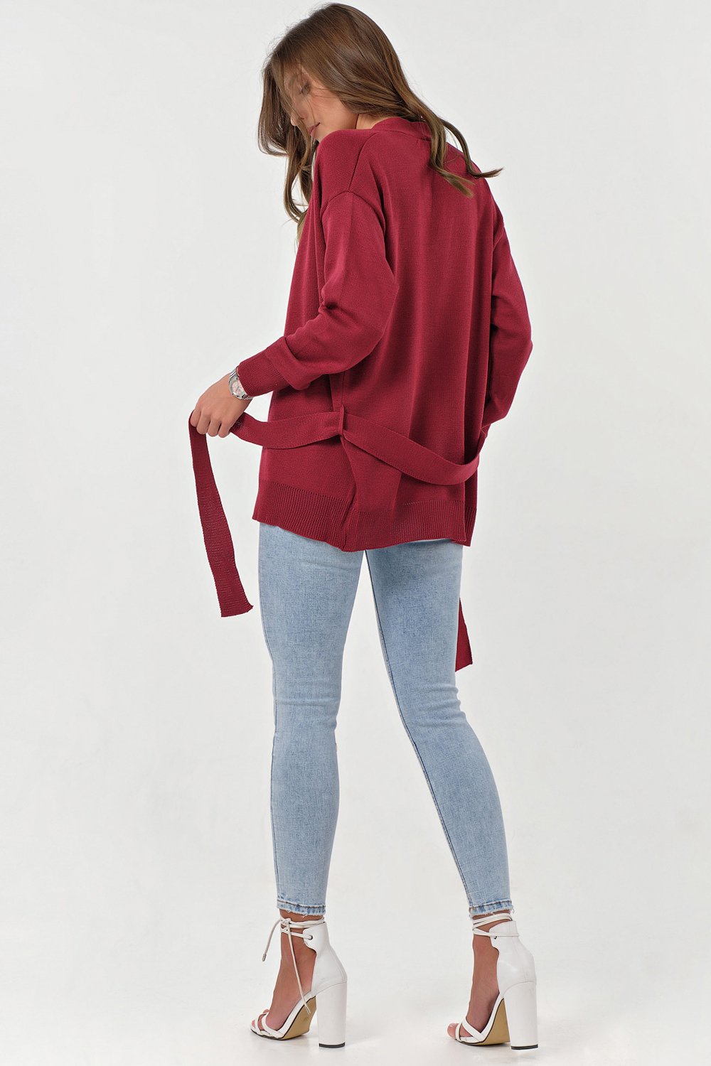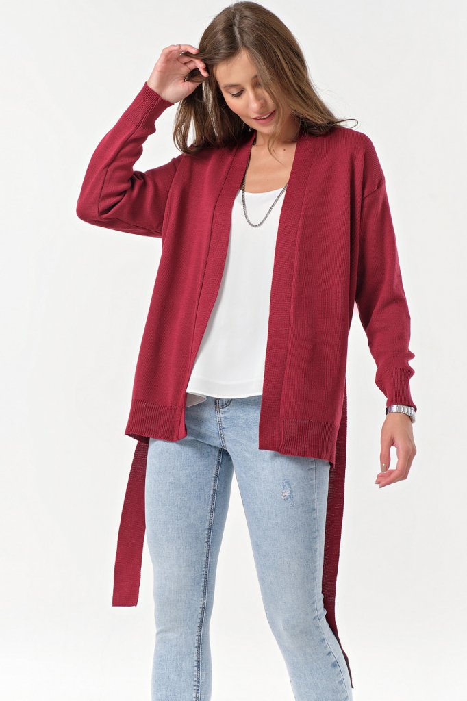 • Длина изделия: 70 см. Особенности: Вязаный кардиган прямого силуэта выполнен из полушерстяной пряжи. Кардиган оформлен широкой обтачкой по переду плавно переходящий на спинку. Рукава оформлены широкой резинкой. Пояс съемный крепится боковыми шлевками.