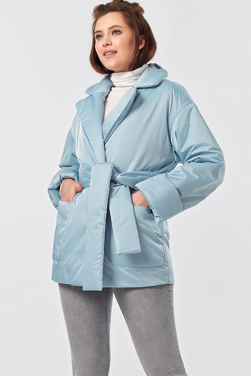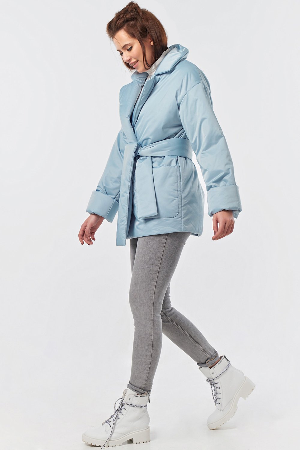 • Особенности: Куртка из плотной курточной ткани с утеплителем Термофинн на вискозной подкладке. Детали: отложной воротник втачной рукав со спущенной проймой и широким отворотом по низу; накладные карманы пояс в комплекте. Застежка на внутренние кнопки.