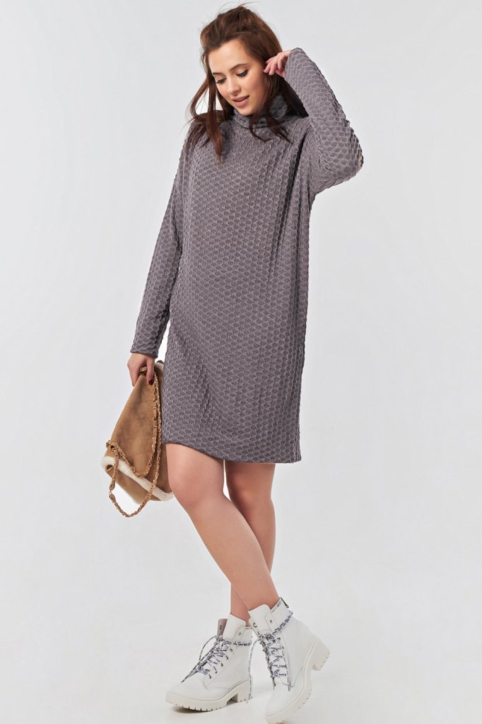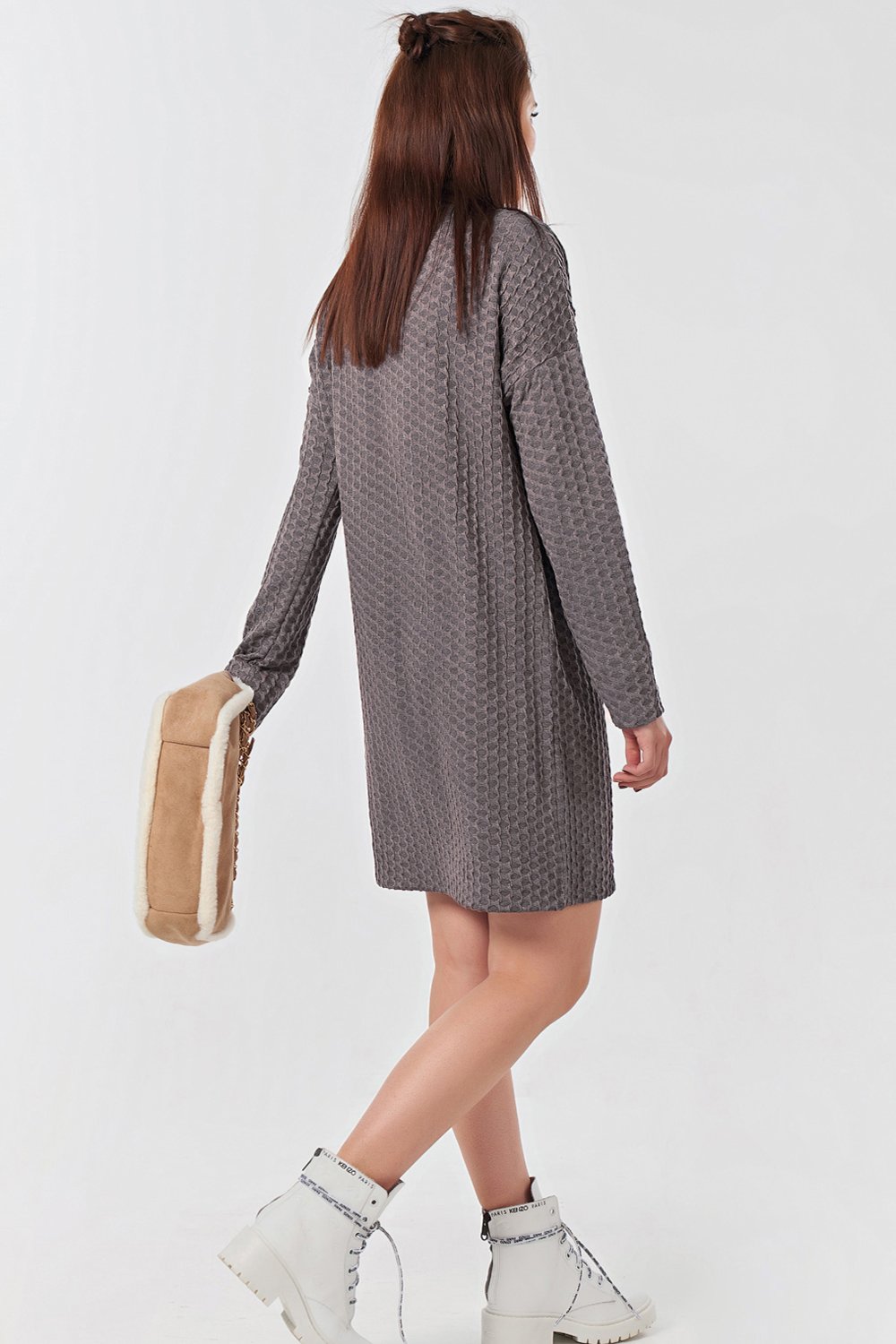 • Особенности: Платье из мягкого фактурного трикотажа изнутри обработано подкладкой из кулирки. Воротник-стойка спущенная пройма длинный рукав.