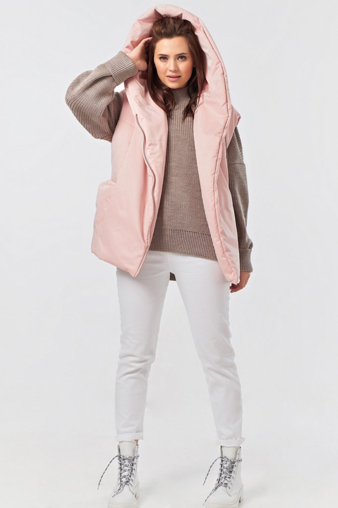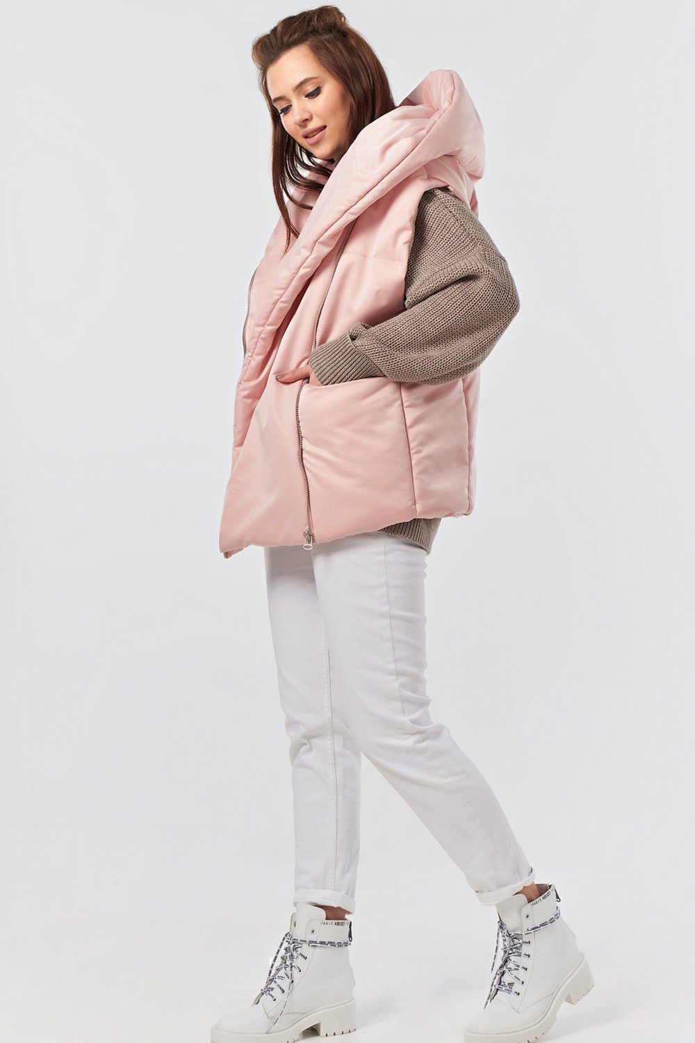 • Особенности: Жилетка из плотной плащевой ткани с утеплителем Термофинн. Детали: перед с запахом с металлической застежкой-молнией переходит в объемный капюшон. Карманы по переду. Изделие на подкладке.
