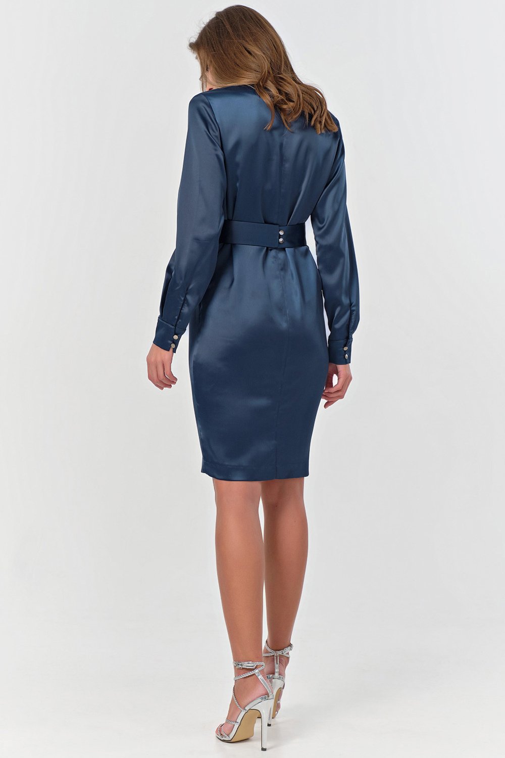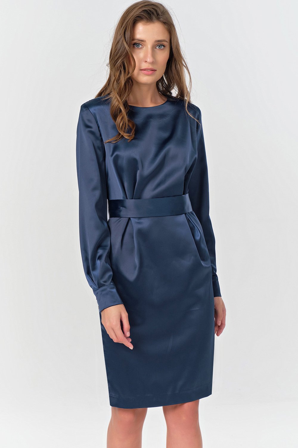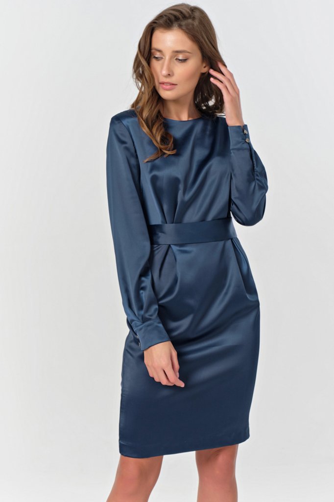 • Особенности: Платье из матового атласа. Детали: горловина округлой формы втачной рукав на манжете с защипами. Отрезное по талии с защипами. Пояс в комплекте.