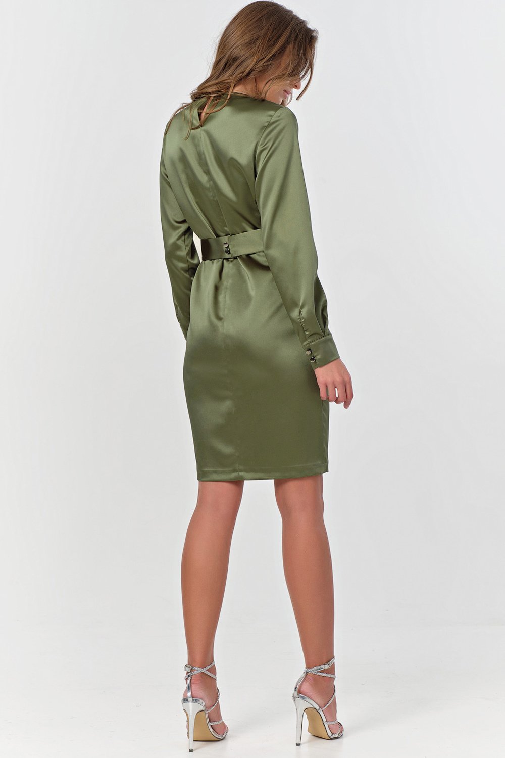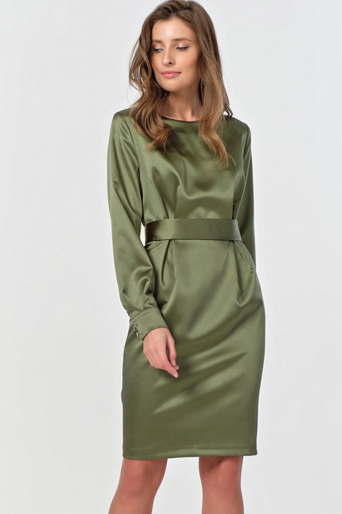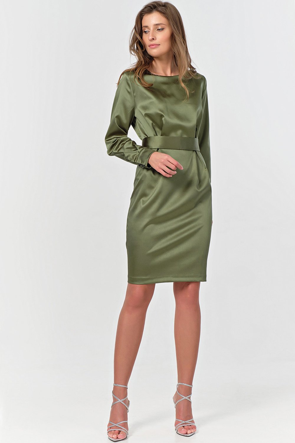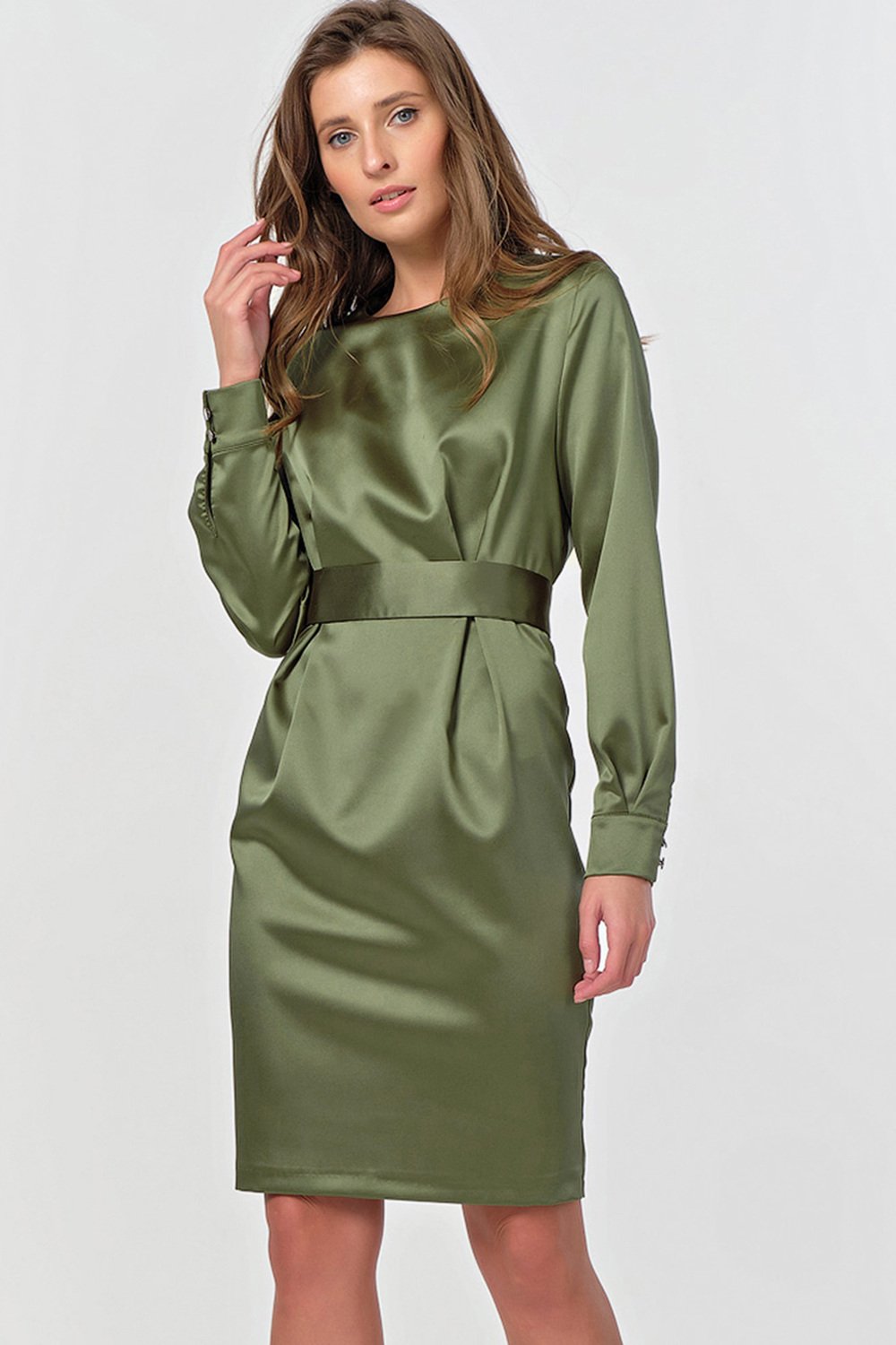 • Особенности: Платье из матового атласа. Детали: горловина округлой формы втачной рукав на манжете с защипами. Отрезное по талии с защипами. Пояс в комплекте.