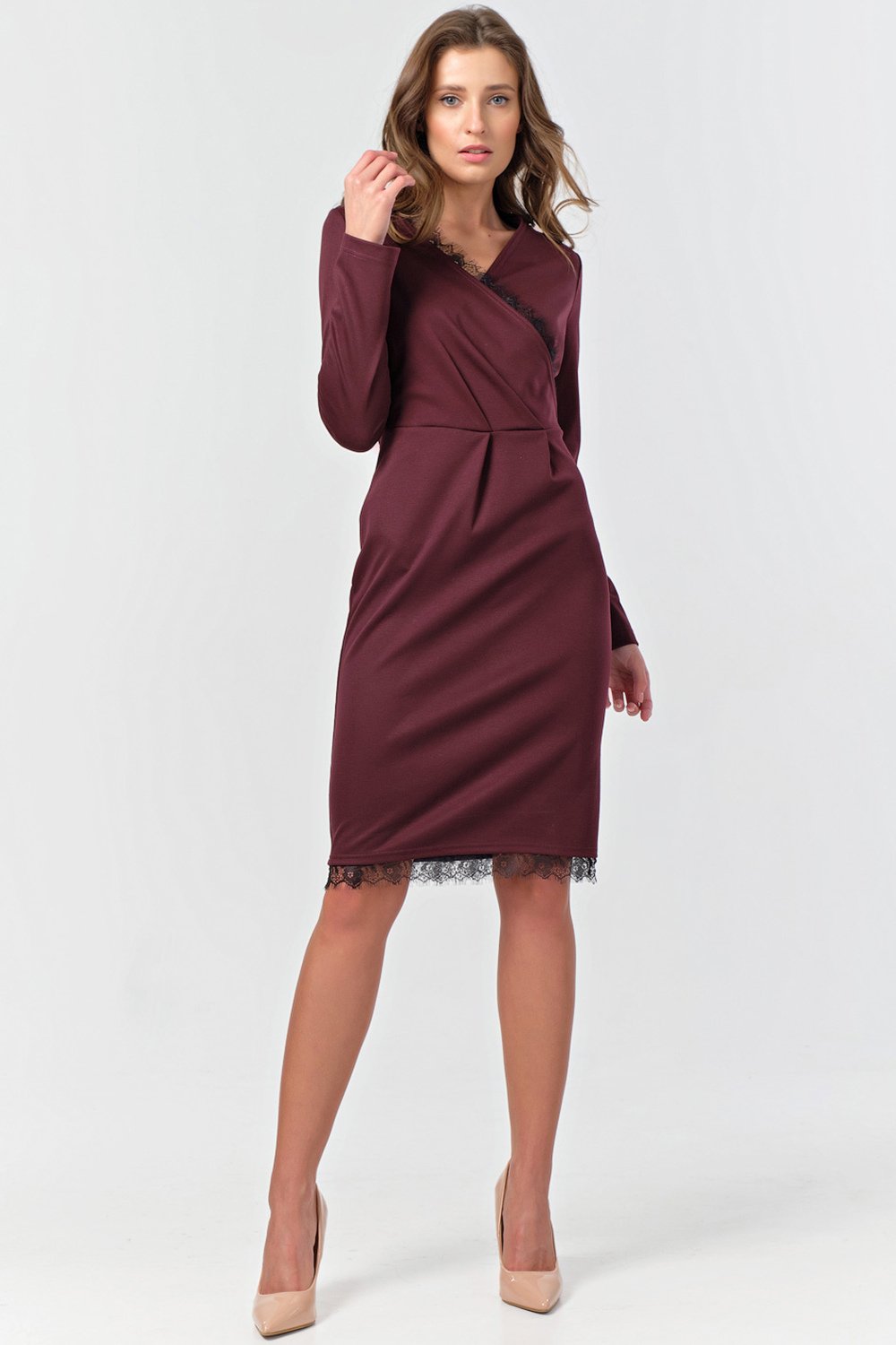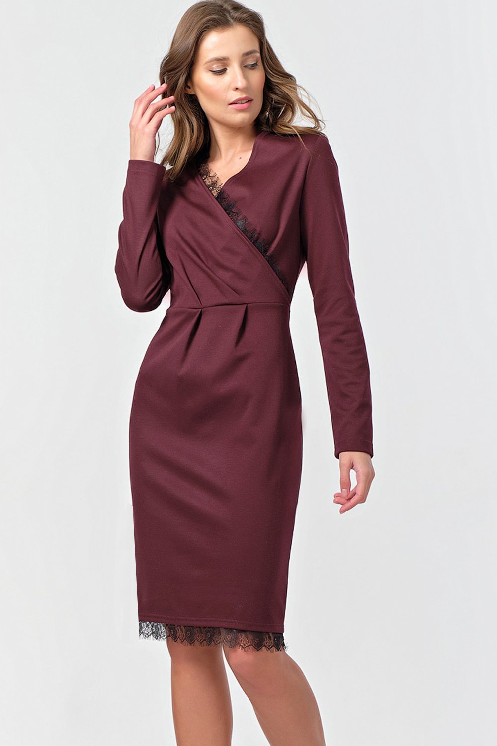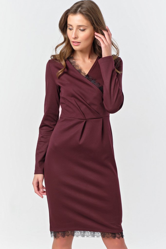 • Особенности: Платье прилегающего силуэта из трикотажа. Детали: горловина и низ изделия дополнены кружевом на талии есть два защипа.