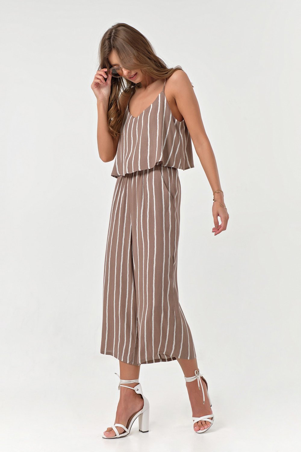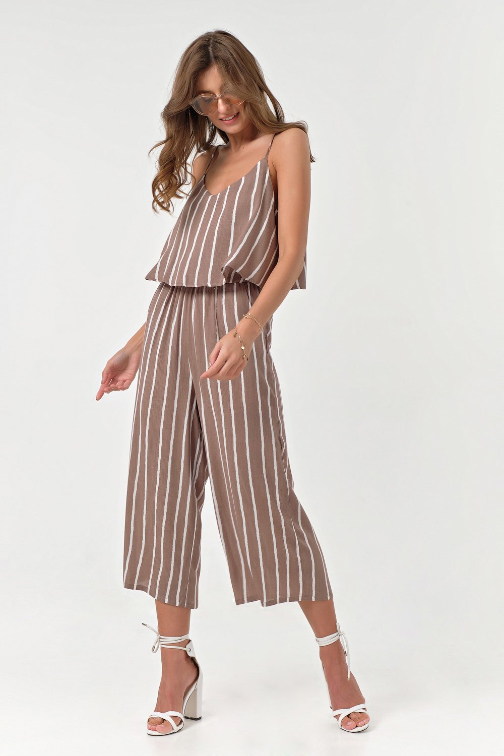 • Застежка: нет Особенности: Комбинезон из легкой ткани с принтом. Детали: свободный силуэт тонкие бретельки верх с отлетной кокеткой по линии талии выполнена сборка на резинку брючные карманы.