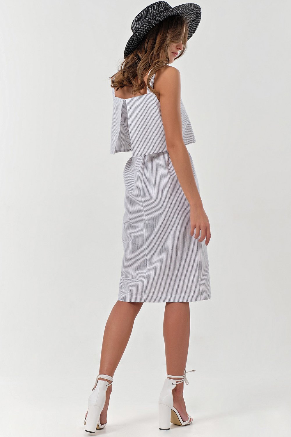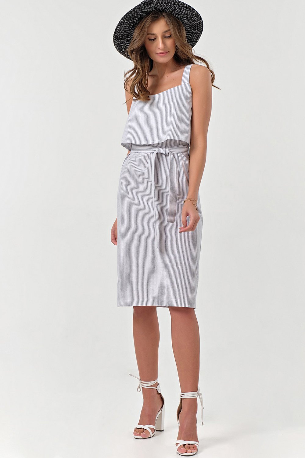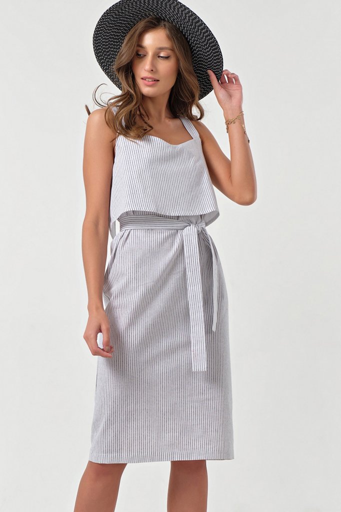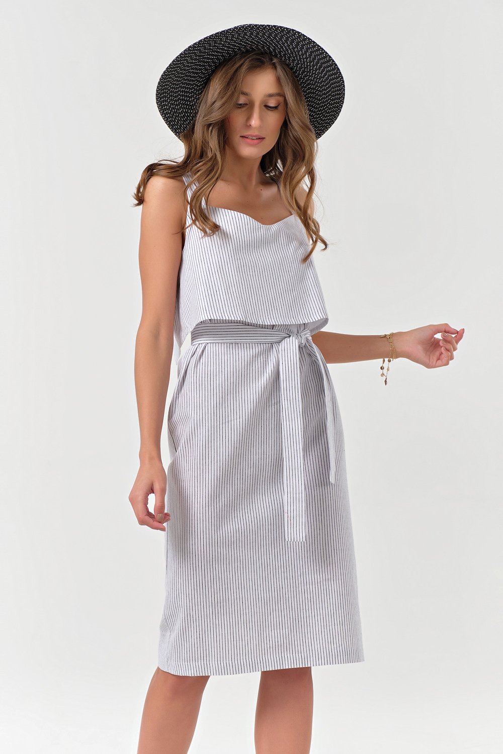 • Особенности: Платье прямого силуэта из хлопковой ткани. Детали: широкие бретели отлетная кокетка пояс из основной ткани в комплекте. Застежка на молнию в среднем шве спинки.