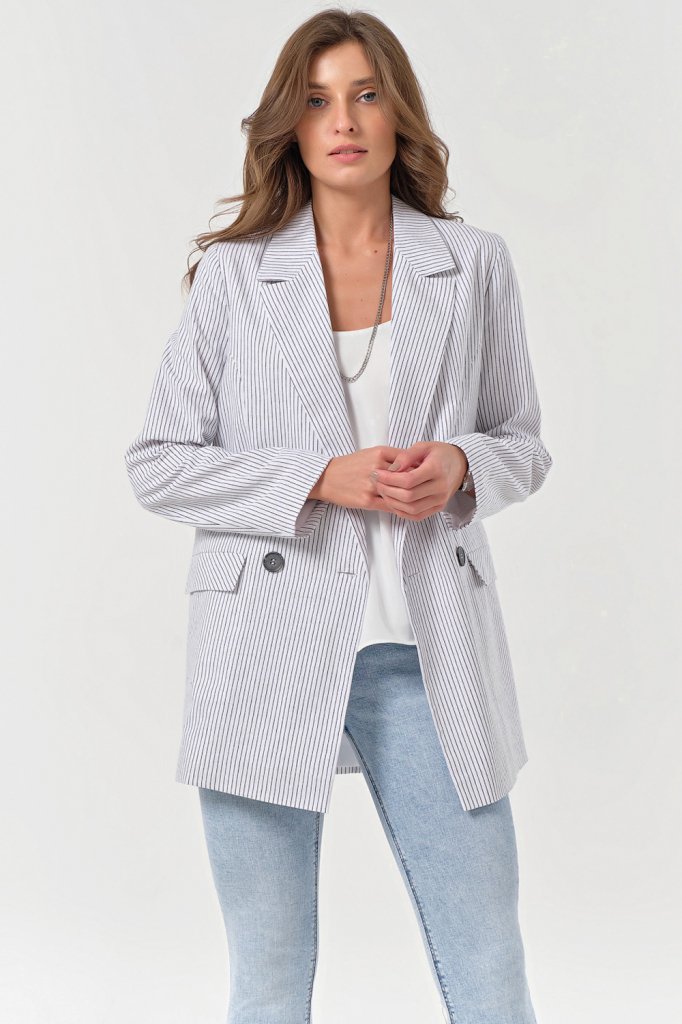 • Особенности: Жакет прямого силуэта из хлопковой ткани на подкладке. Детали: отложной воротник пиджачного типа прорезные карманы с клапанами двубортная застежка на пуговицы.