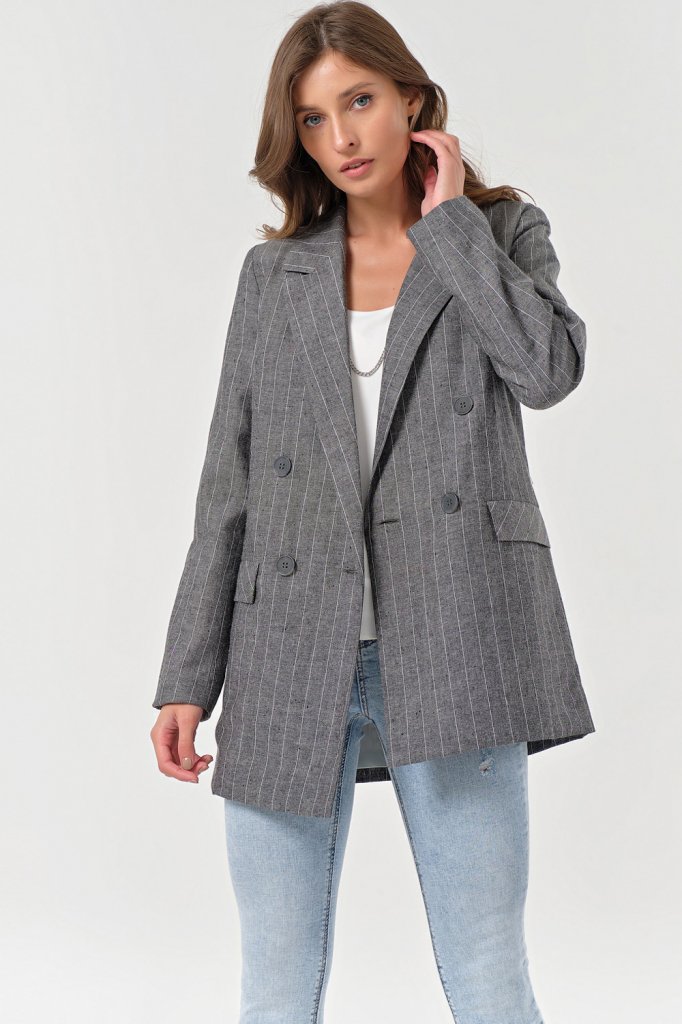 • Особенности: Жакет прямого силуэта из хлопковой ткани на подкладке. Детали: отложной воротник пиджачного типа прорезные карманы с клапанами двубортная застежка на пуговицы.