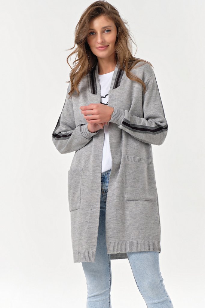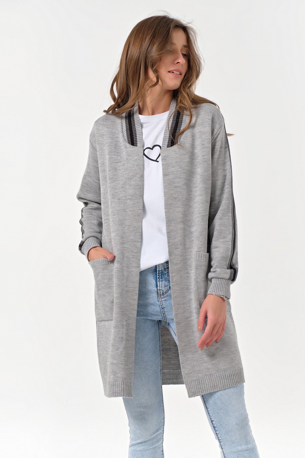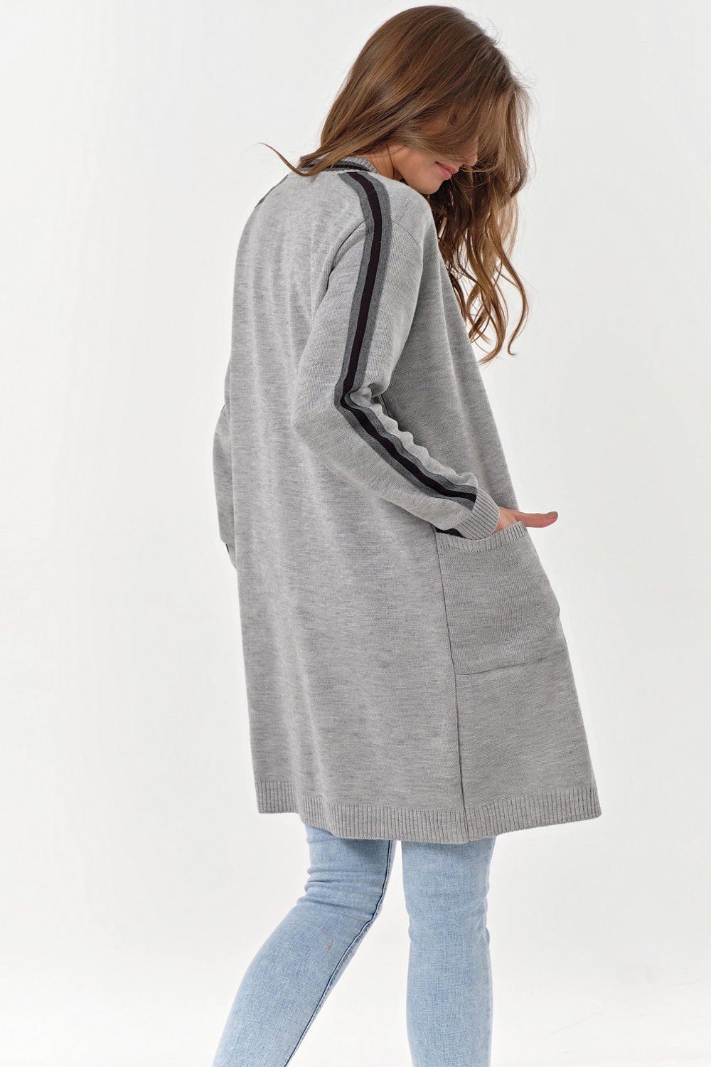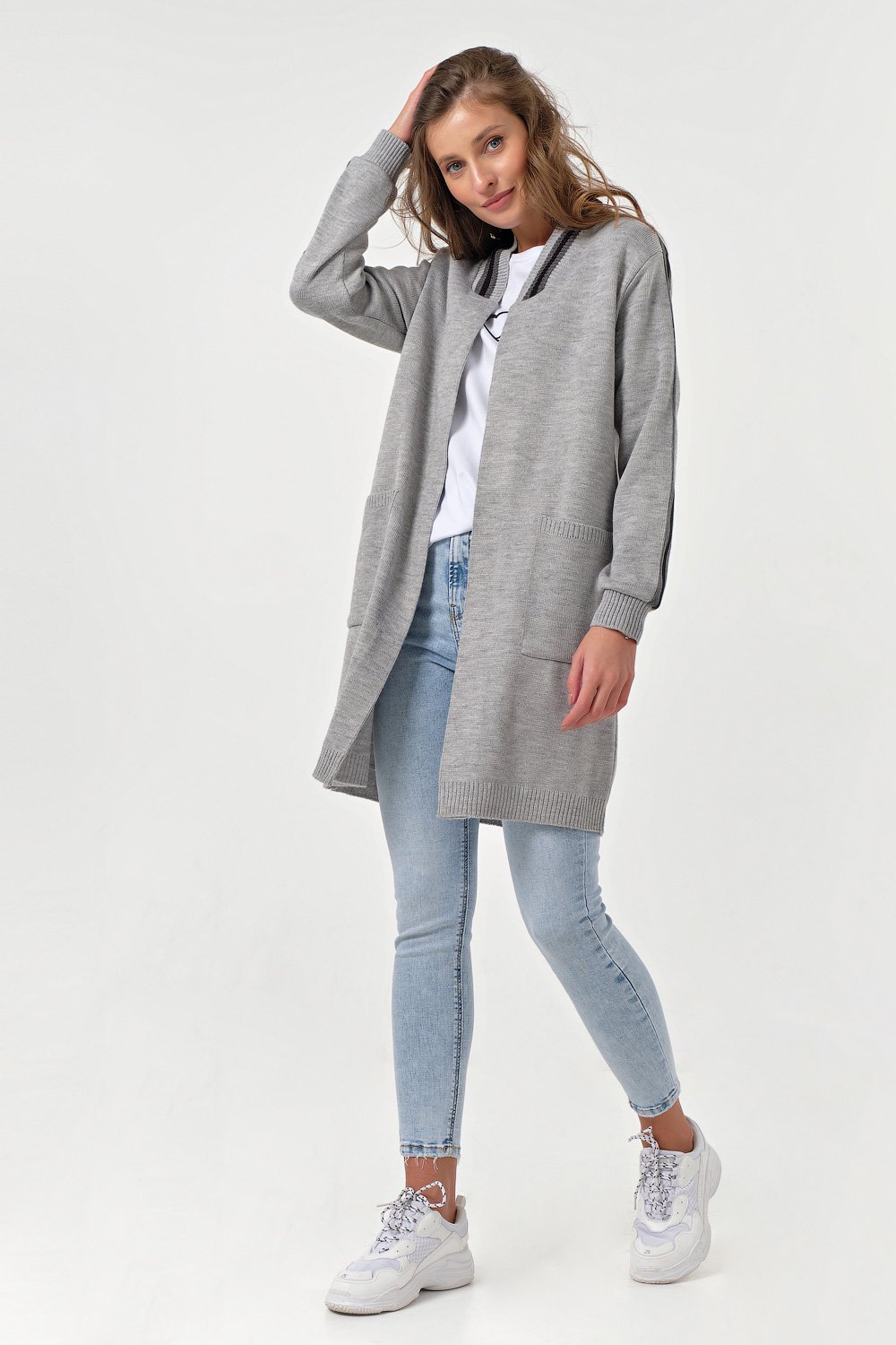 • Длина изделия: 89 см. Особенности: Мягкий плотный вязаный кардиган с контрастной отделкой по рукавам горловине. Карманы рукава низ изделия оформлены резинкой в рубчик.