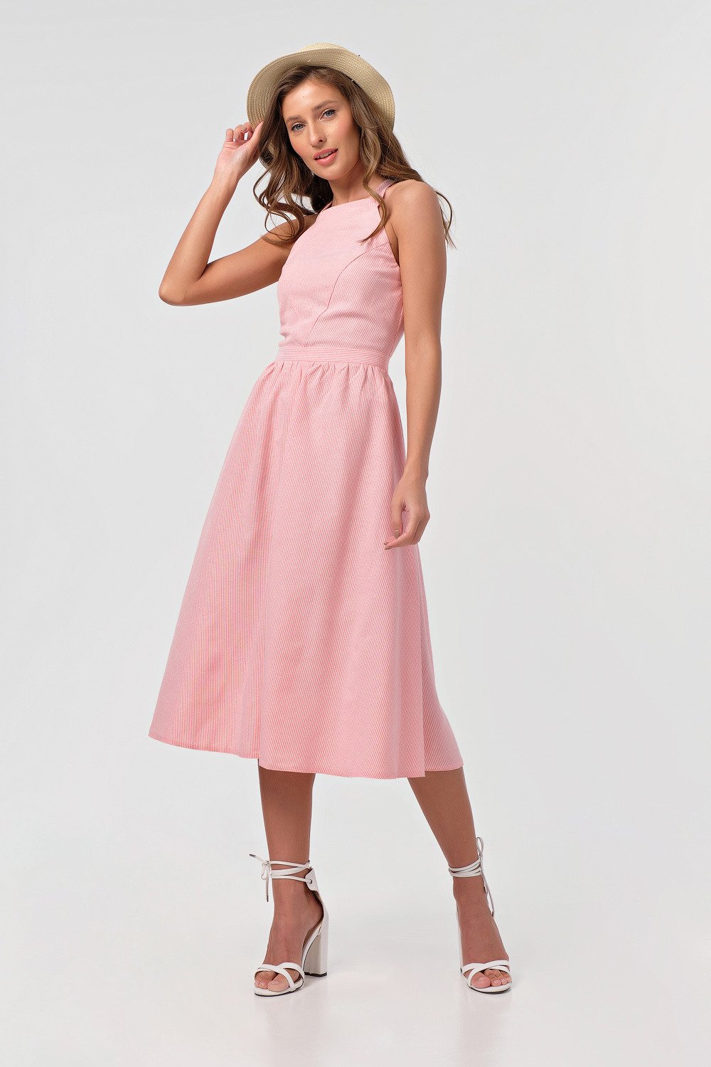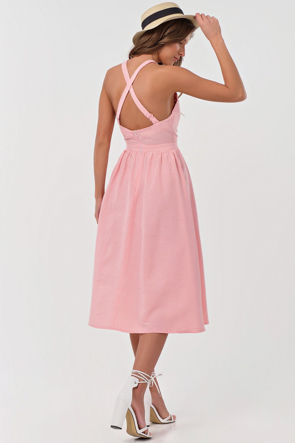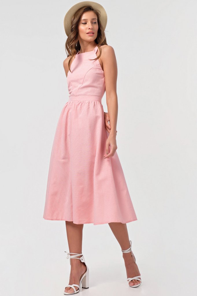 • Особенности: Сарафан прилегающего силуэта из хлопковой ткани. Детали: открытая спина небольшой участок бретели собран на резину бретели перекрещиваются на спине в переднем шве юбки выполнен разрез. Застежка на молнию в среднем шве спинки.