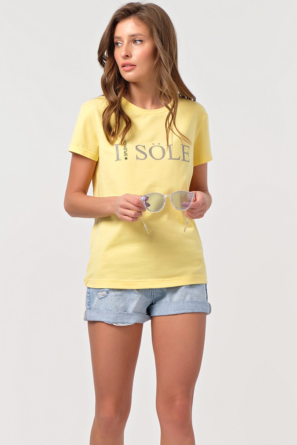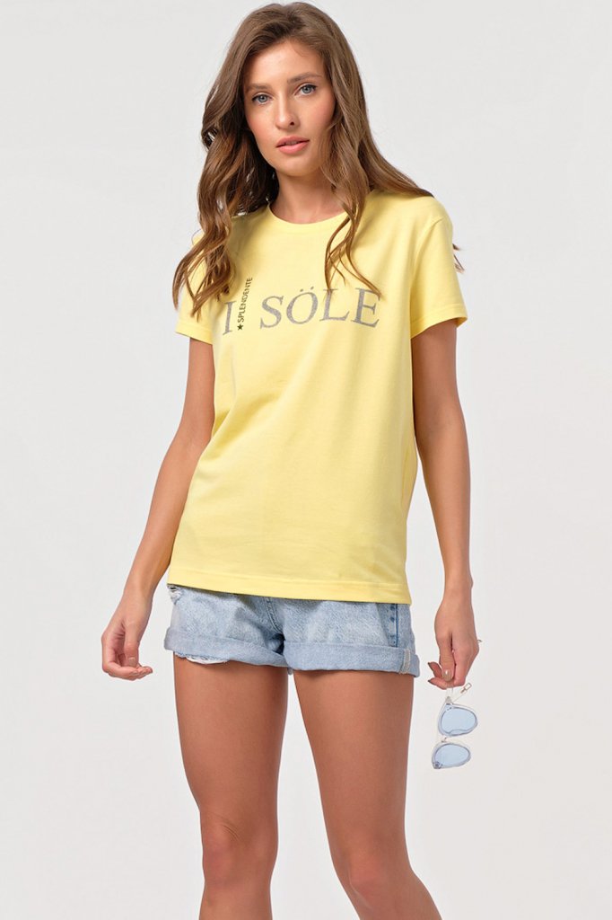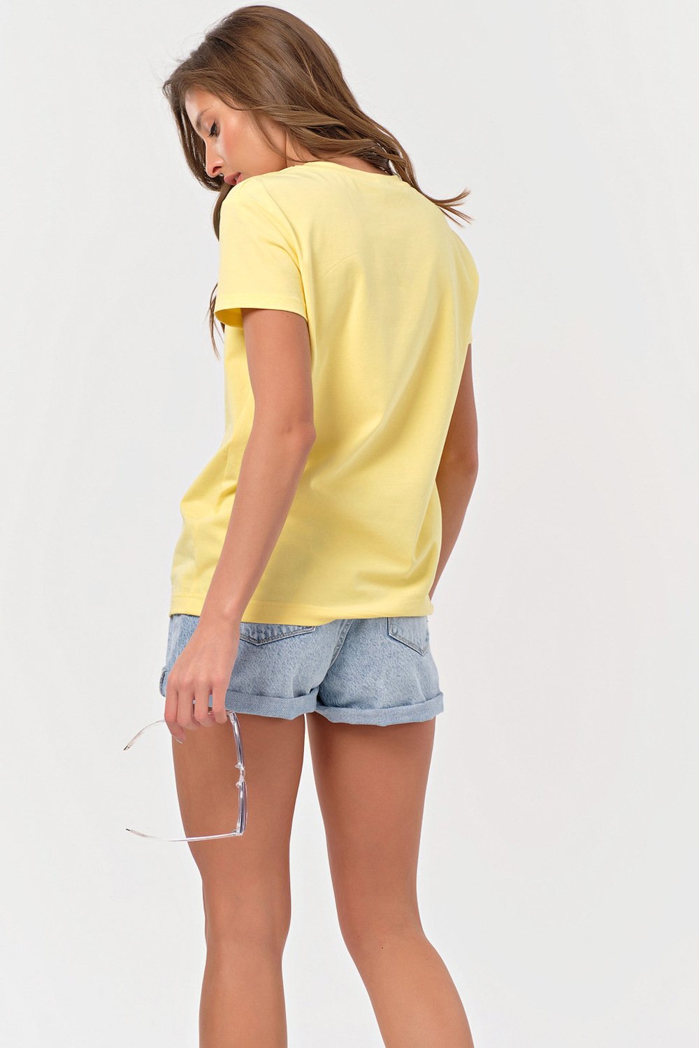 • Особенности: Футболка прямого силуэта имеет свободную посадку без прилегания! Выполнена из хлопкового трикотажа. Детали: горловина обработана бейкой по переду нанесен принт.